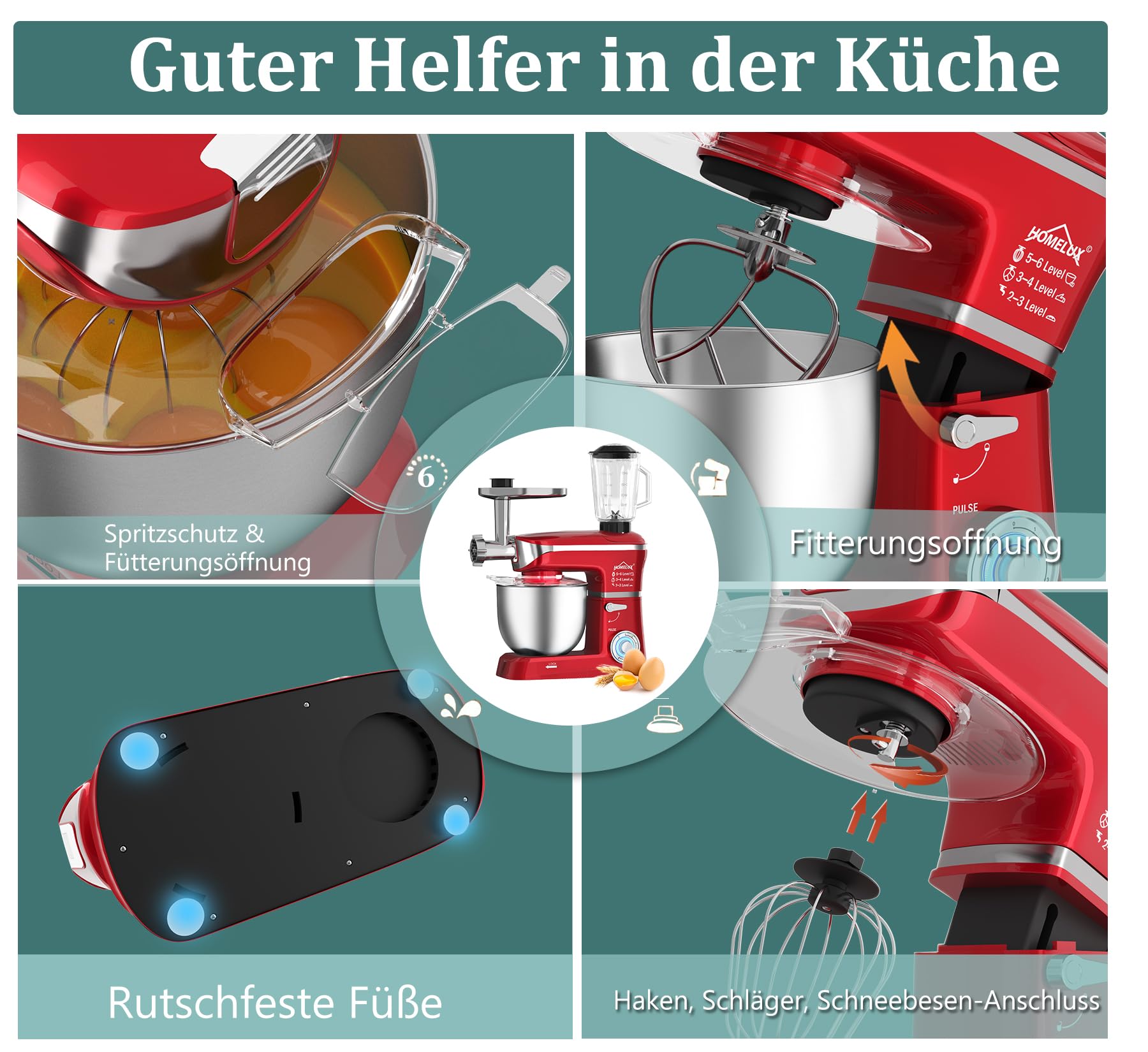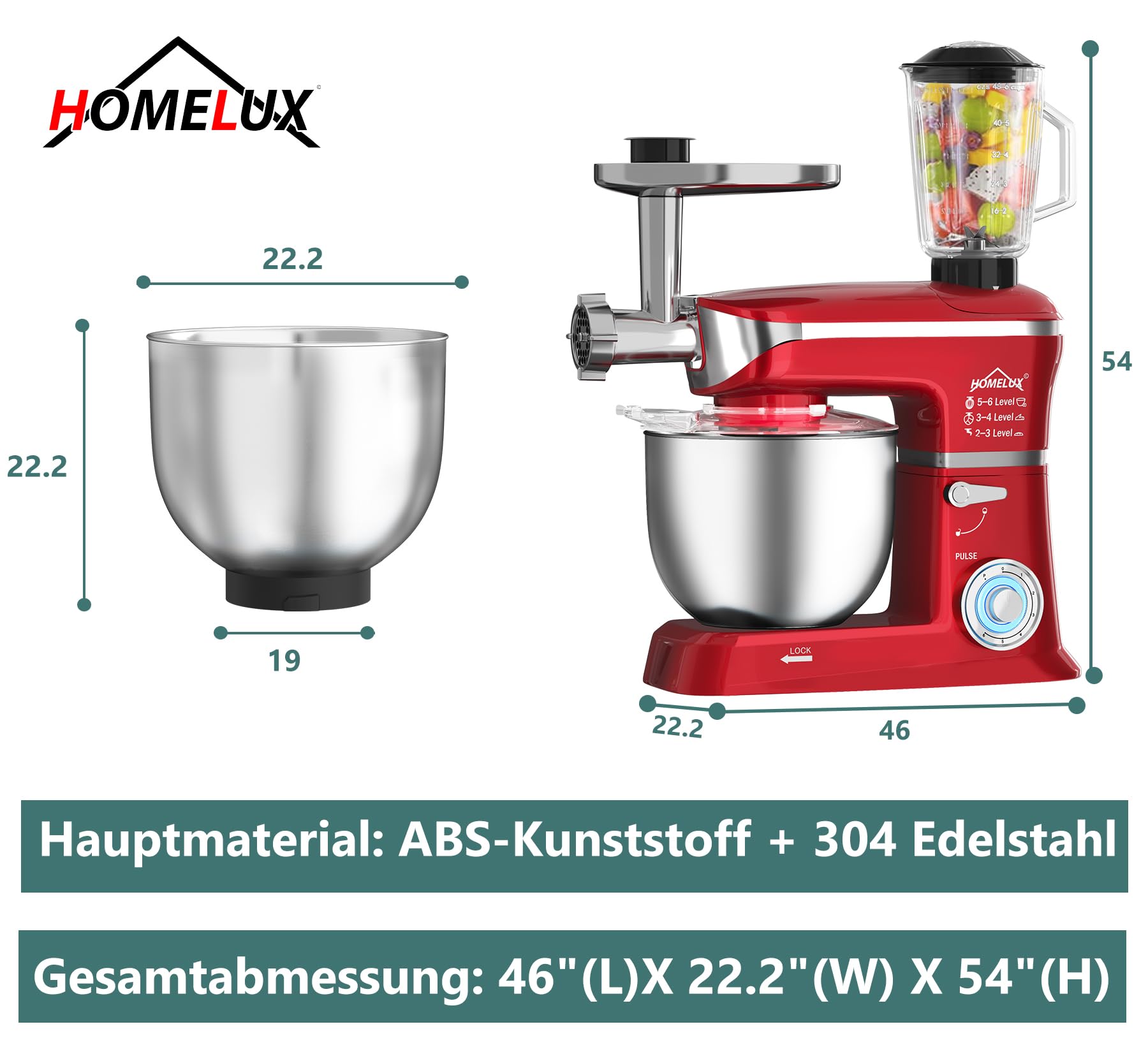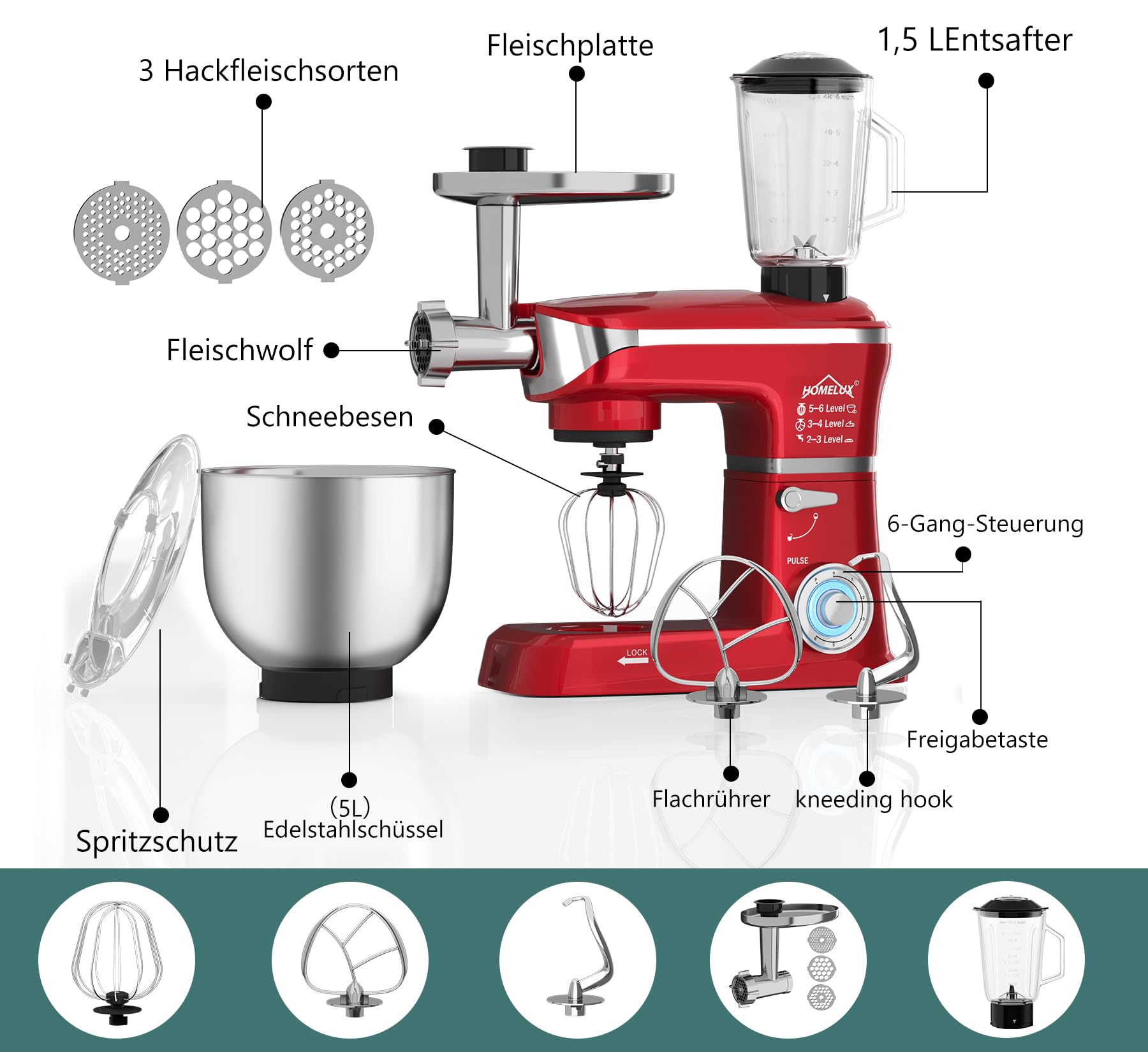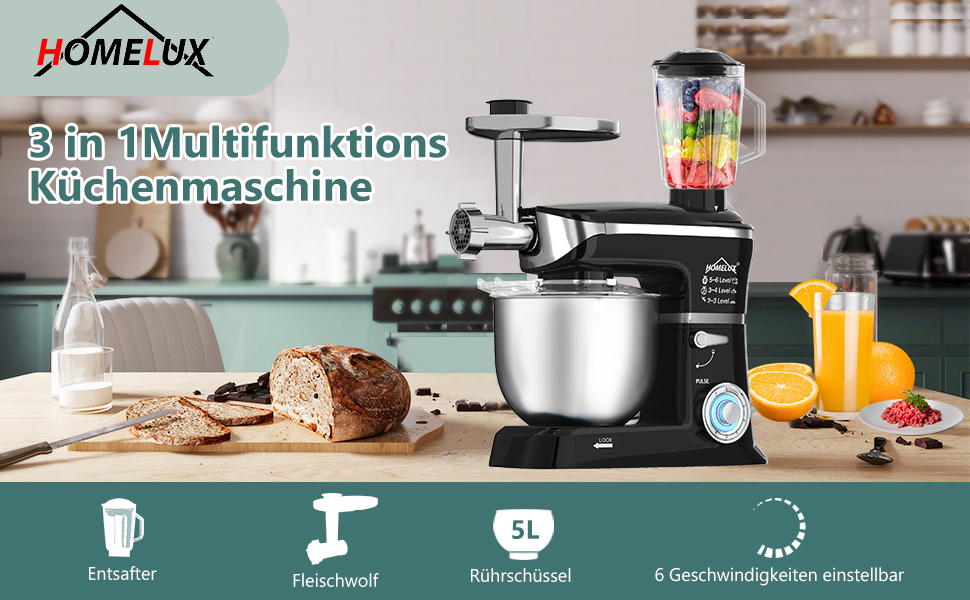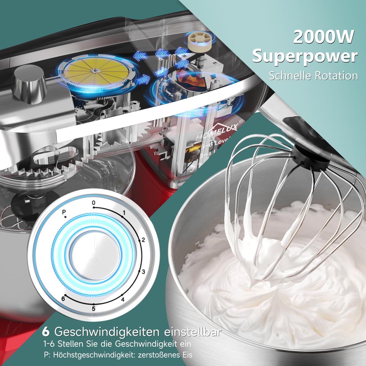 Unsere HOMELUX Küchenmaschine mit 2000 Watt Motor bietet eine beeindruckende Leistung für jede Aufgabe. Mit 6 Geschwindigkeitsstufen und vielseitigem Zubehör ist sie ein Alleskönner in Ihrer Küche.