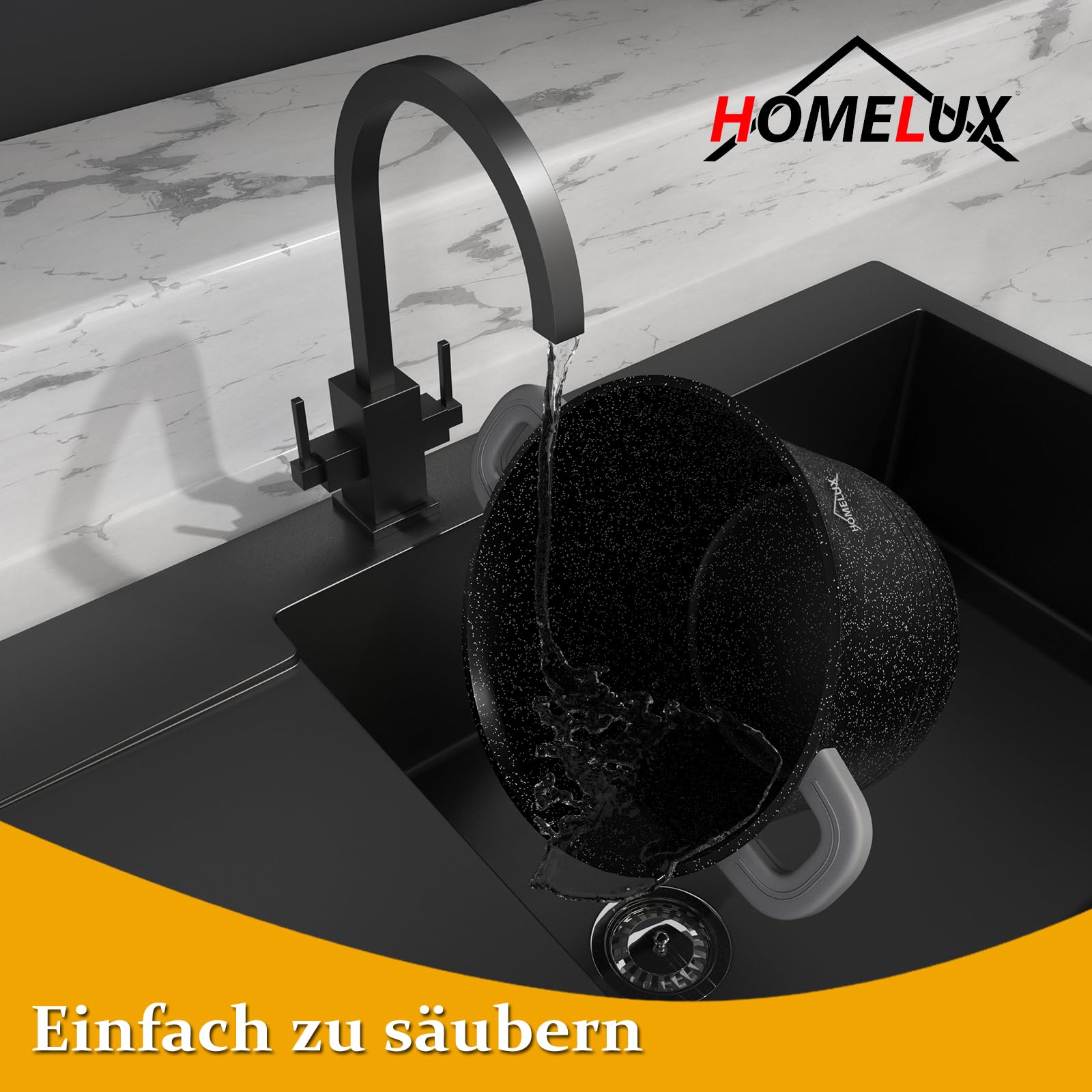 Die hochwertige Homelux Antihaftbeschichtung ist sicher und gesund, 100% frei von APEO und PFOA, was Ihnen bei der Lösung des Reinigungsproblems helfen kann. Sie brauchen nur einen weichen Schwamm oder Lappen, um Öl leicht zu entfernen. Oder spülen Sie es mit Wasser ab, um es zu reinigen.