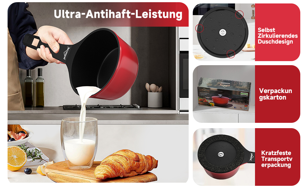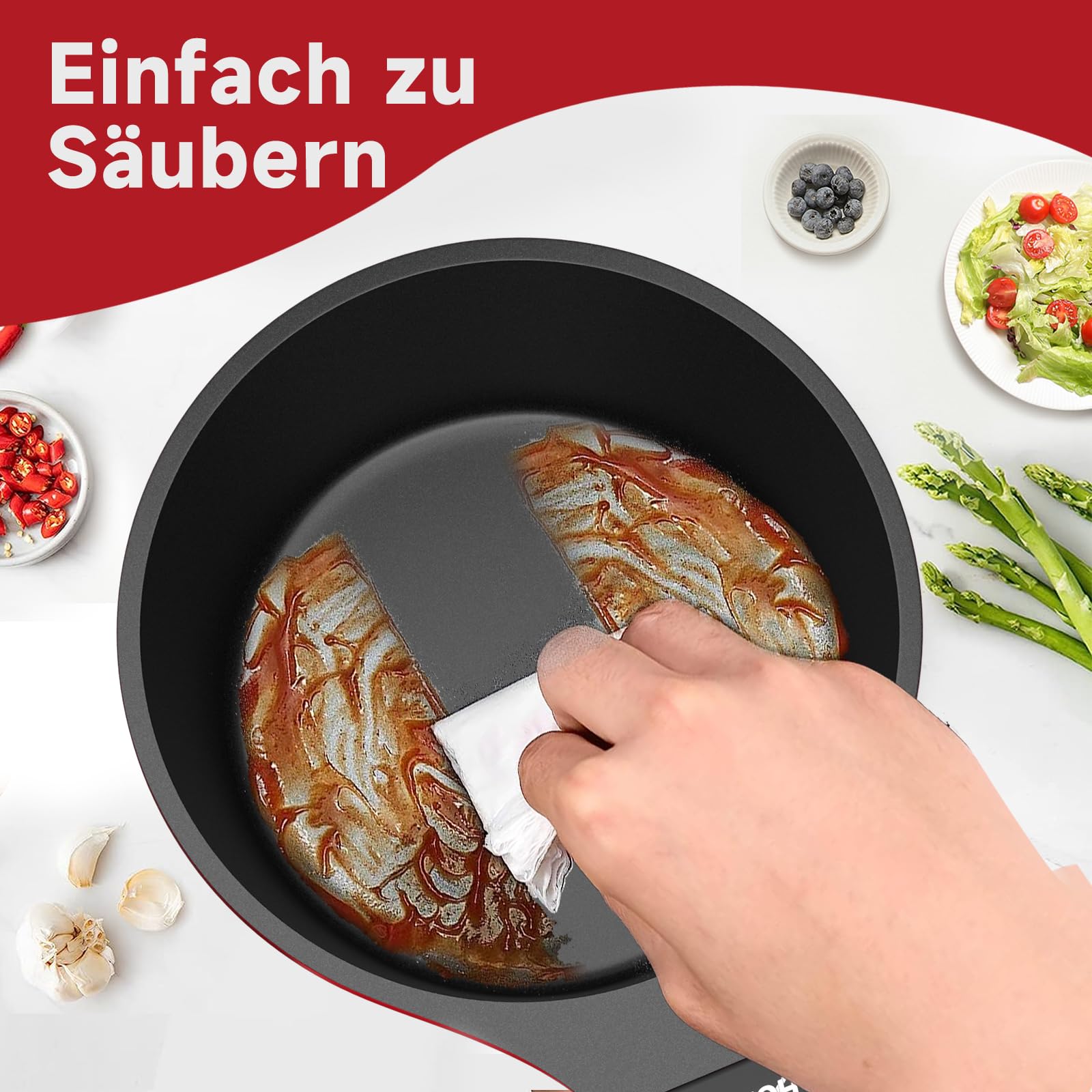 während die PFOA/APEO-freie Beschichtung Ihr Essen sicherer macht. Kochen und Reinigen war nie einfacher dank der antihaftbeschichteten Oberfläche und dem hitzebeständigen Griff.