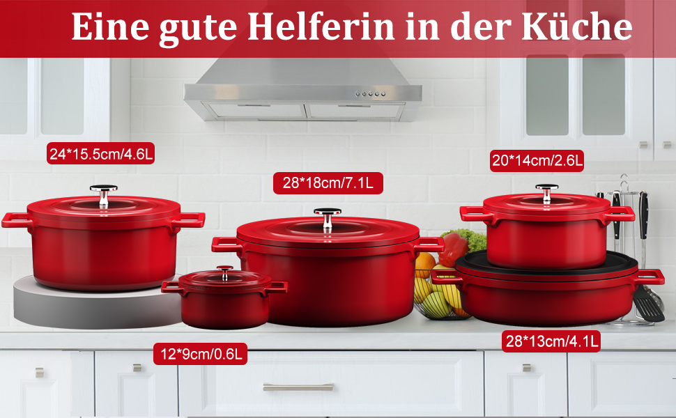Die fortschrittliche Druckgusstechnologie macht den verdickten Aluminiumtopf sehr robust. Die Alugusstopf sorgt für eine schnelle und gleichmäßige Wärmeverteilung beim Kochen und spart so Zeit und Mühe.