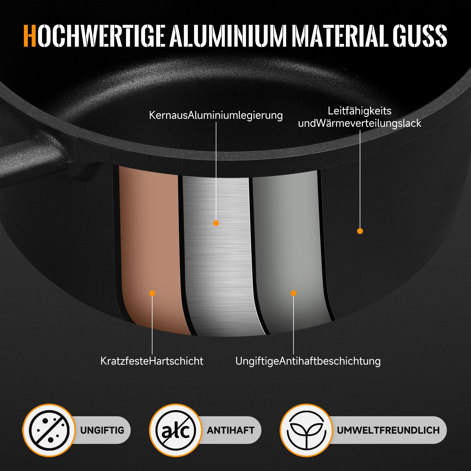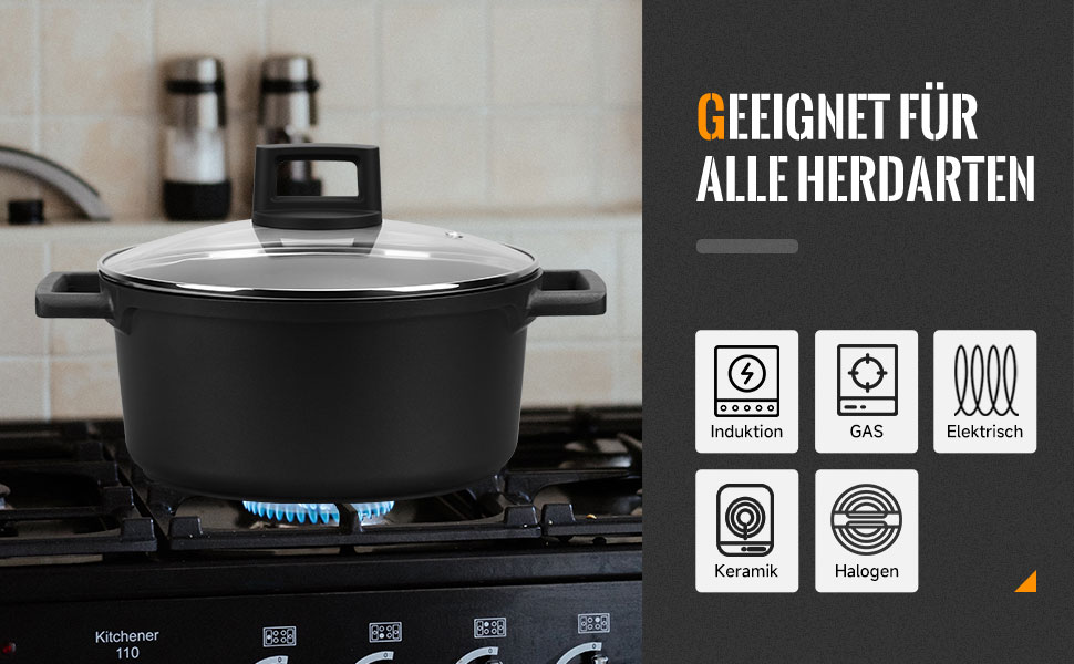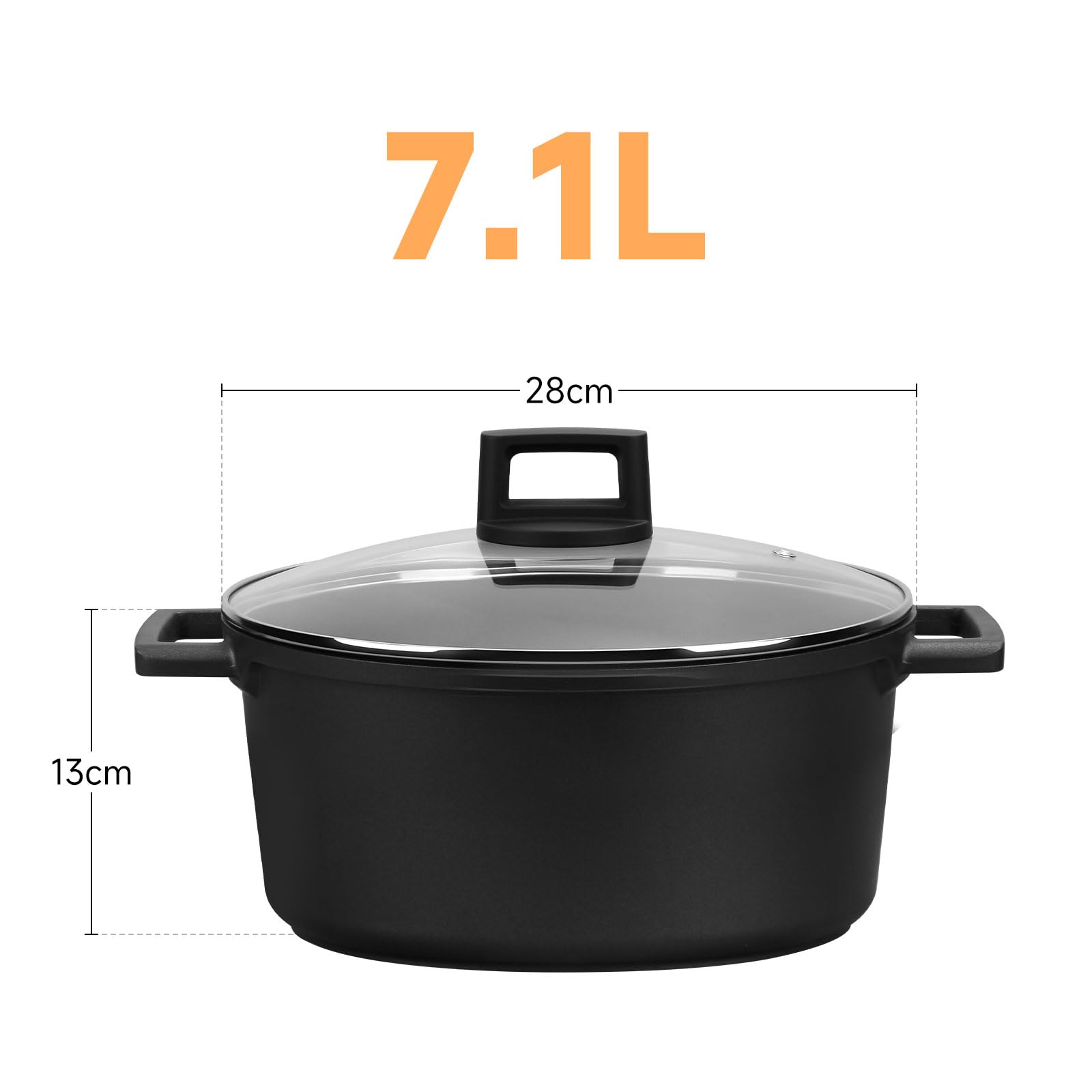 Topf Homelux 28cm Kochtopf Induktion Schmortopf mit Glasdeckel, 7,1L Kochtöpfe mit Antihaftbeschichtung, Geeignet für alle Kochfelder(H-KCM28)