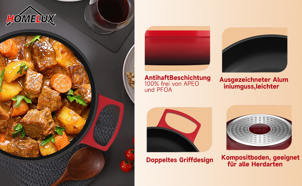 Sorgt für eine schnelle, gleichmäßige Wärmeverteilung, der 5 mm dicke Boden sorgt für eine stabile Wärmeverteilung während des Kochens, heizt schnell auf und spart Zeit und Energie.