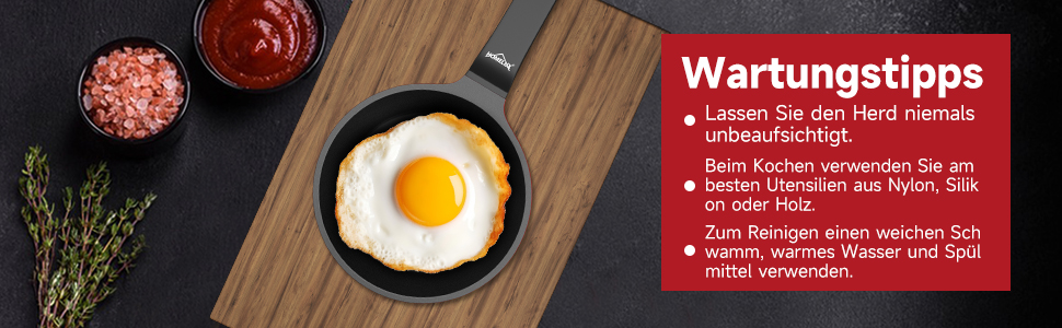 die Pfanne durch einfaches Auswischen mit einem nassen Tuch zu reinigen.