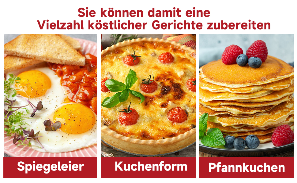 um 1 Ei, Würstchen, Meeresfrüchte, Geflügel, Burger oder Gemüse, Toasten von Pinienkernen oder sogar zum Toasten einiger Gewürze zu machen. Ideal für ein schnelles Frühstück oder Mittagessen!