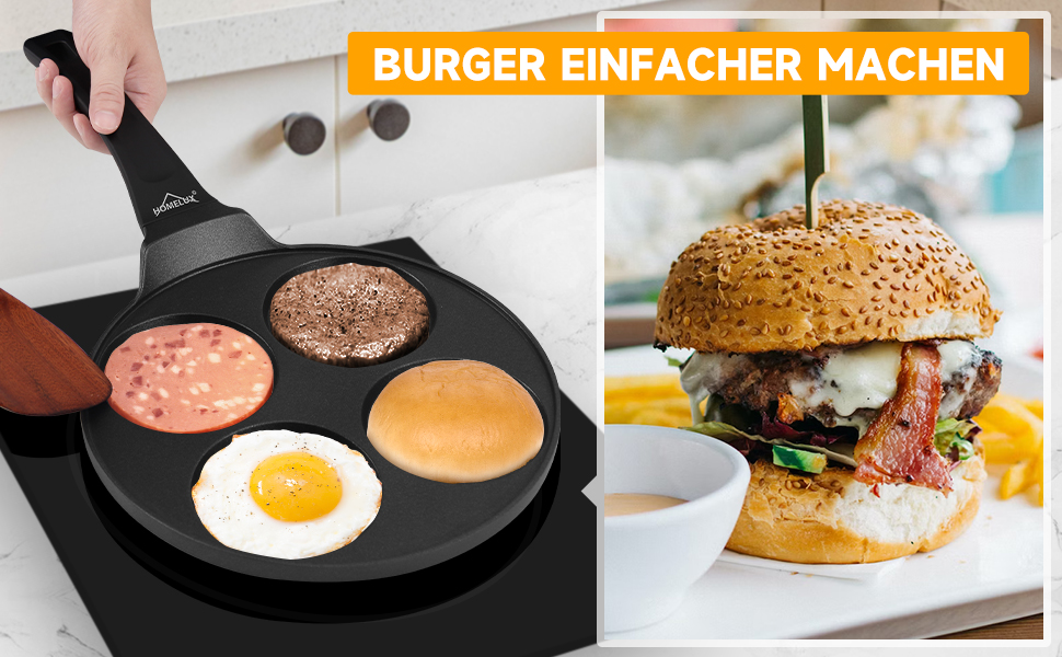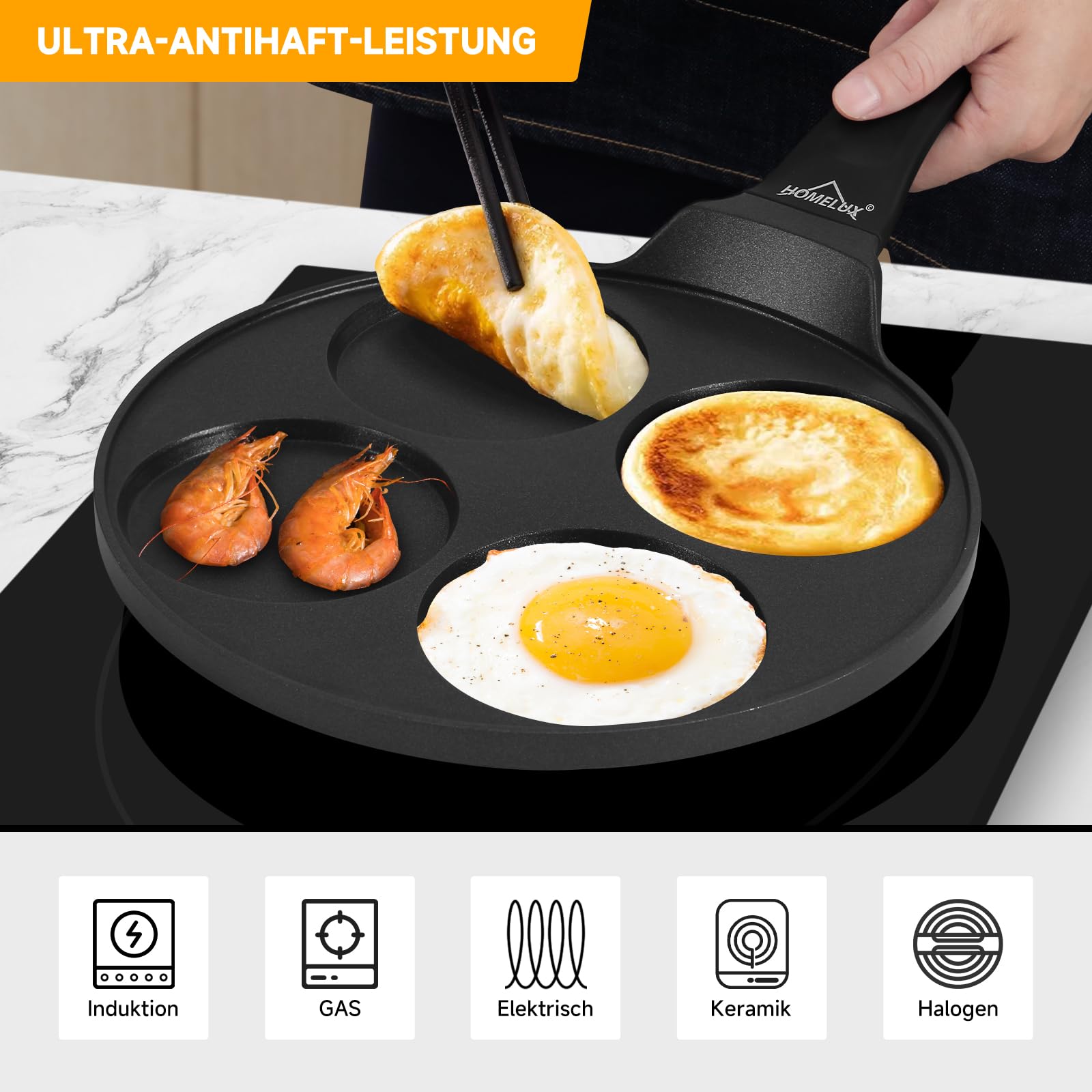 Diese Pancake Pfanne Induktion ist leicht zu handhaben. Gib vor dem Gebrauch etwas Öl in die Spiegeleiform, um die Freisetzung von Lebensmitteln zu erleichtern. Sie kann gleichzeitig vier Spiegeleier zubereiten und eignet sich für ein Familienfrühstück. In nur fünf Minuten kann deine Familie köstliche kulinarische Kreationen genießen.