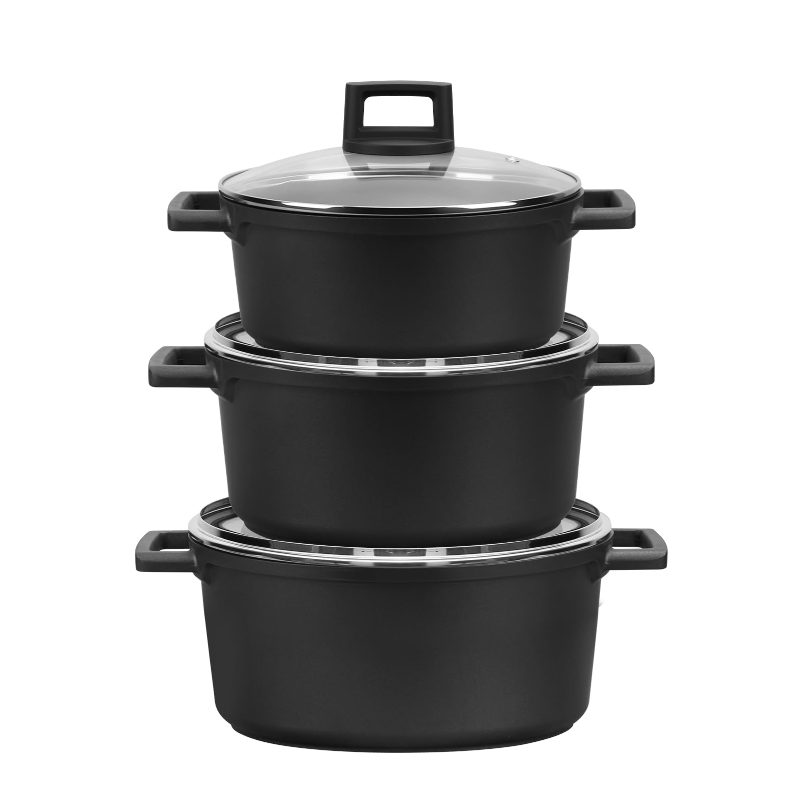 Das perfekte Topfset in verschiedenen Größen, perfekt geeignet für den täglichen Bedarf. Enthält 3 Kochtöpfe: 20cm/2.6L, 24cm/4.6L, 28cm/7.1L.Ein Topf für alle Arten von Lebensmitteln, Eintöpfe, Braten von Fleisch, Kochen von Suppen, Frittieren, geeignet für alle Arten von Kochstilen.Homelu Universal-Topf ist definitiv der perfekte Begleiter für Ihre Küche.