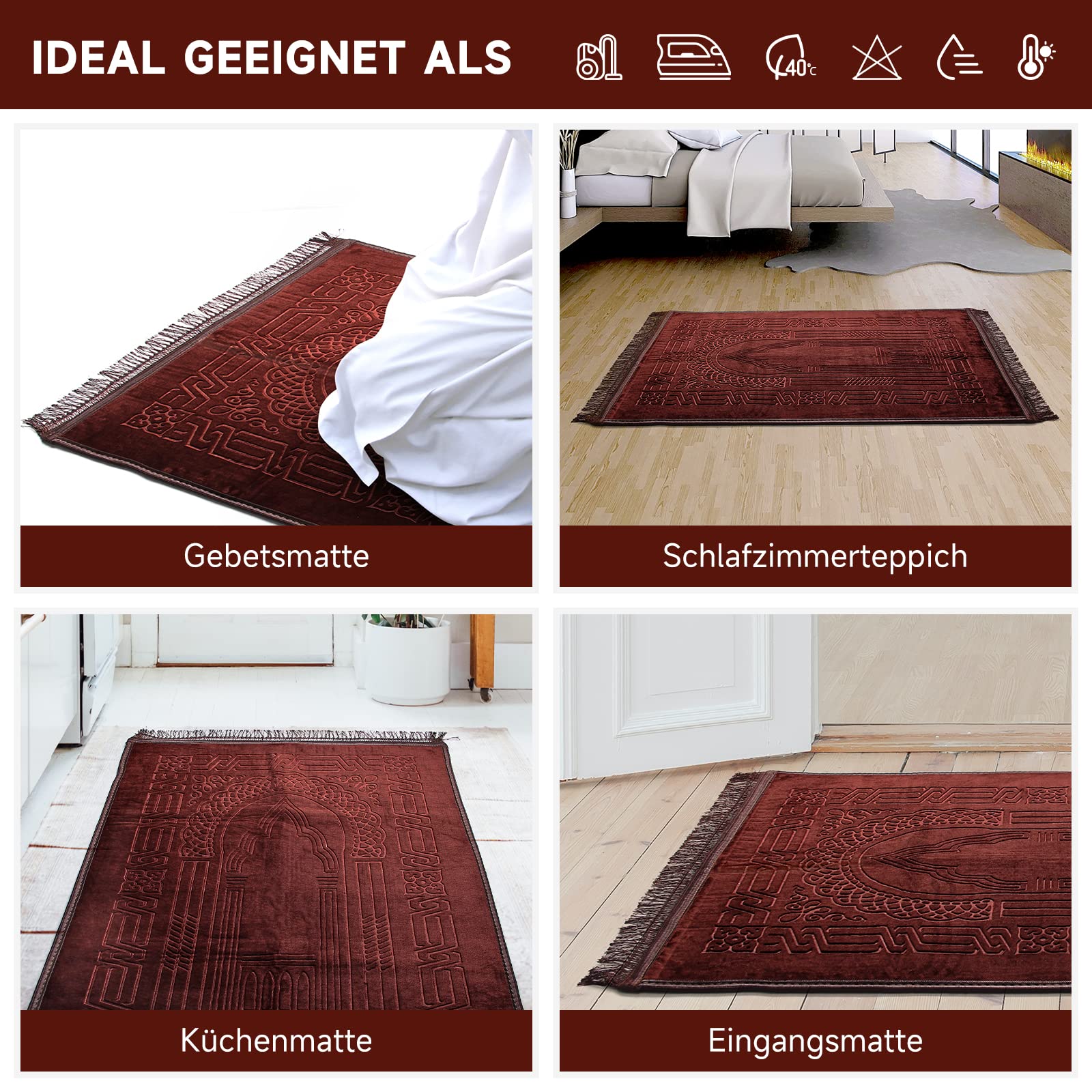 Aus hochwertigem Stoff, superweicher und bequemer Plüsch samt. 100 % Polypropylen (eines der langlebigsten Materialien) sorgt für jahrelange Haltbarkeit. HOMELUX Gebetsteppich ist dicker und weicher als herkömmliche Gebetsteppiche. Beten Sie auf Holzböden mit weniger Belastung für Ihre Gelenke.