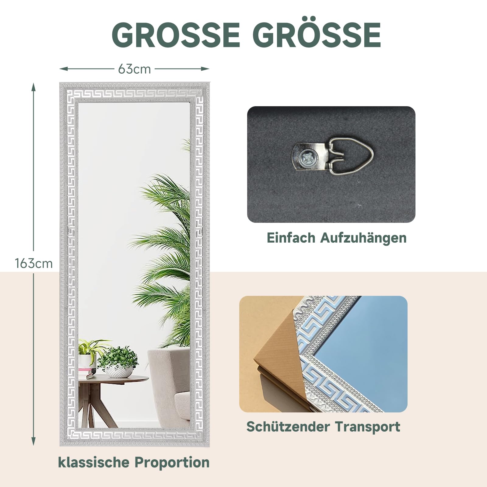 63x163cm super großer Spiegel, bei einer so großen Größe müssen Sie nicht zu weit stehen, Sie können sich auf einen Blick sehen.Wenn Sie vor dem Spiegel stehen, können Sie das echte HD genießen Spiegel. Die Kollektionen sind in zwei verschiedenen Größen und in drei verschiedenen Farben, cm und cm, Silber, Gold und Schwarz erhältlich.