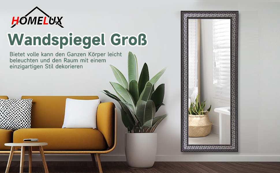 Der wandspiegel ganzkörperspiegel besteht aus hochwertigem Glas, das relativ langlebig ist und eine hervorragende Lichtreflexion aufweist, was zu klaren und natürlichen Bildern ohne Verzerrung führt. Gleichzeitig reflektiert es das Licht und schafft Tiefe, was einem kleinen Raum ein Gefühl von Weite verleiht. Dieser spiegel wand deko ist eine großartige Möglichkeit, jeden Raum sofort zu verwandeln und Ihren Raum schön, gemütlich und entspannend zu machen.