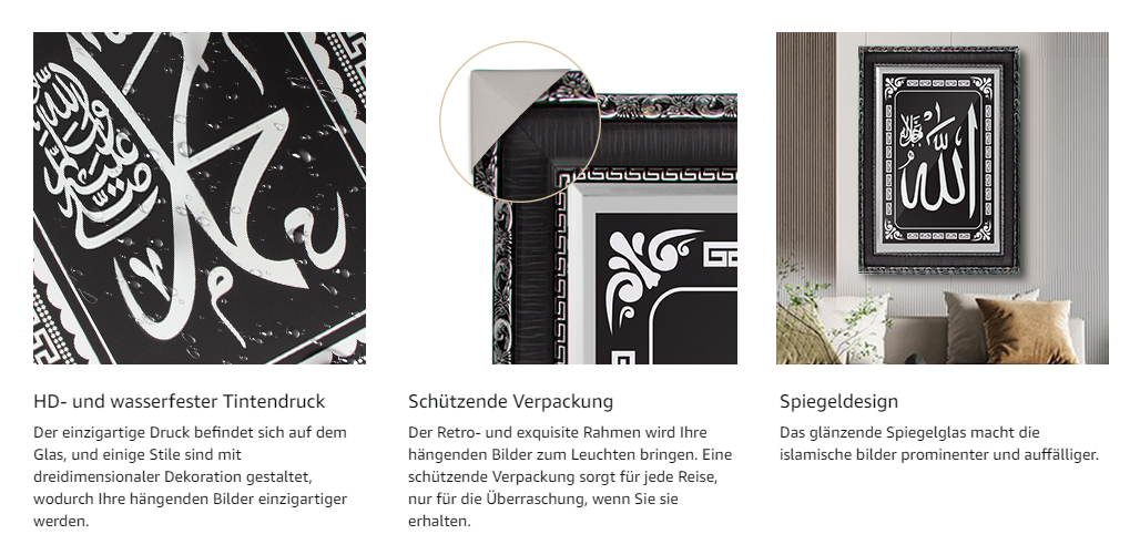 HOMELUX Islamische Bilder mit Bilderrahmen, Islamische Ramadan Dekoration, Islam Deko, Islamische Geschenke, Arabische Kalligraphie Wandbilder, Koran Allah Wandbild, Muslimische Wanddeko,50*70CM, H-PA0021