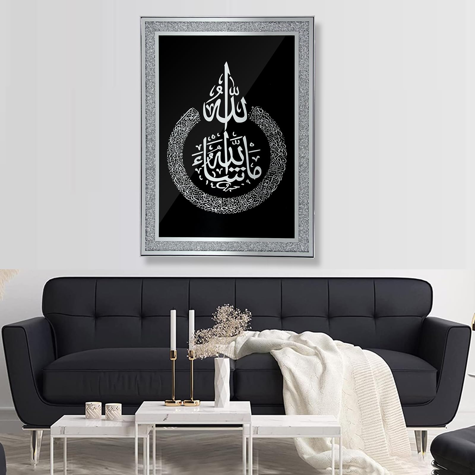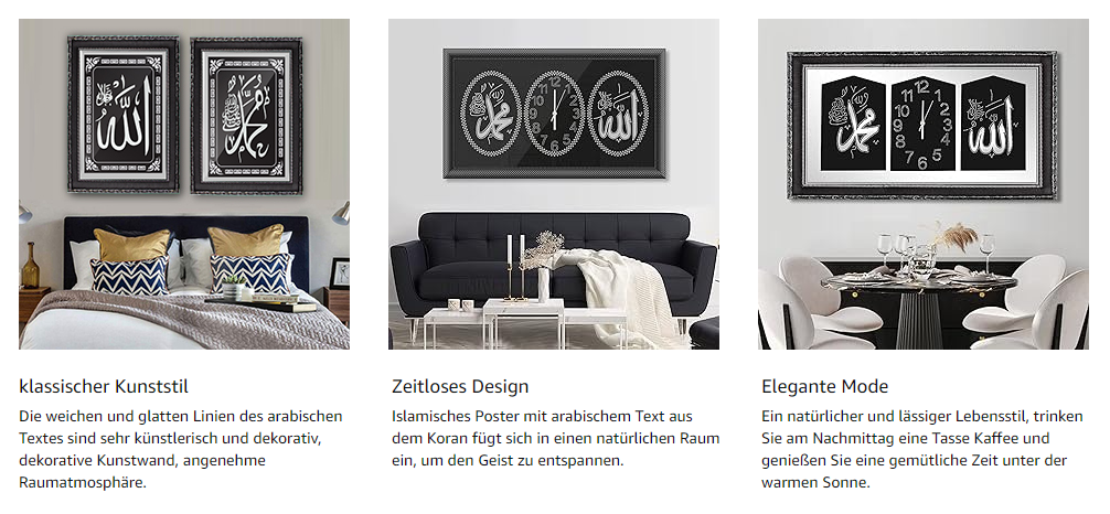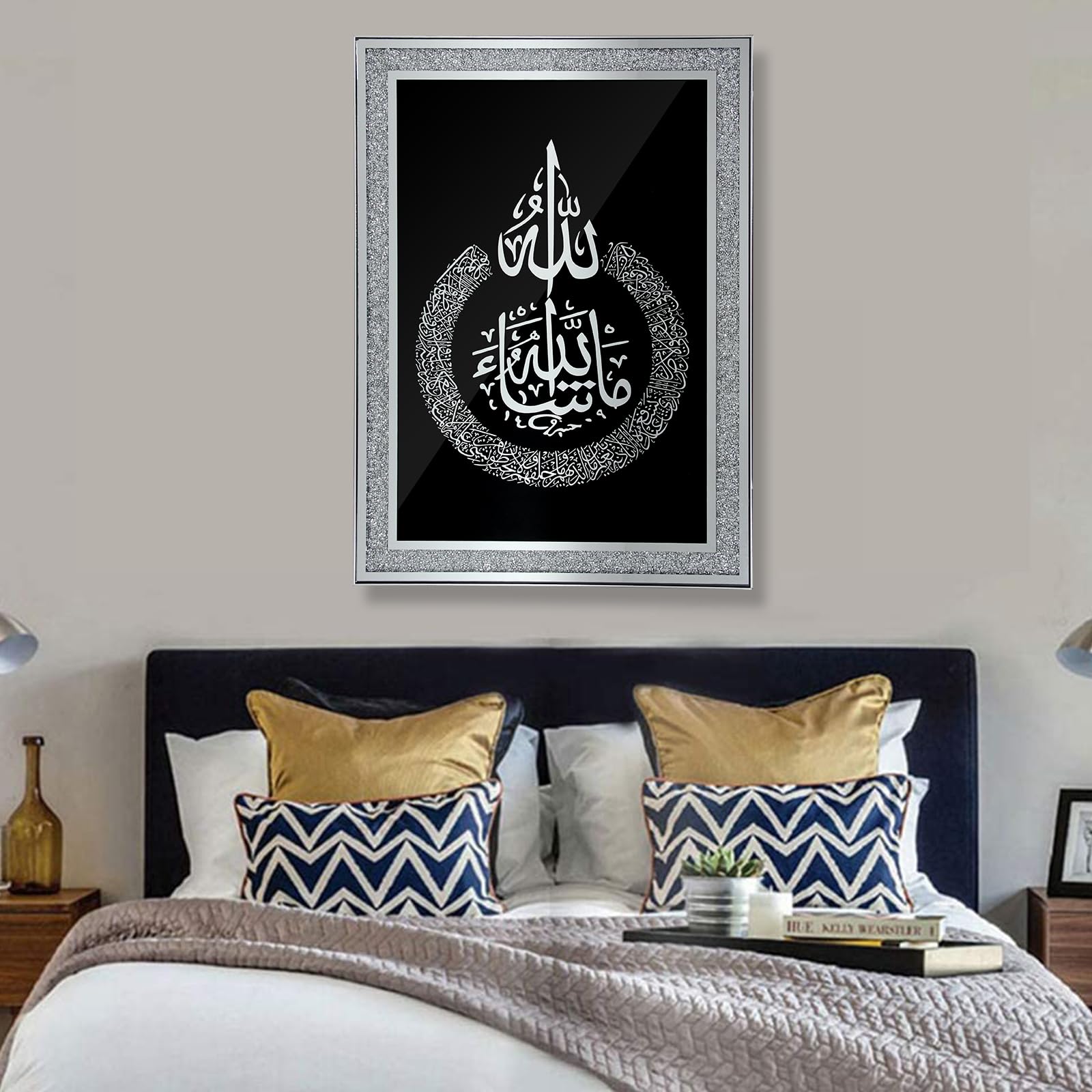 HOMELUX Islamische Bilder mit Bilderrahmen, Islamische Ramadan Dekoration, Islam Deko, Islamische Geschenke, Arabische Kalligraphie Wandbilder, Koran Allah Wandbild, Muslimische Wanddeko,50*70CM, H-PA0023