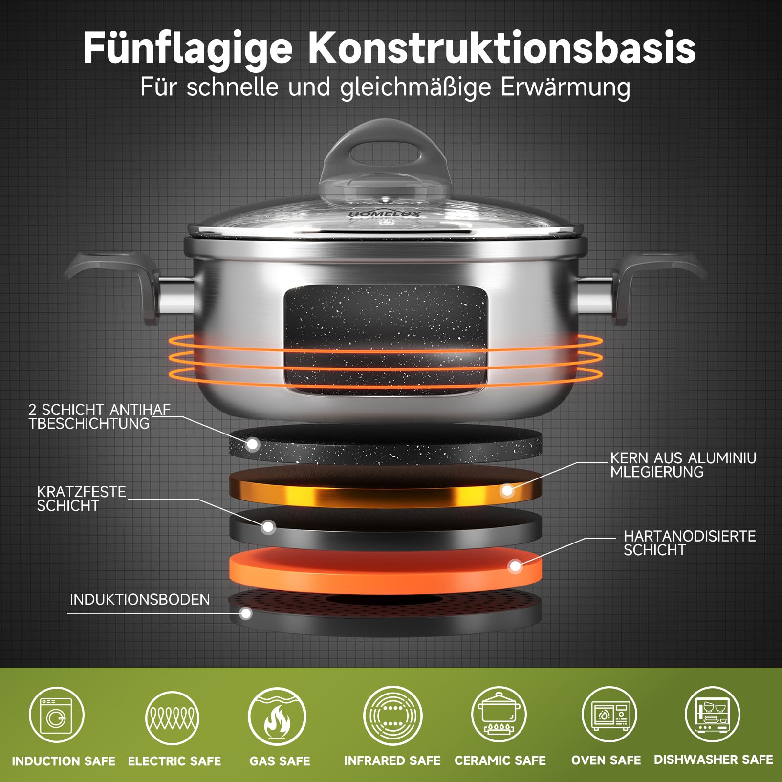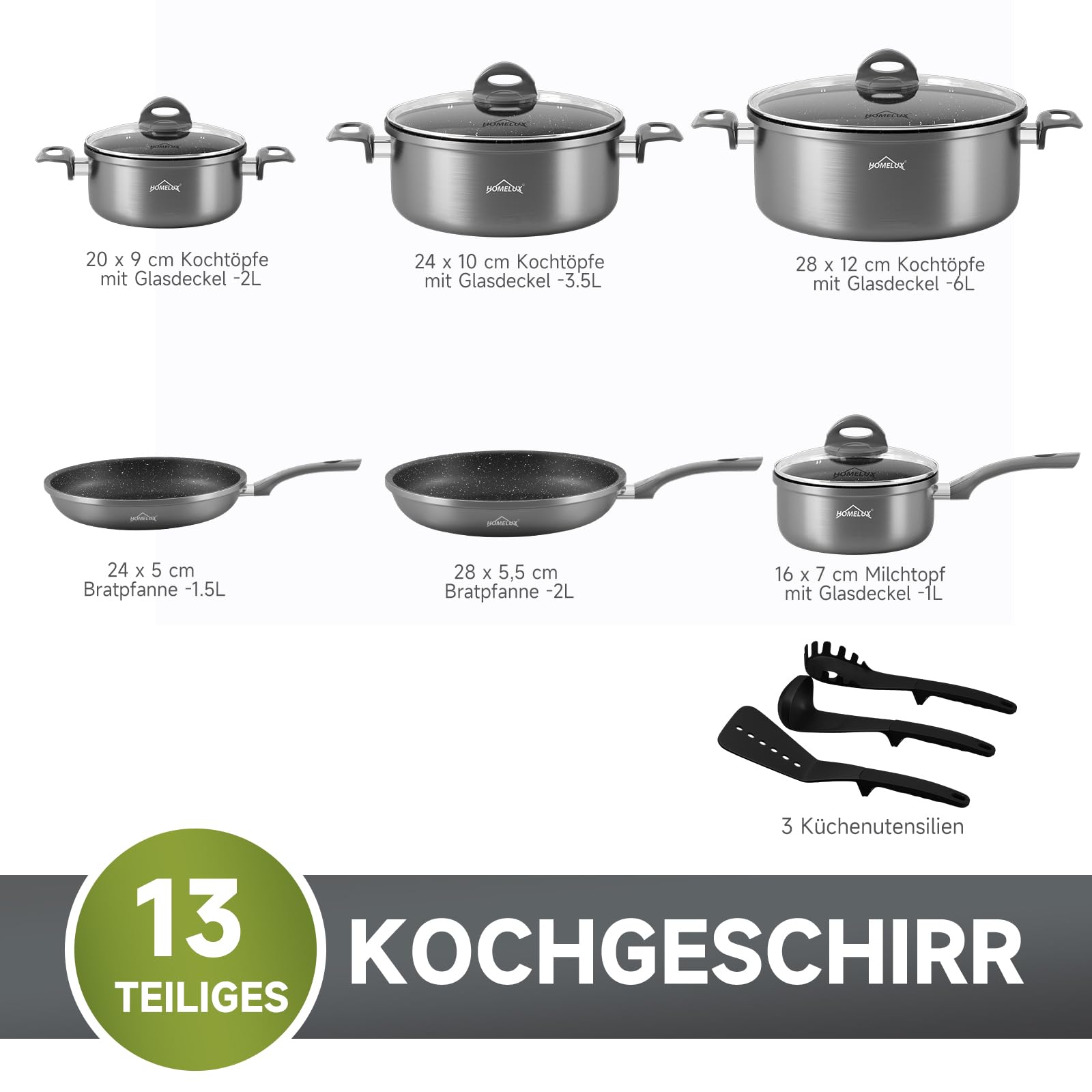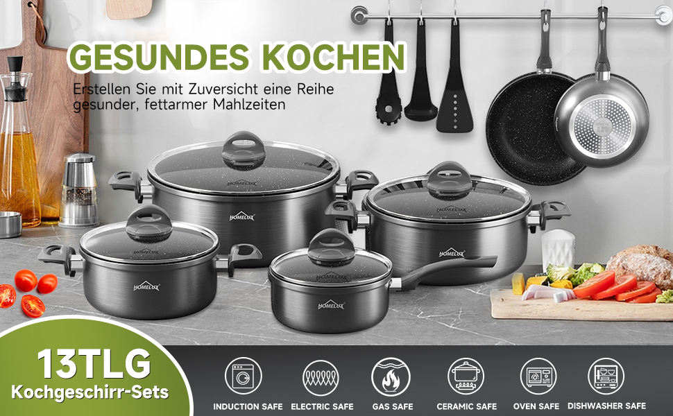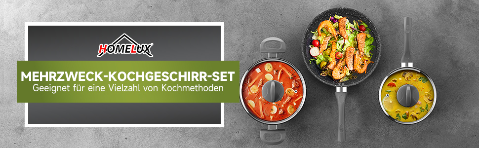Wenn Sie Fragen oder Probleme haben, zögern Sie nicht, uns zu kontaktieren. Wir sind hier, um Ihnen zu helfen und sicherzustellen, dass Sie mit Ihrem Kauf zufrieden sind. Wählen Sie Qualität und Funktionalität mit dem HOMELUX Topfset Induktion 13 teilig.