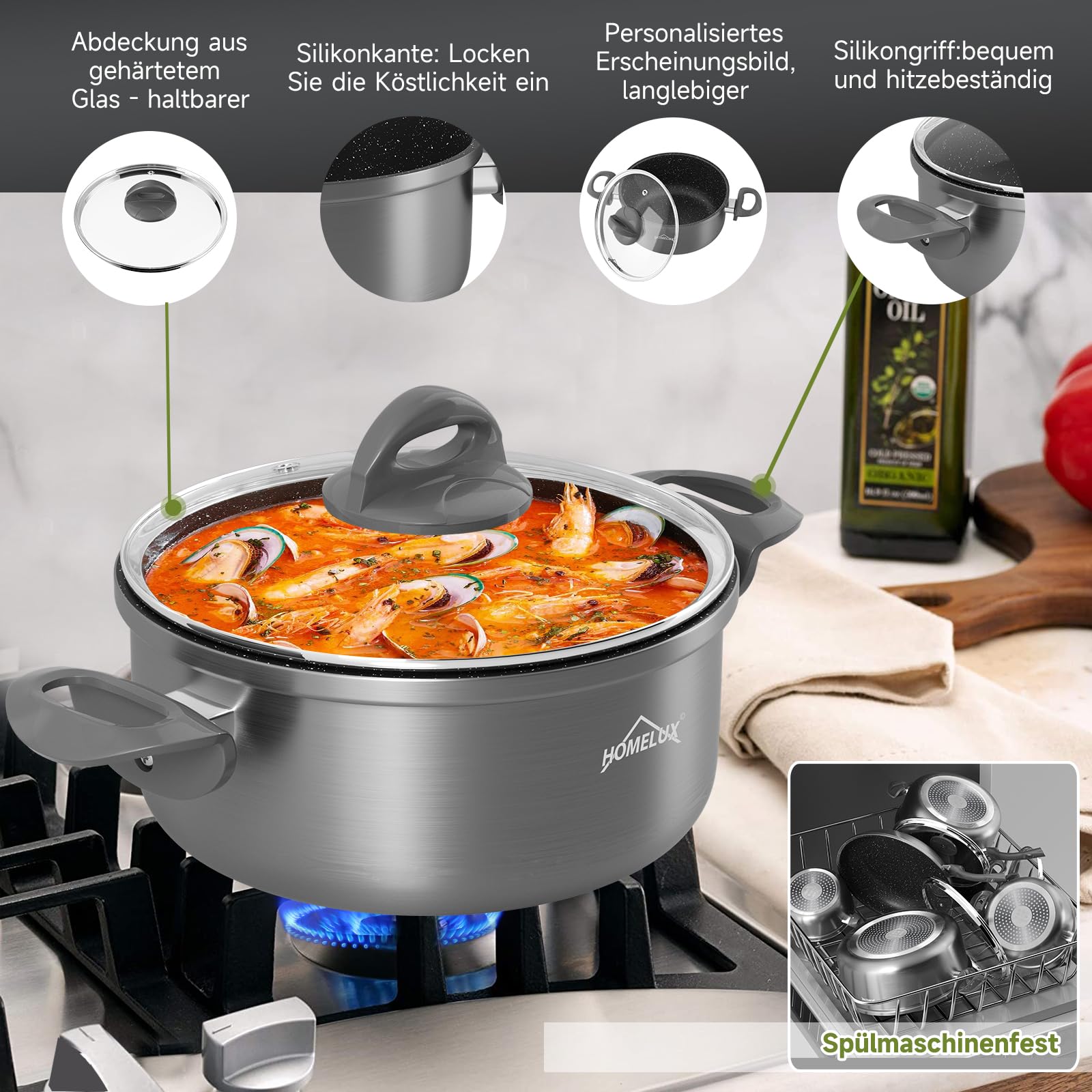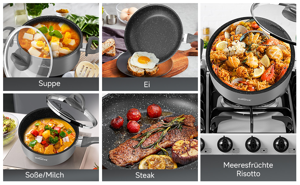 kochtopf set ist für alle Herdarten geeignet, einschließlich Induktionsherde. Es ist vielseitig einsetzbar und perfekt für die Zubereitung verschiedenster Gerichte. Dieses Set ist auch eine großartige Geschenkidee für Kochliebhaber und neue Haushalte.