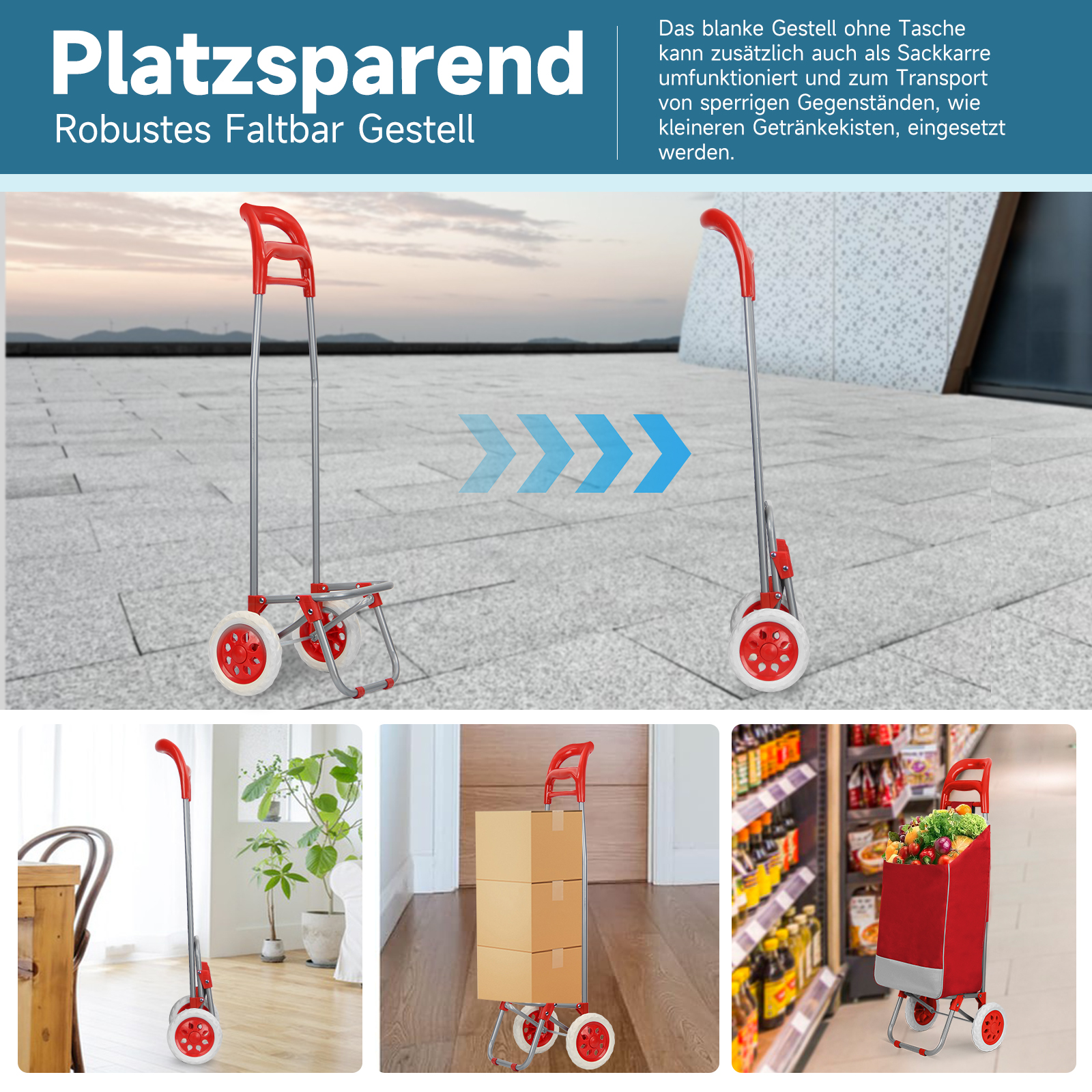Einkaufstrolley, HOMELUX klappbar, Stabiler Einkaufswagen, große Kapazität, multifunktional, Handwagen mit Rollen, abnehmbare Tasche, Rot ST09A2