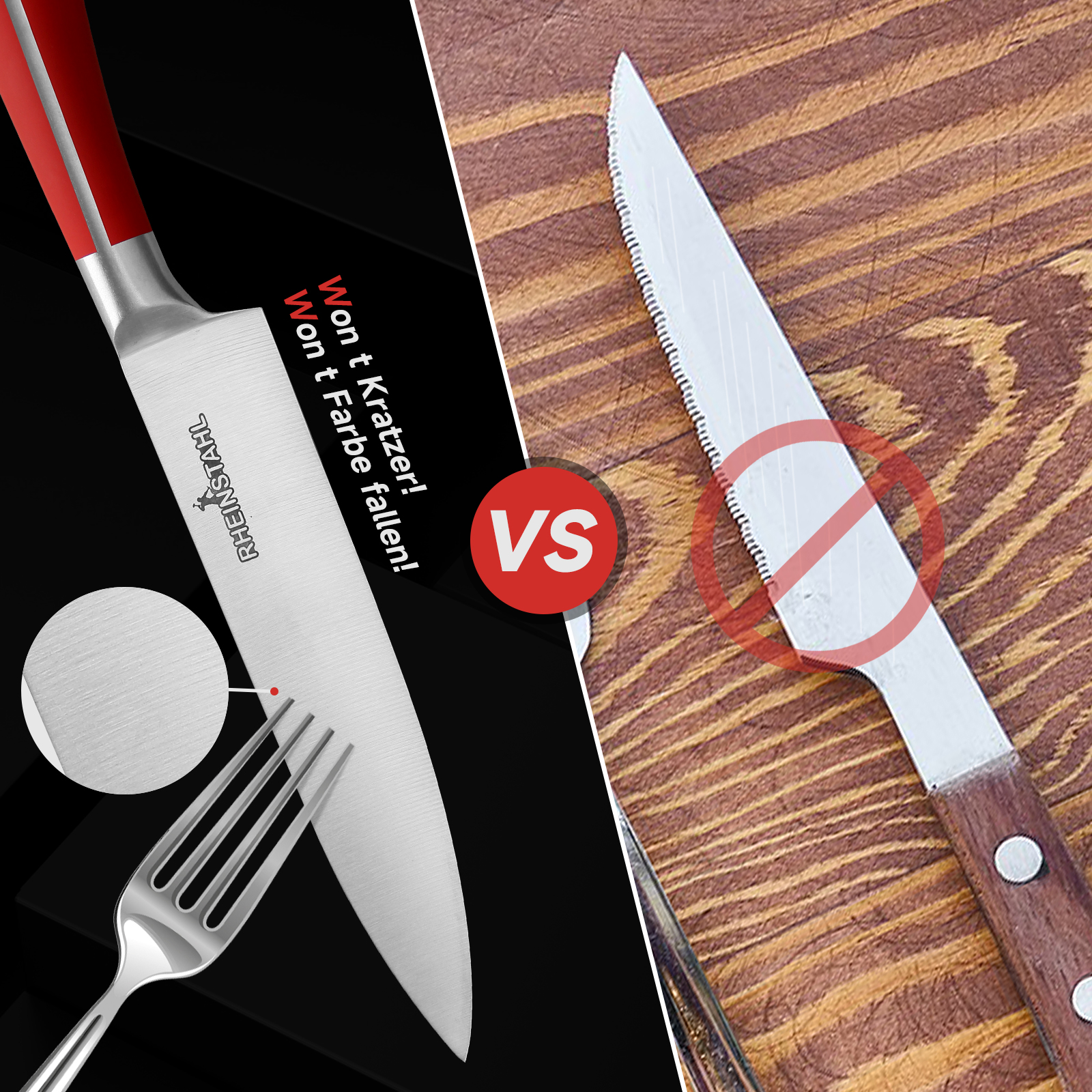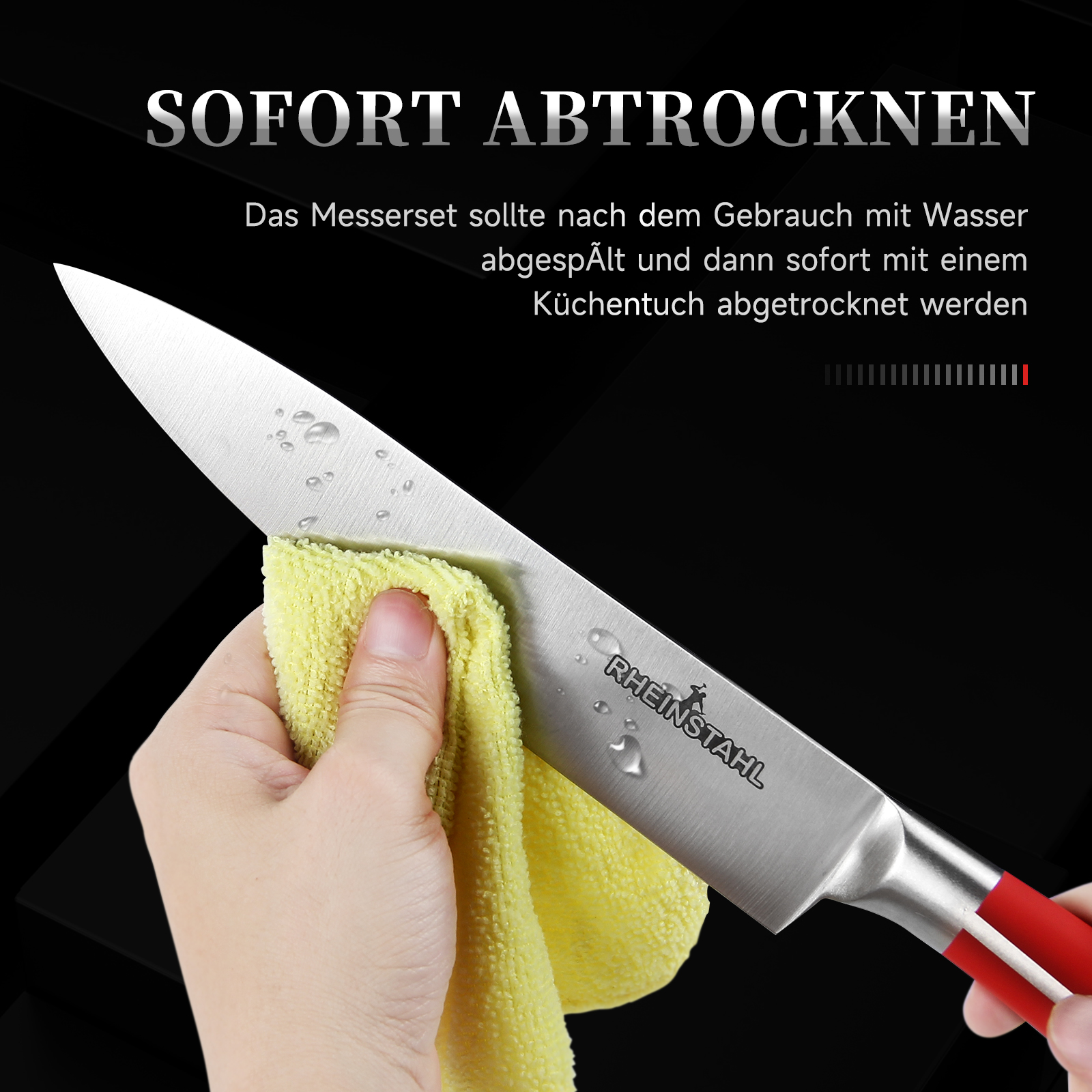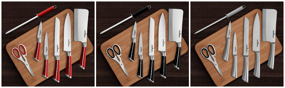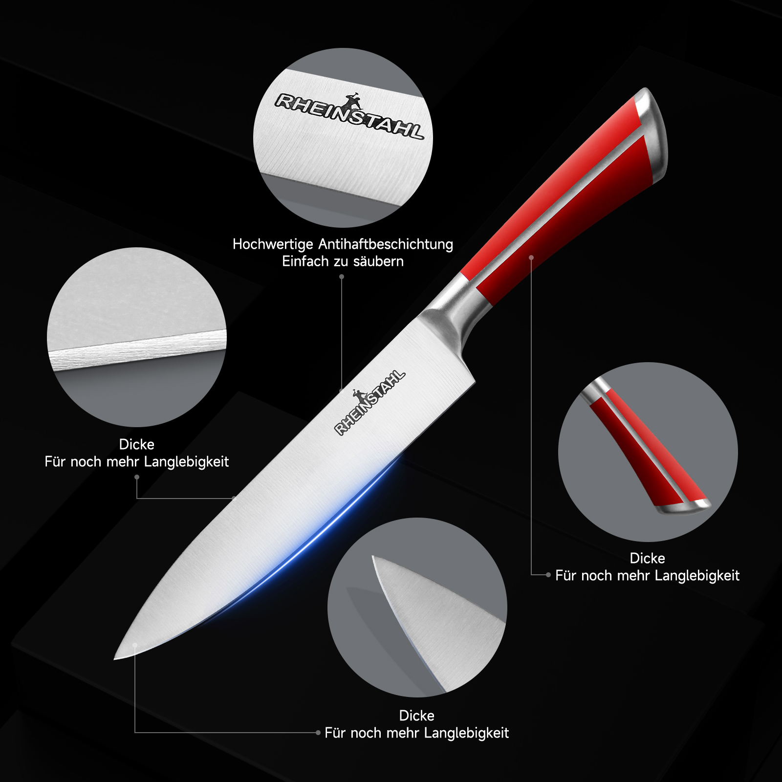 RHEINSTAHL Messerblock mit Messer, 9-tlg Messer Set mit Acrylblockhalter, Scharf Edelstahl Küchenmesser, Kochmesser Set mit Manuellem Anspitzer Schälschere,RH-8P2KSRS