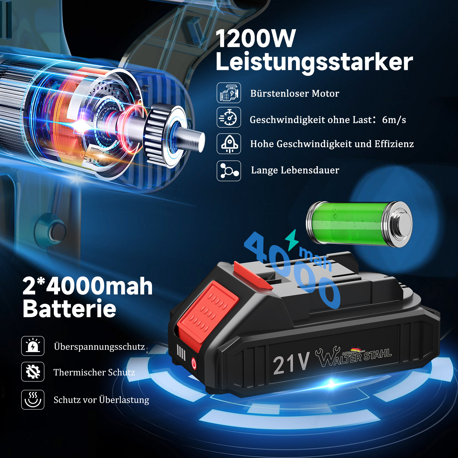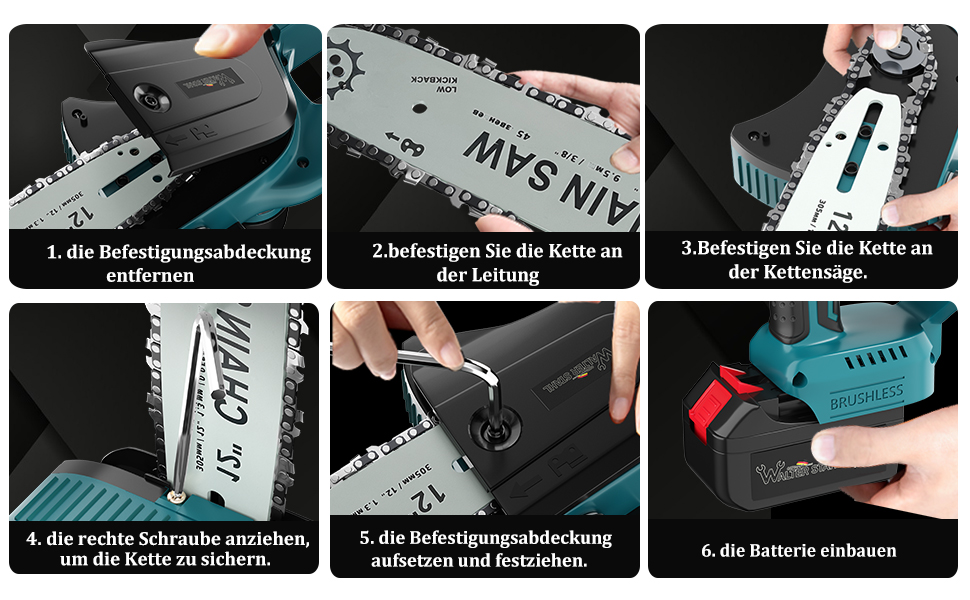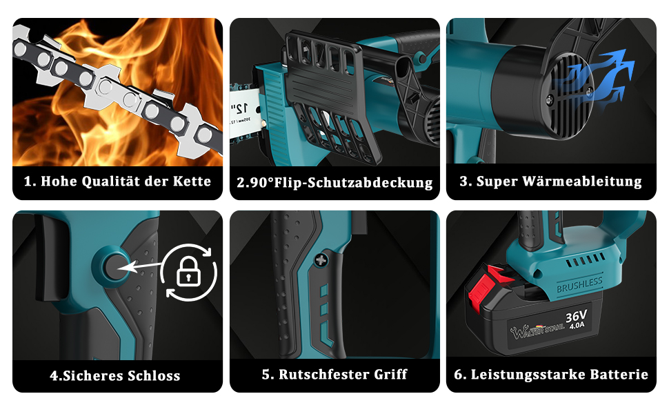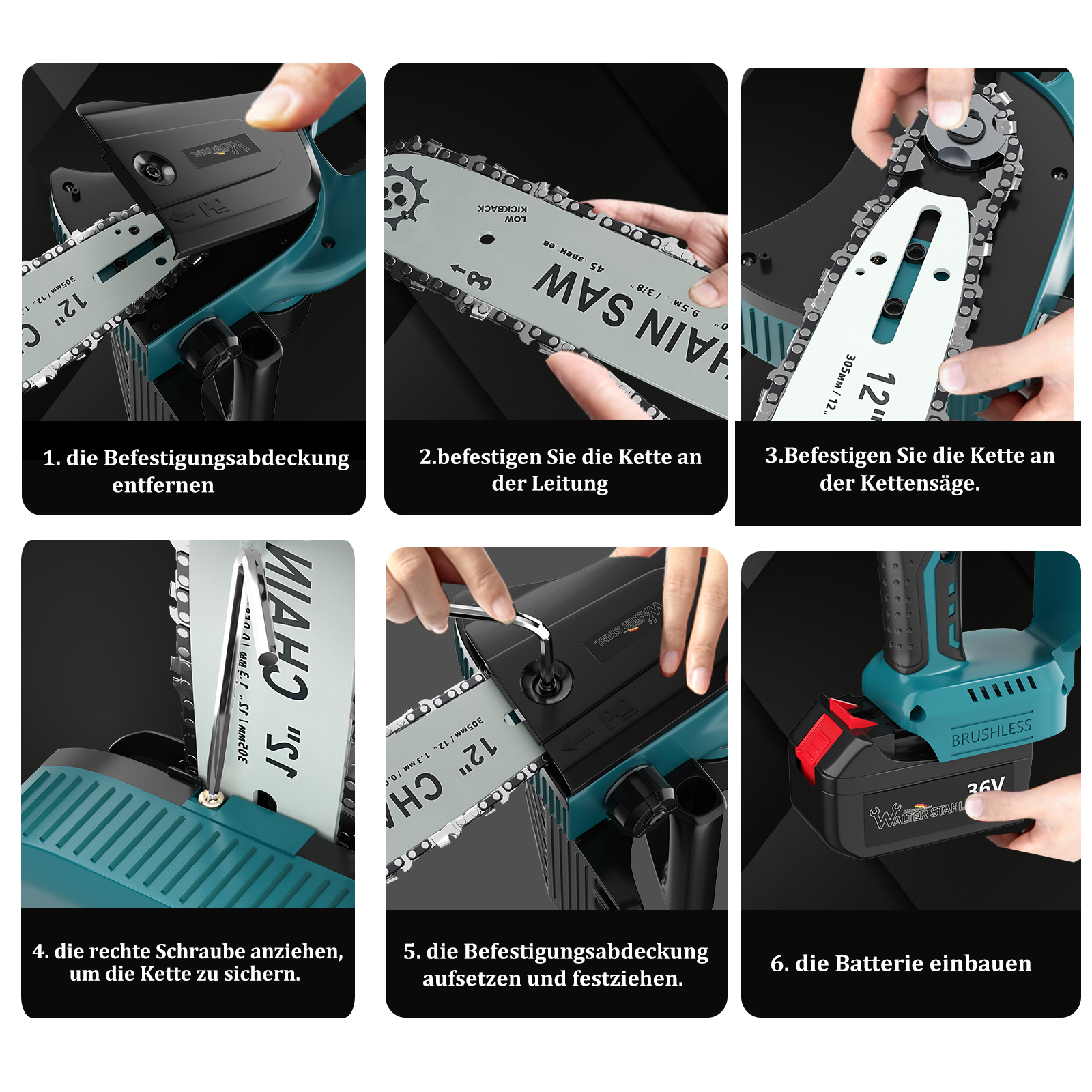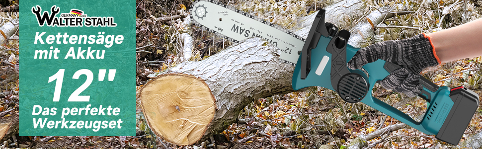 Kettensäge mit Akku, Akku Kettensäge, 12-Zoll Tragbar Kettensäge Elektrisch Mit Zwei Stück Akku & Schnell Ladegerät, Akku Handkettensäge für Bäume, Astwälde,BS8018