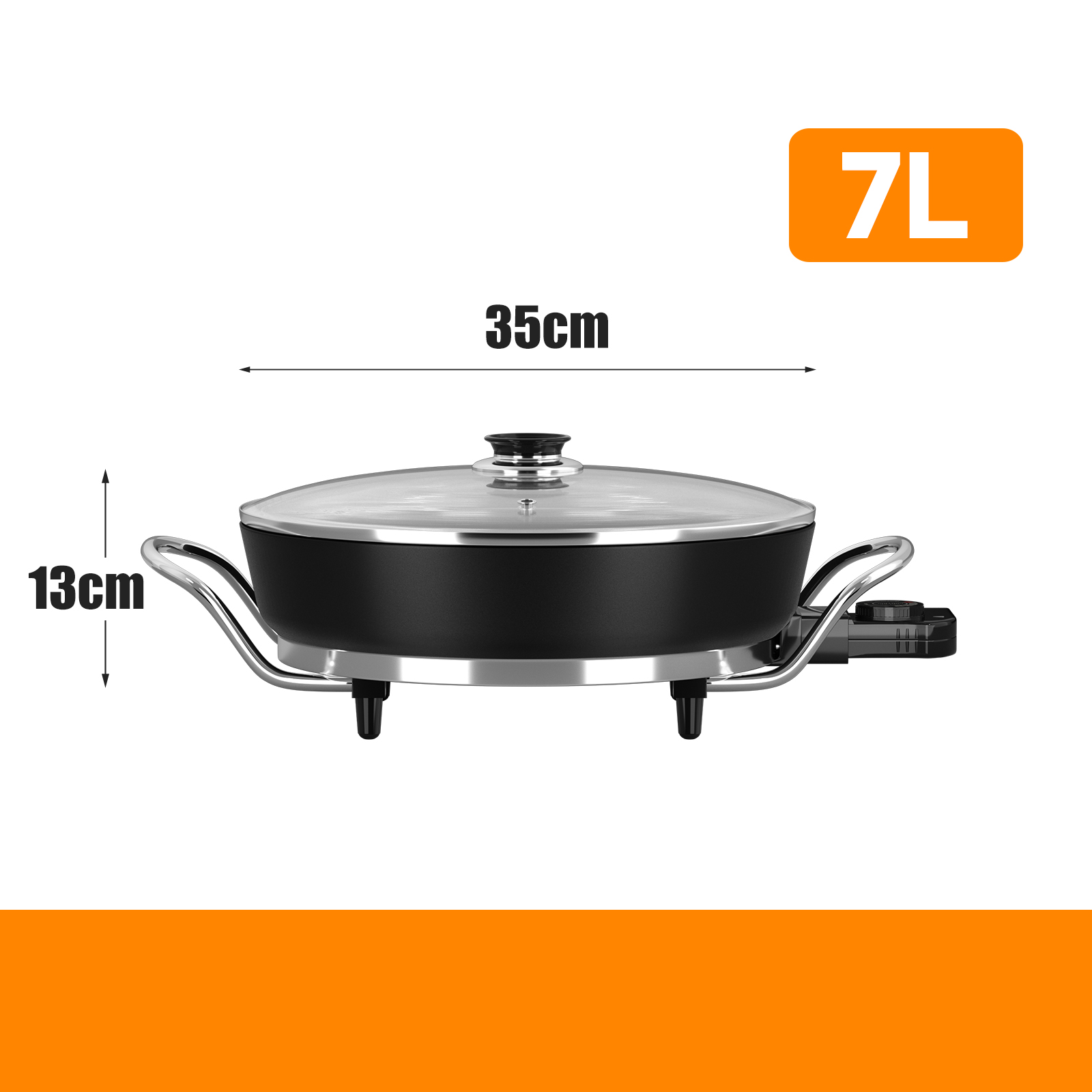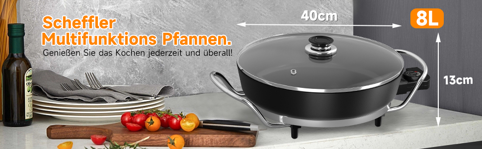 Die 36cm-7L / 40cm-8L elektrische Pfanne bietet viel Platz zum Kochen. Sie können Reis, Eintöpfe, Pfannengerichte oder Pfannkuchen zubereiten. Ideal für ein Abendessen mit der Familie oder für Gäste.