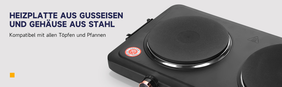 Der kochplatte bietet Vorteile wie: keine Strahlung, keine offene Flamme, kein Kohlenmonoxid und Spannungs- und Wärmeregulatoren zu Ihrem Schutz.
