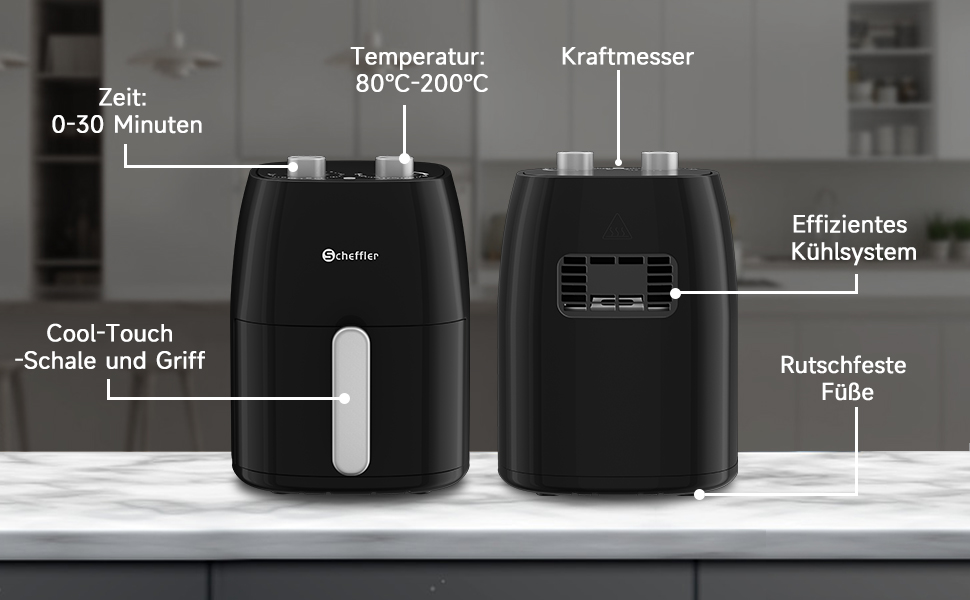 Im Vergleich zur Touchscreen-Bedienung ist diese heißluftfriteuse leichter zu verstehen, einfacher, schneller und langlebiger. Stellen Sie einfach die Zeit (1 bis 30 Minuten) und die Temperatur (80 °C bis 230 °C) mit dem Drehknopf ein und die mitgelieferte Anleitung enthält einfache Rezepte. Sie können Ihrer Fantasie auch freien Lauf lassen, um Freunde, Familie und sich selbst mit köstlichen und gesunden Leckereien zu verwöhnen!