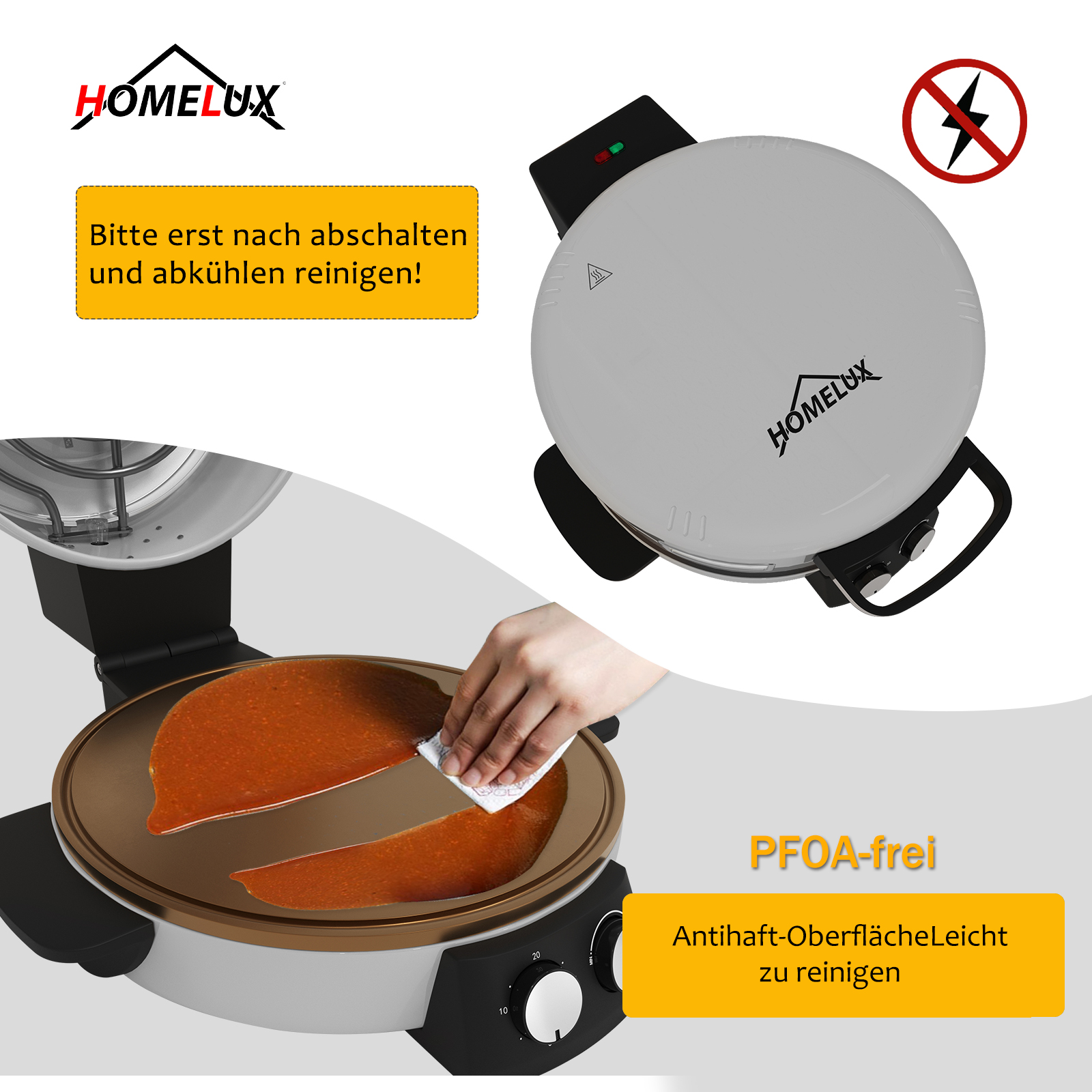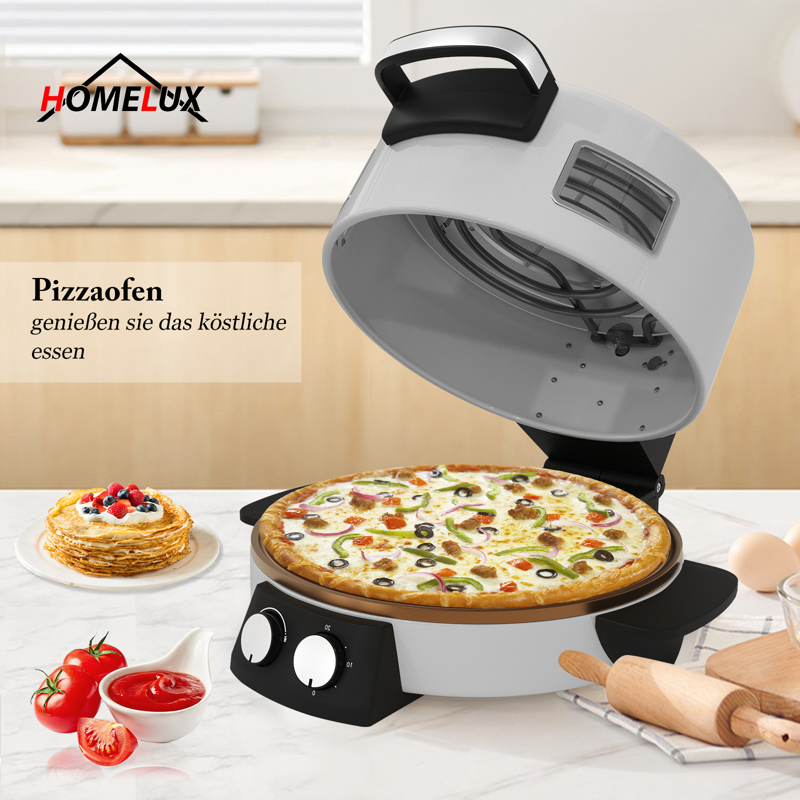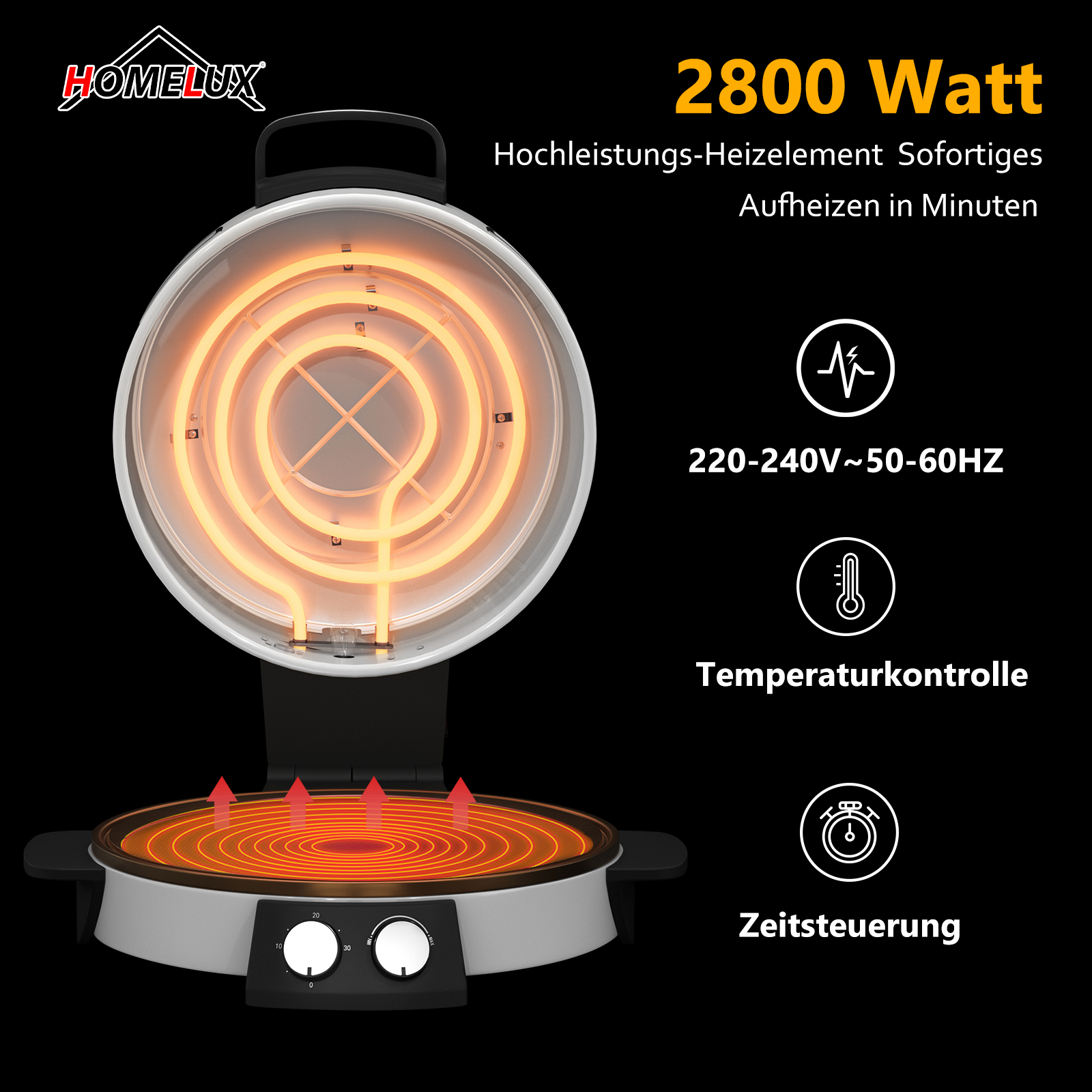 Homelux Elektro-Rundbackofen, 2800 W Pizzabäcker, Pizzaofen, Elektrisch, Steinbackofen, Pizzaofen, 400 °C, 30 Minuten Timer, Feuerfeste Steinplatte, 40 cm Durchmesser Lahmacun Makinesi,BM-271