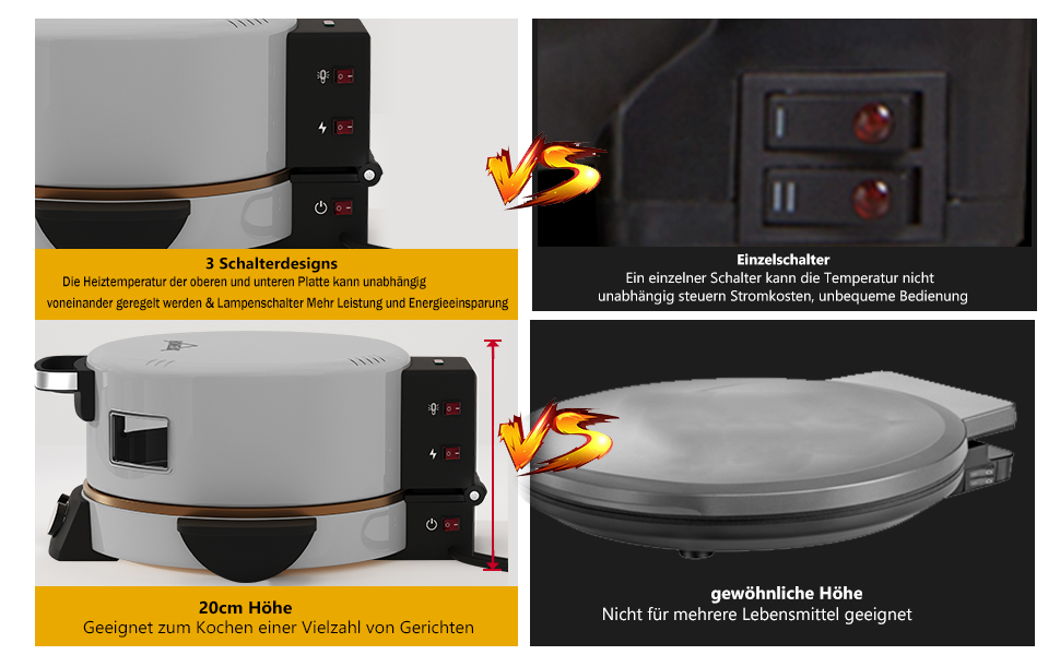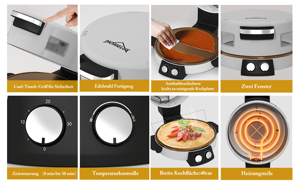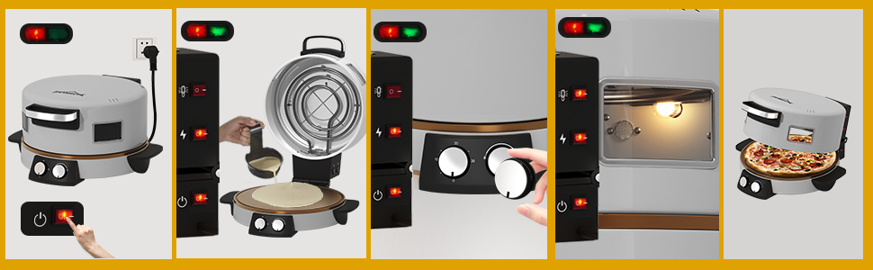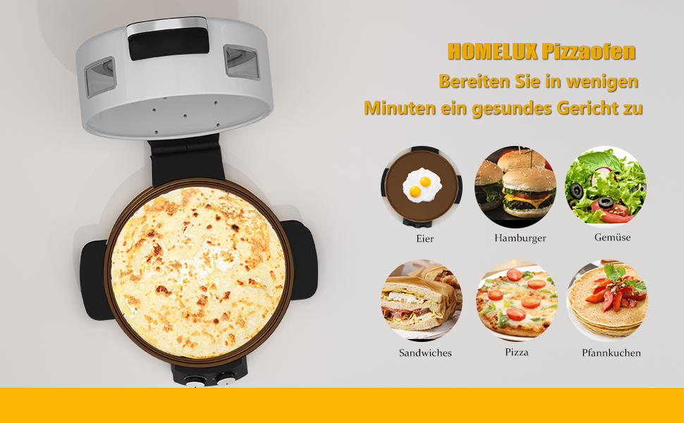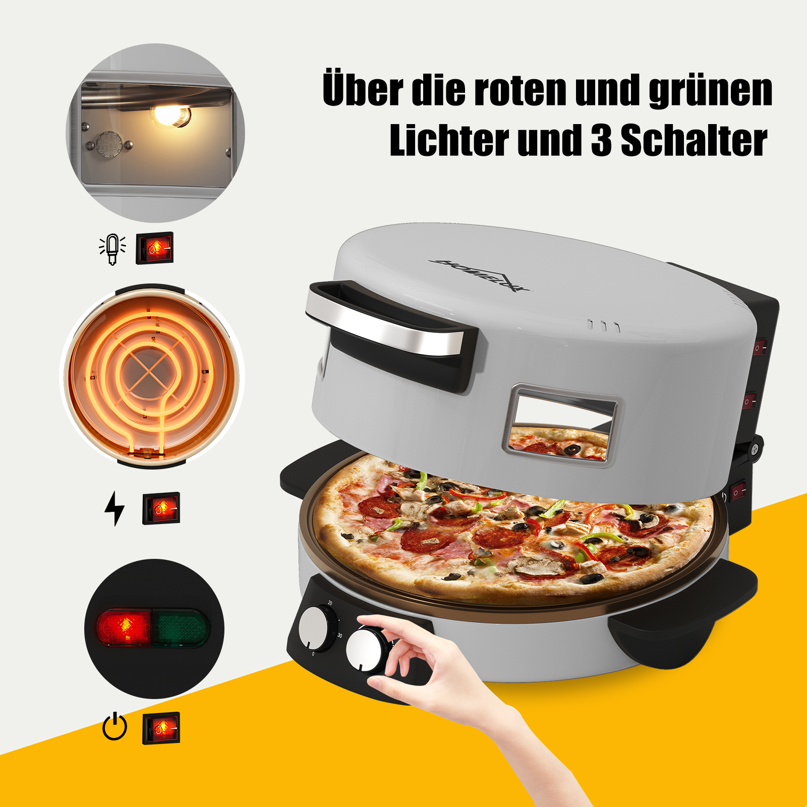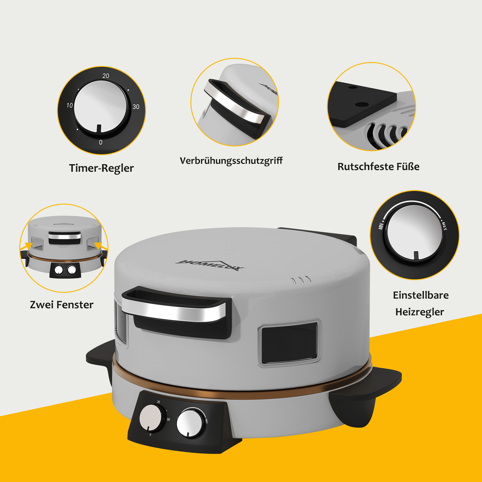 Homelux Elektro-Rundbackofen, 2800 W Pizzabäcker, Pizzaofen, Elektrisch, Steinbackofen, Pizzaofen, 400 °C, 30 Minuten Timer, Feuerfeste Steinplatte, 40 cm Durchmesser Lahmacun Makinesi,BM-271