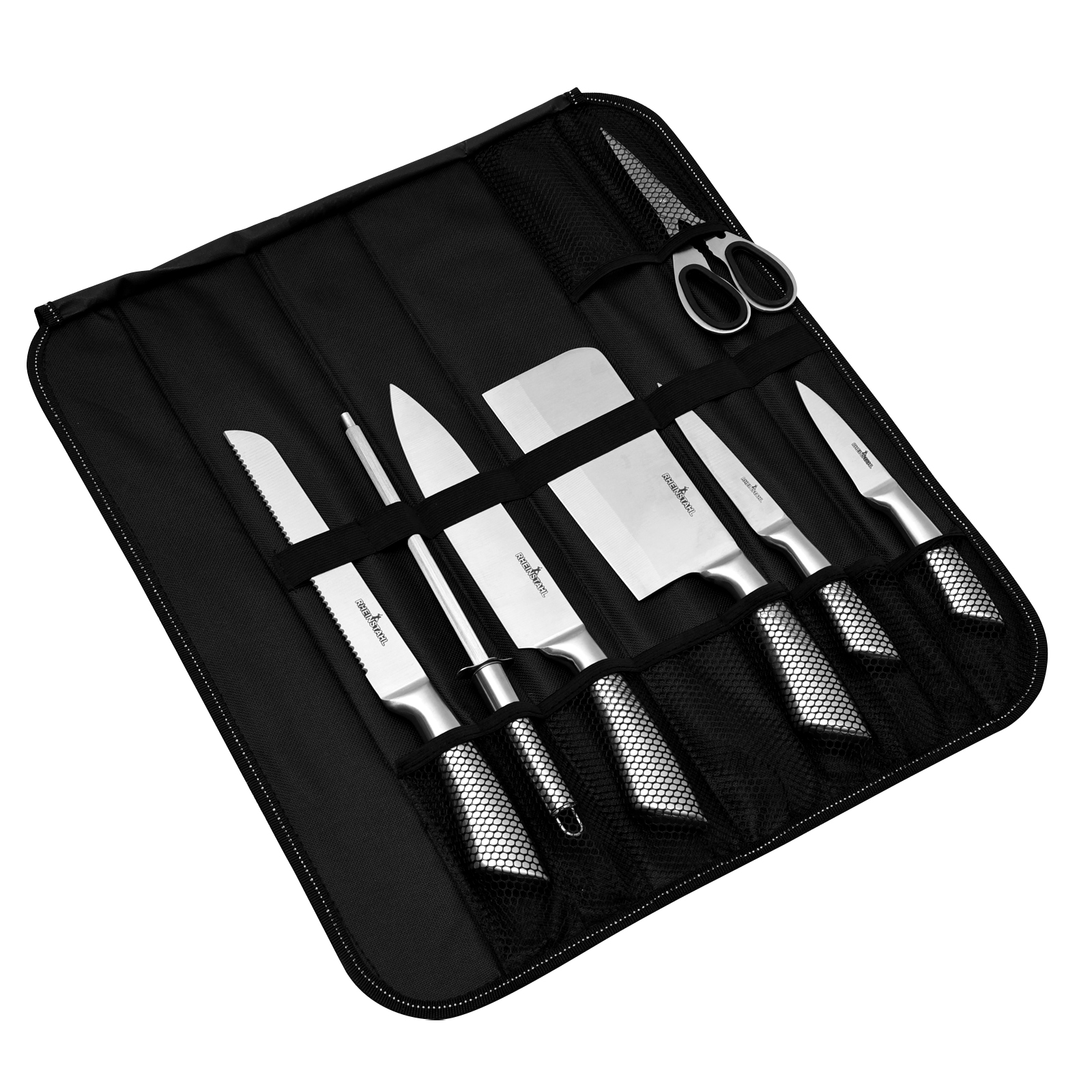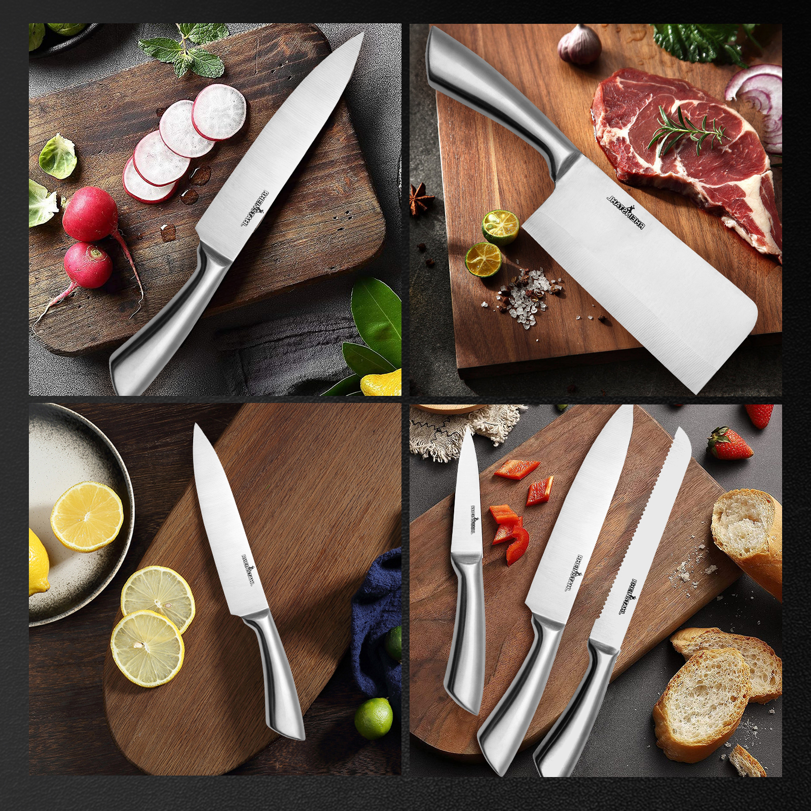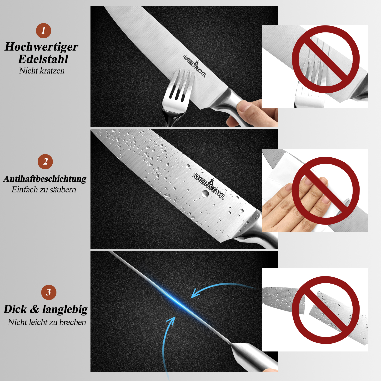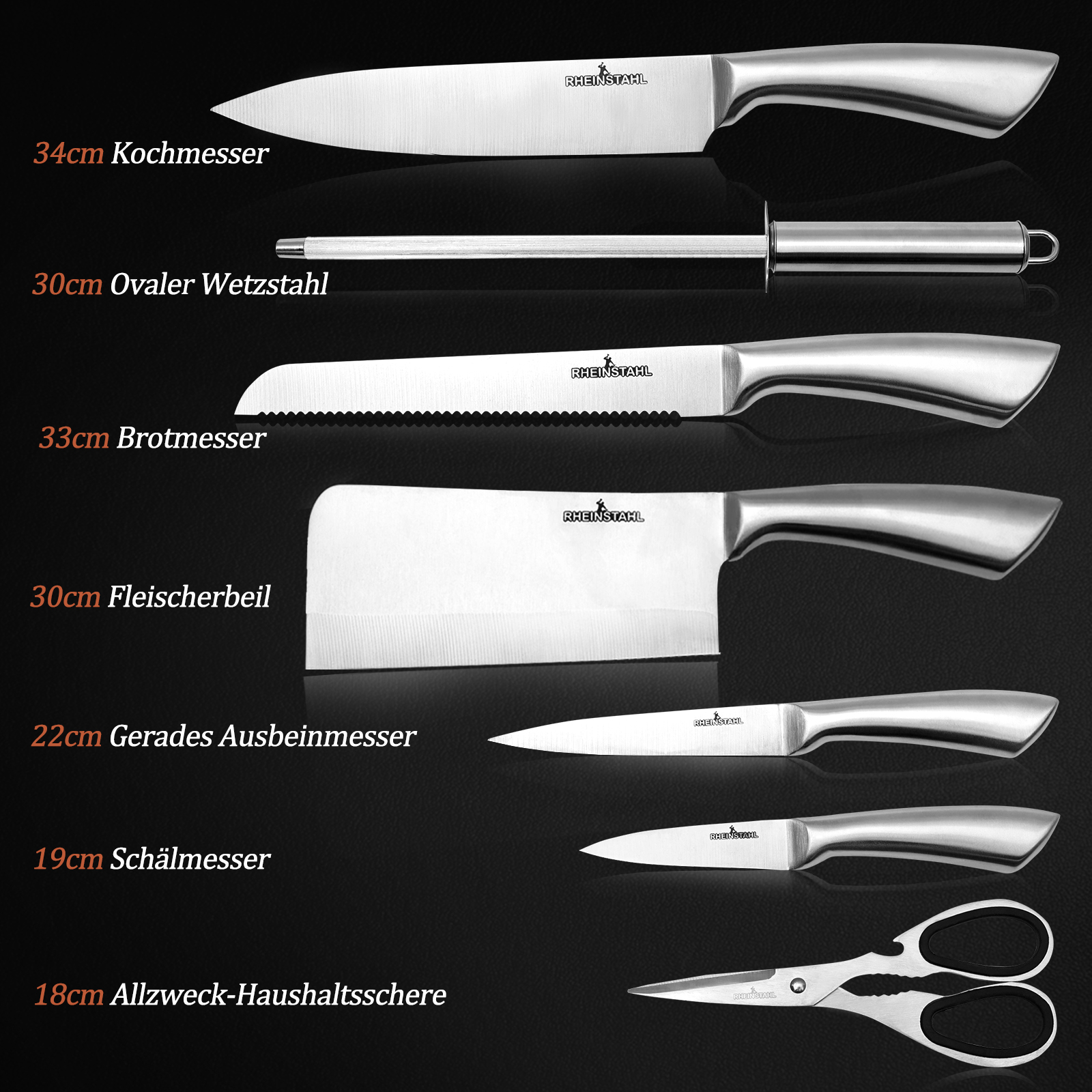 10TLG MESSER SET HACKMESSER 2,0 MM, KOCHMESSER/BROTAUFSCHNITTMESSER/SCHNITZMESSER/KNOCHENGABEL 1,5 MM, SCHÄLMESSER 1,2 MM. HOLZBESCHICHTUNG GRIFF. RS-6011; RS-009S