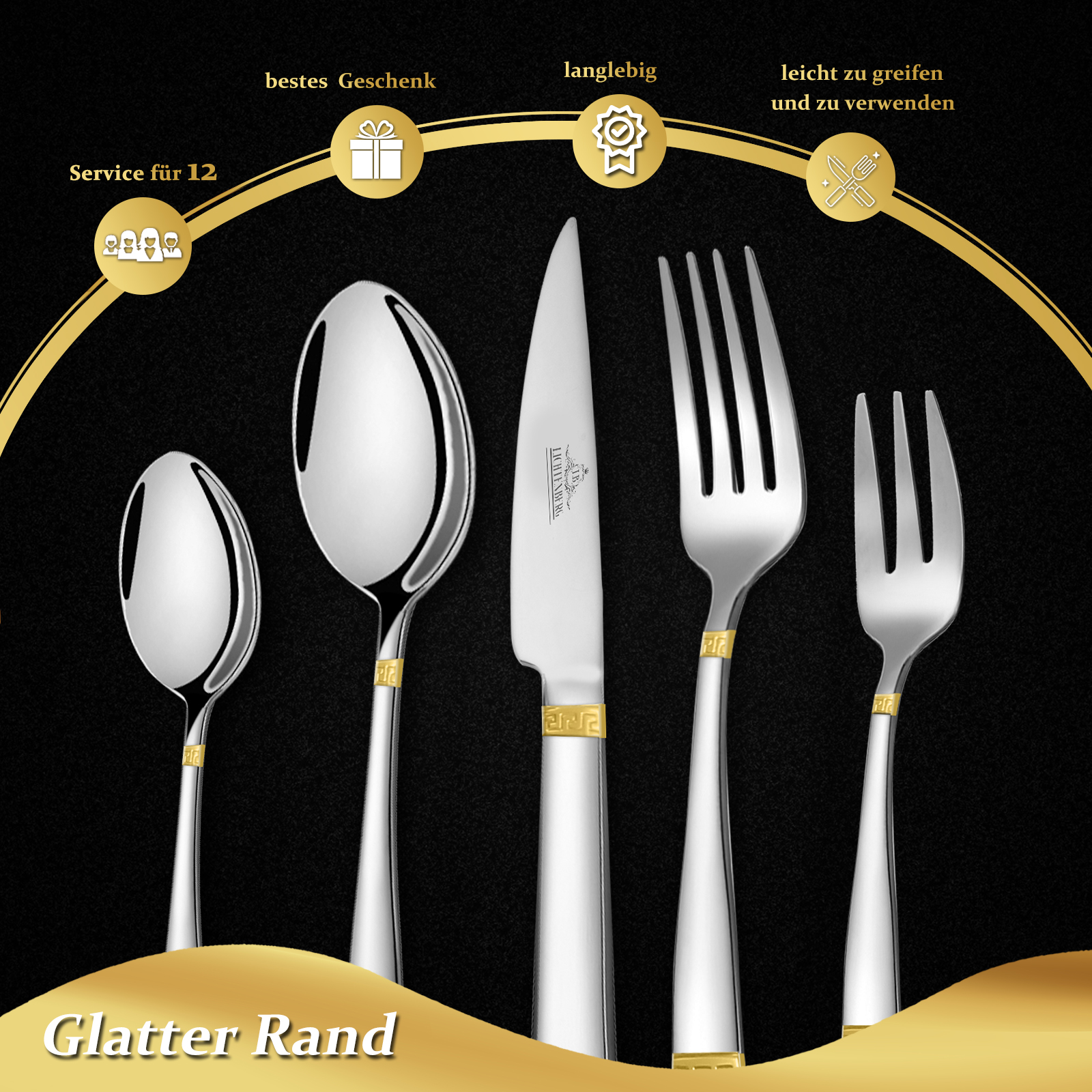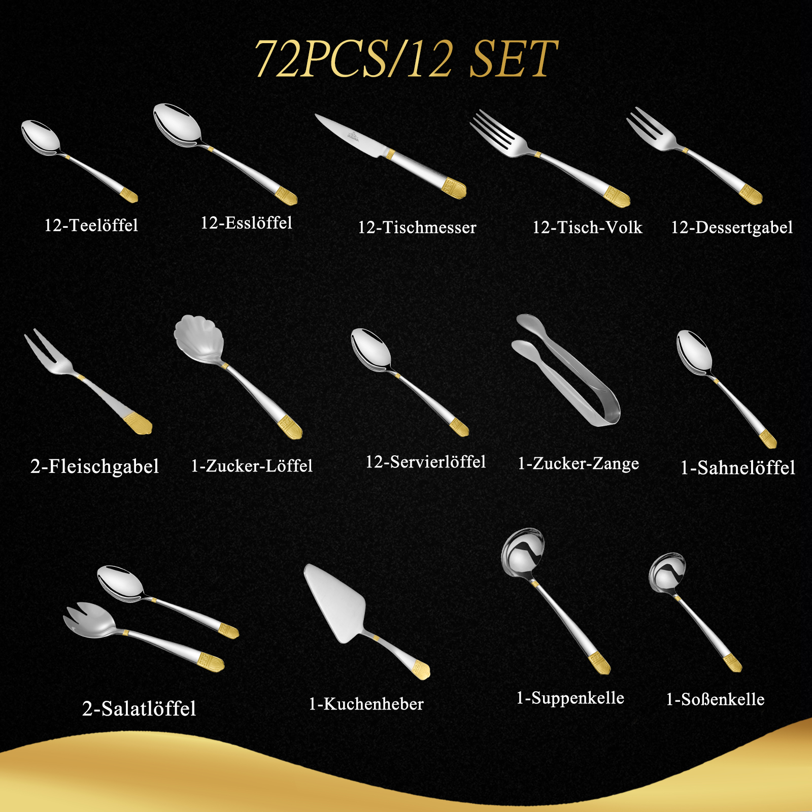 LB Besteck Set 12 Personen Essbesteck Set 72 teilig Essbesteck Besteck Edelstahl Für 12 Personen, Besteck Edelstahl glänzend Spülmaschinenfest (FTS-72LC-3092)