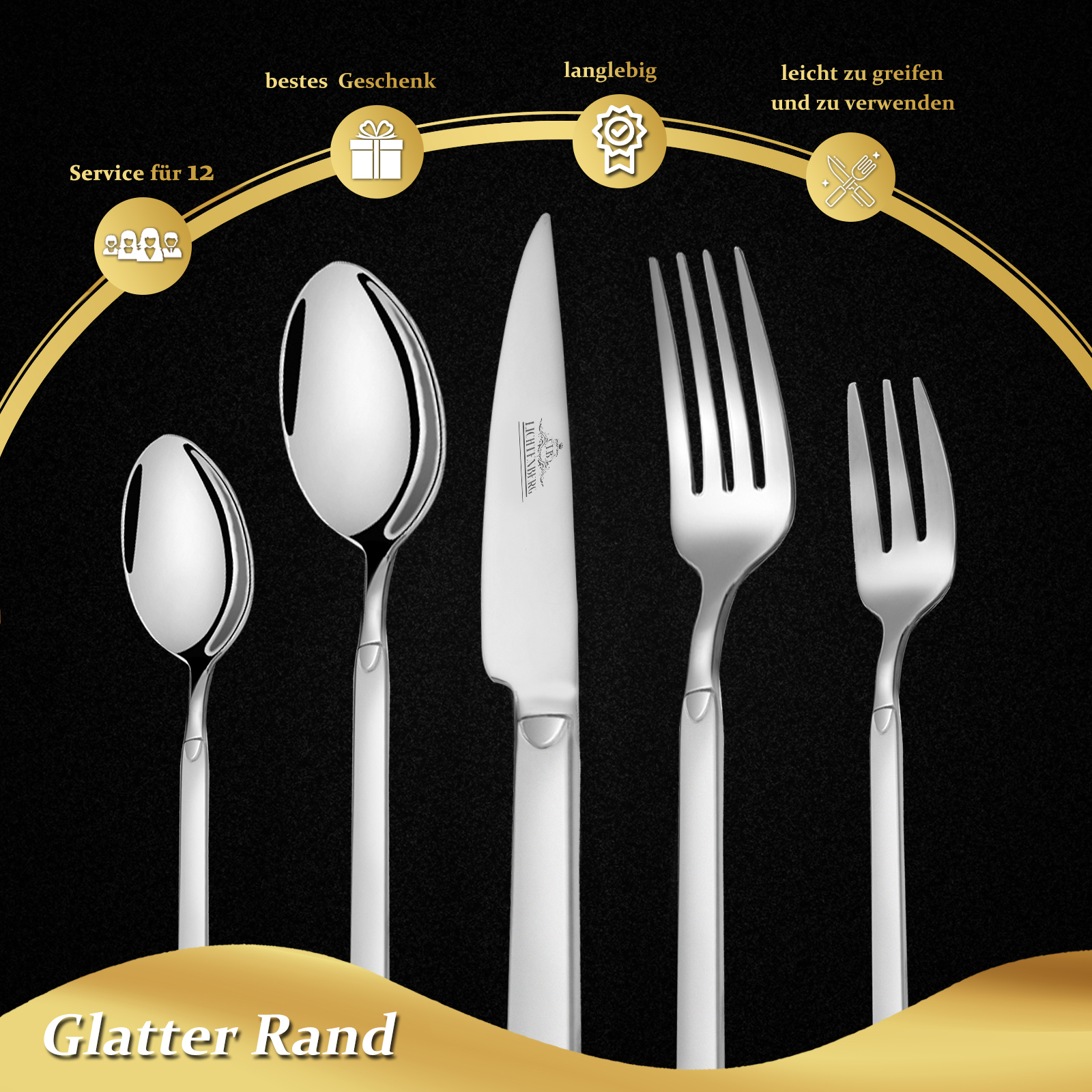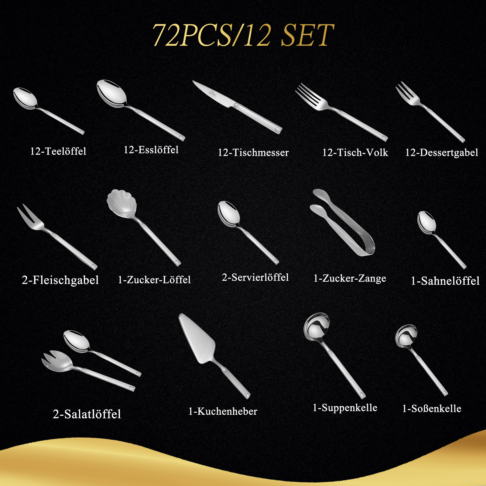 LB Besteck Set 12 Personen Essbesteck Set 72 teilig Essbesteck Besteck Edelstahl Für 12 Personen, Besteck Edelstahl glänzend Spülmaschinenfest (FTS-72LC-3162)