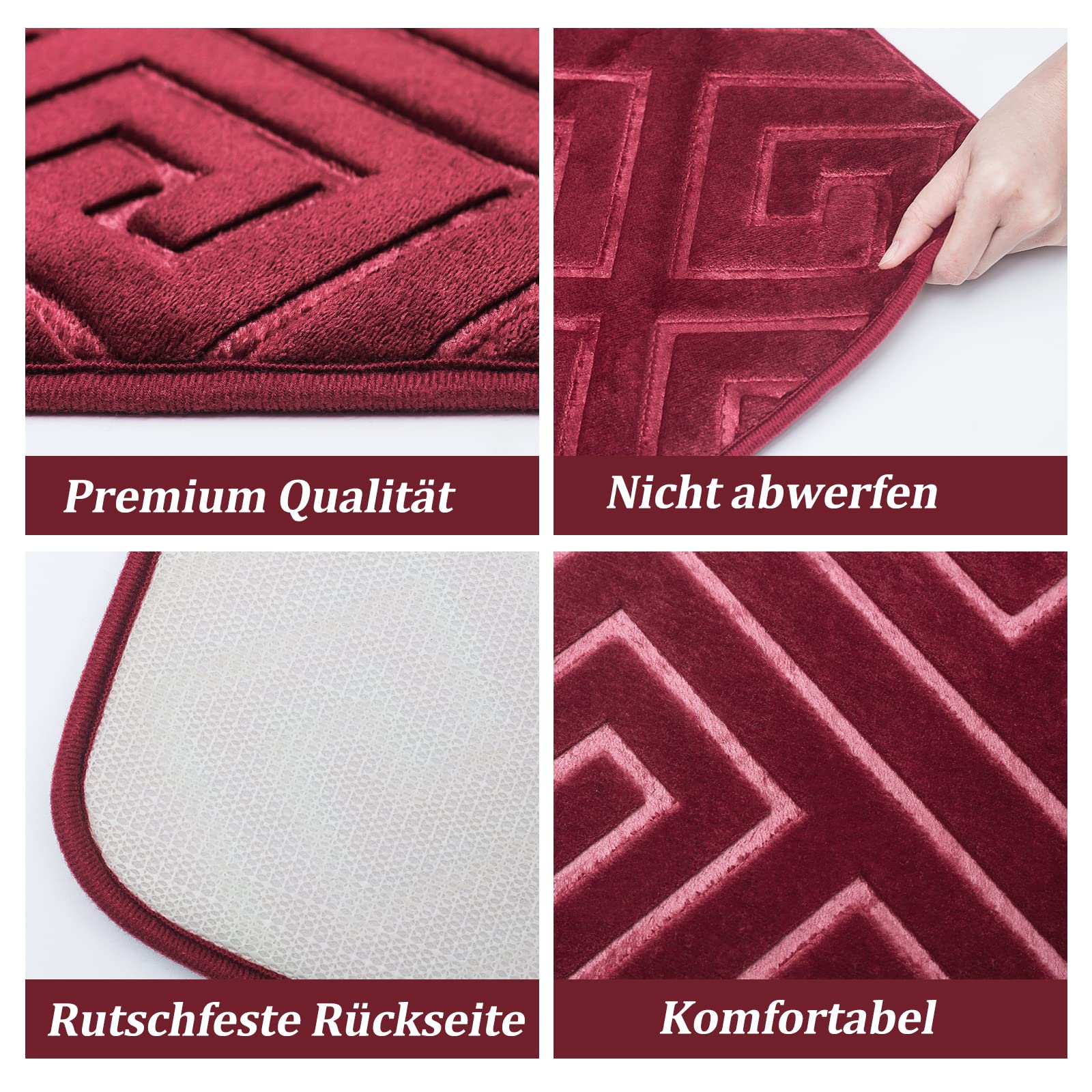 Das Set besteht aus jeweils 1 x 50 x 60 cm und 60 x 100 cm Badematten. Unsere Badematten bestehen aus 100% Polyester. Wir verwenden hochwertiges Polyestermaterial. Die Rückseite ist mit einem rutschfesten PVC-Boden hinterlegt. Die dicke und weiche Kontaktfläche bietet ein super angenehmes Gefühl und hilft, den Druck auf Ihre Füße zu verringern. Genießen Sie den Komfort und verabschieden Sie sich vom schrecklichen Faserabfall!