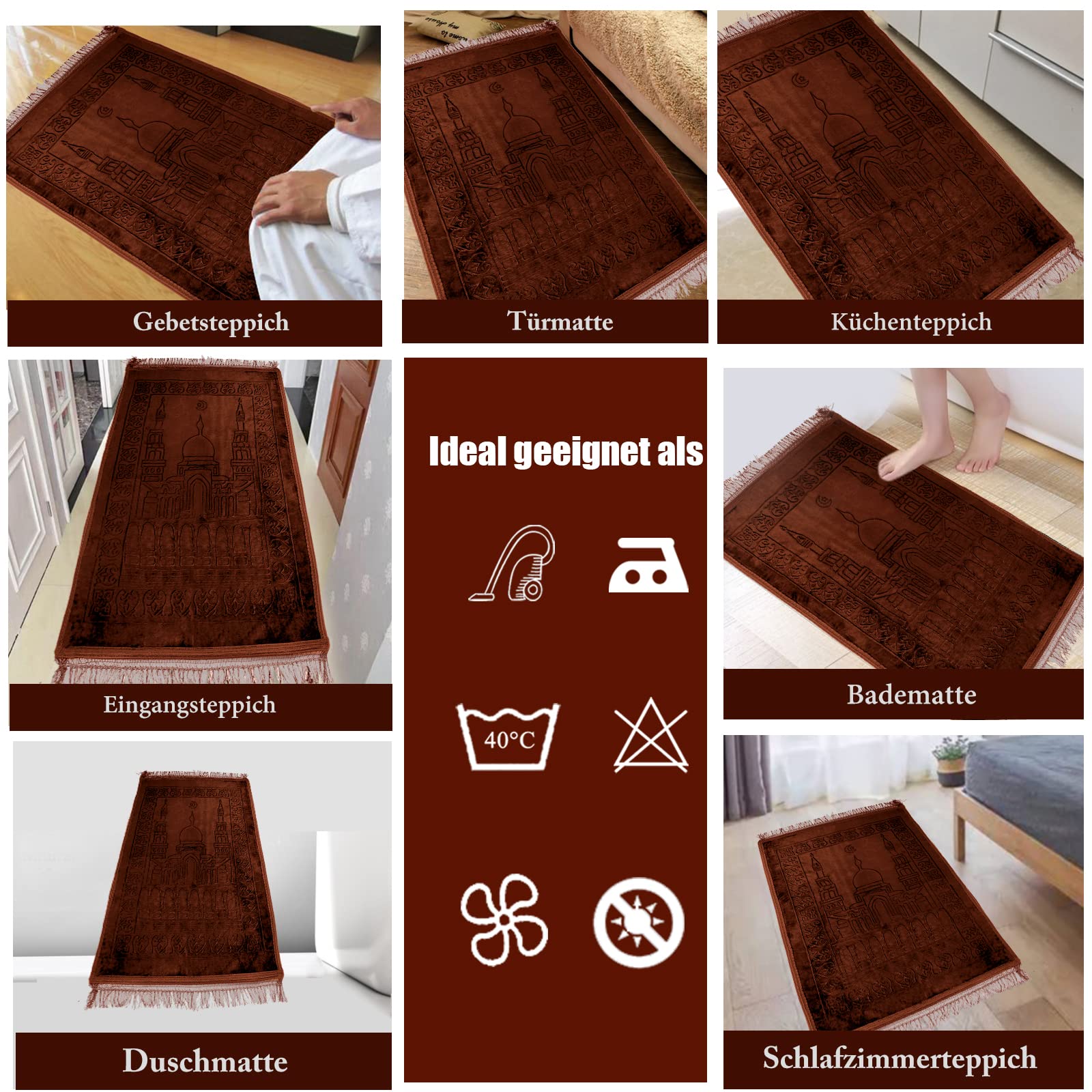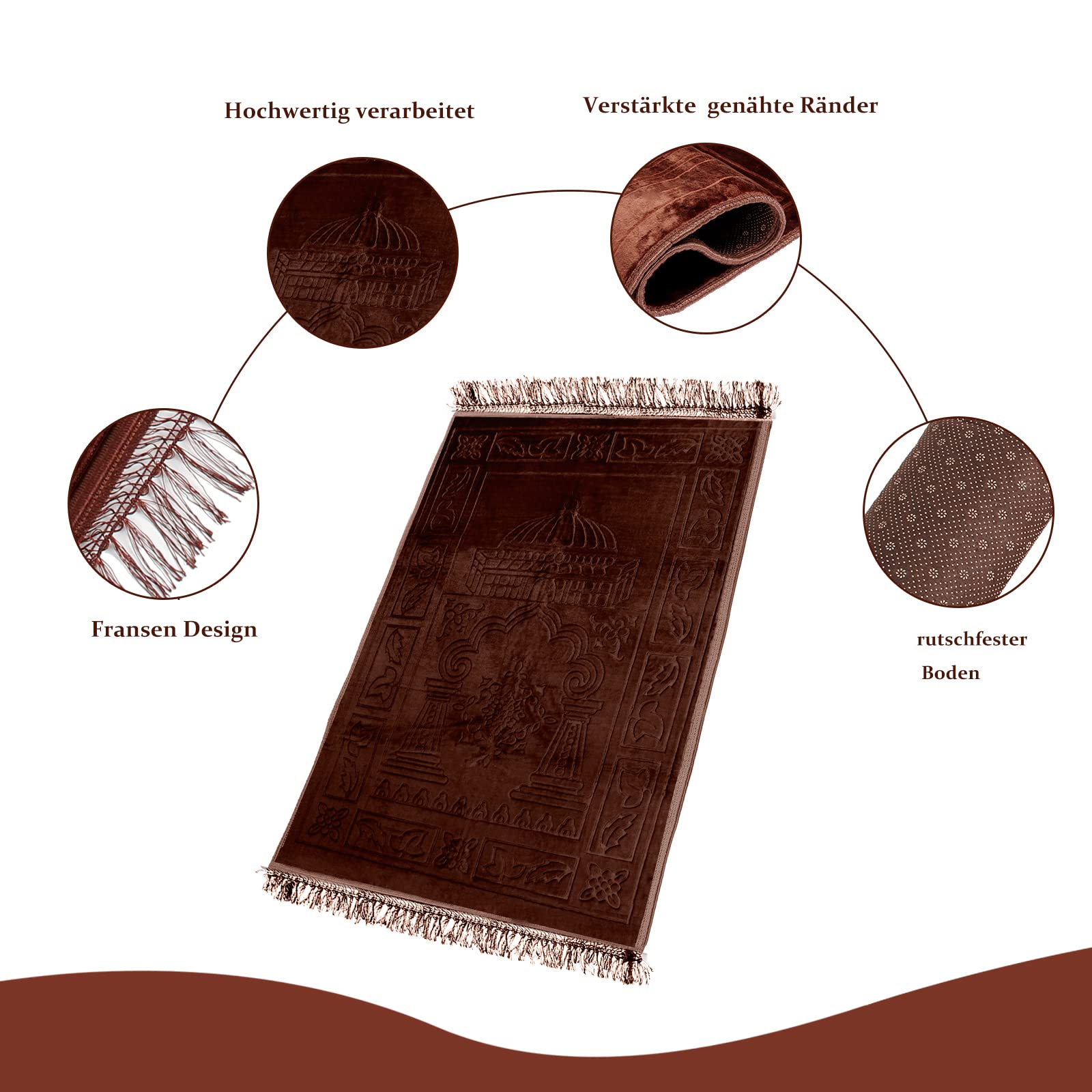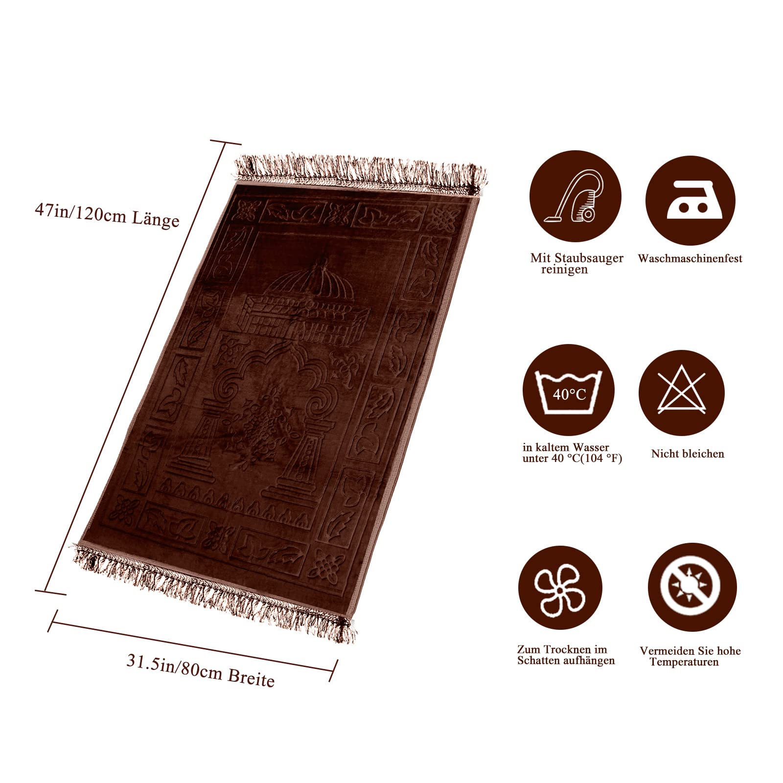 HOMELUX Gebetsteppich, Teppiche, Gebetsteppich Islam,80x120cm Prayer Mat, Teppich orientalisch, türkische Teppiche, orientalischer Teppich,Islamic Prayer mat Rug, Gebet im Islam, Brown