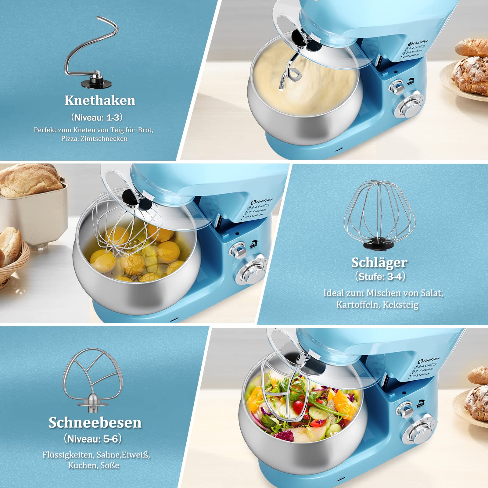 Mit einem 1300-W-Hochleistungsmotor und einem einstellbaren 7-Stufen-Controller können Sie mit dieser Küchenmaschine die Mischgeschwindigkeit nach Belieben auswählen. Der Teigmixer kann Ihnen dabei helfen, die verschiedenen zu präsentieren Menüs aus den Rezepten auf Ihrer Küchenarbeitsplatte, wie Pasta, Pizza, Eis, Blätterteigkuchen, Brot, Salat usw., die perfekte Wahl für Küchenliebhaber.