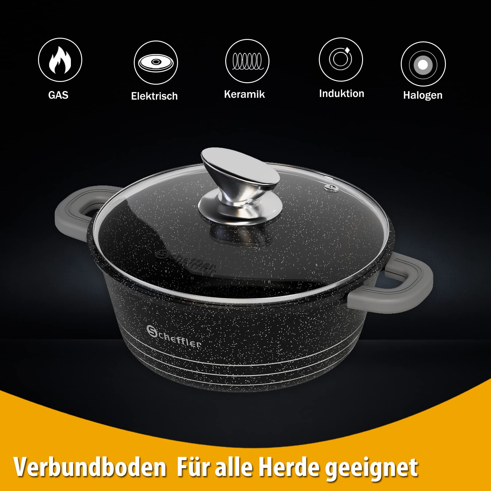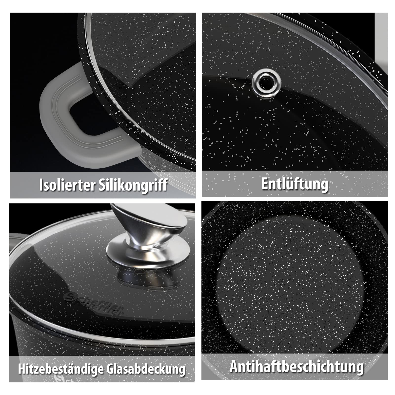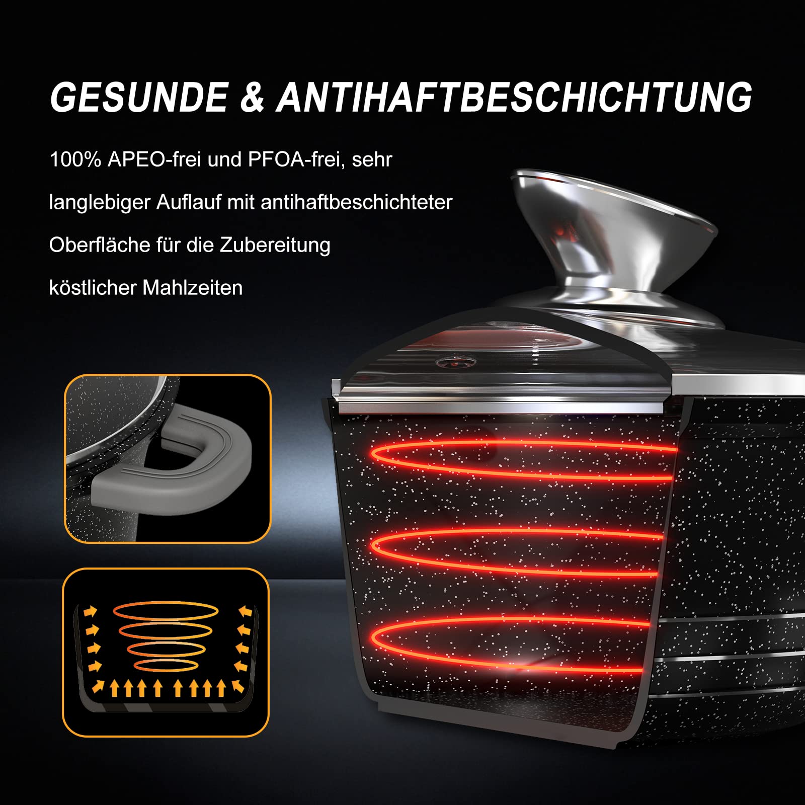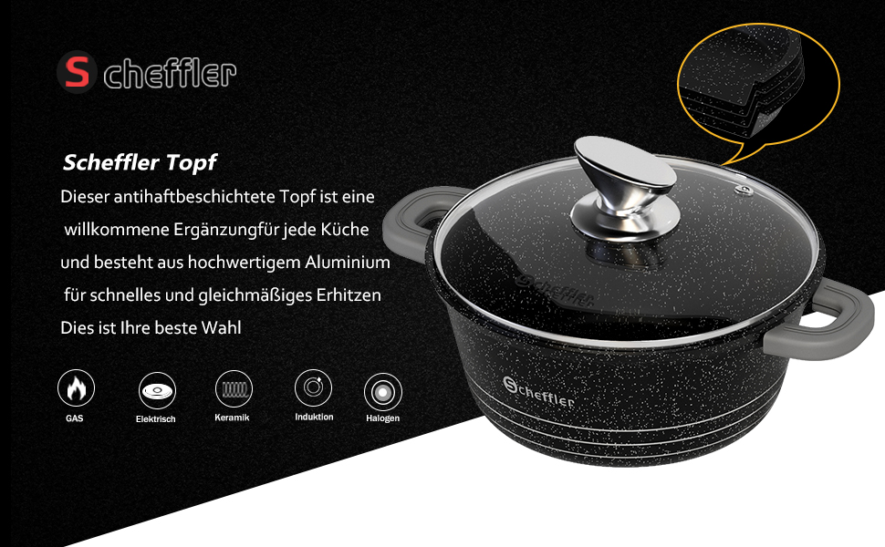 Dieser Topf mit Aluminiumdruckguss-Körper, der ihn sehr robust und langlebig macht.Mehrschichtiger Boden sorgt für eine schnelle und stabile Wärmeverteilung beim Kochen, schnelles Aufheizen, was Zeit und Energie spart .