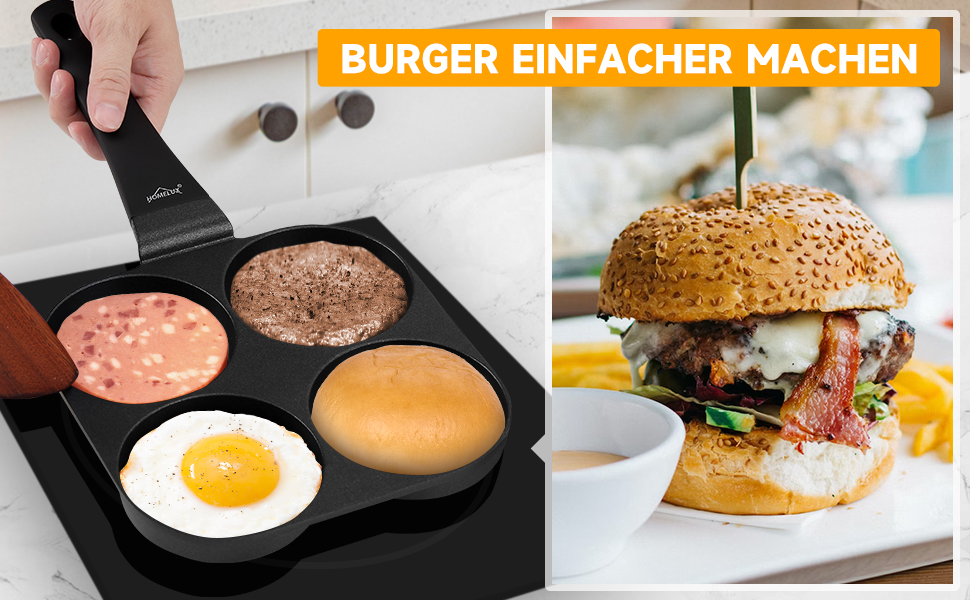 Diese Pancake Pfanne Induktion ist leicht zu handhaben. Gib vor dem Gebrauch etwas Öl in die Spiegeleiform, um die Freisetzung von Lebensmitteln zu erleichtern. Sie kann gleichzeitig vier Spiegeleier zubereiten und eignet sich für ein Familienfrühstück. In nur fünf Minuten kann deine Familie köstliche kulinarische Kreationen genießen.