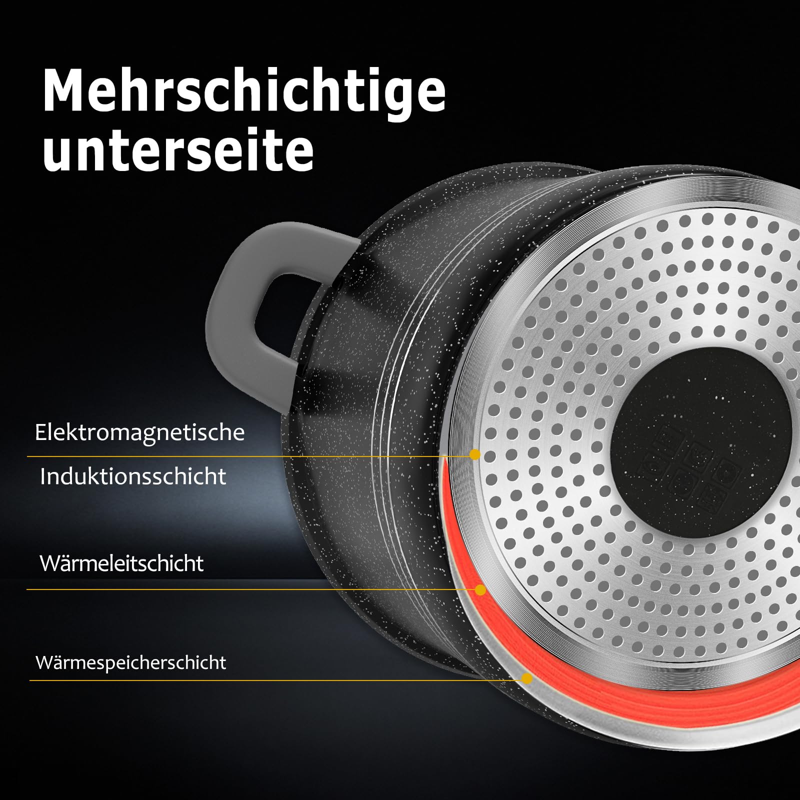 Dieser Topf mit Aluminiumdruckguss-Körper, der ihn sehr robust und langlebig macht.Mehrschichtiger Boden sorgt für eine schnelle und stabile Wärmeverteilung beim Kochen, schnelles Aufheizen, was Zeit und Energie spart.