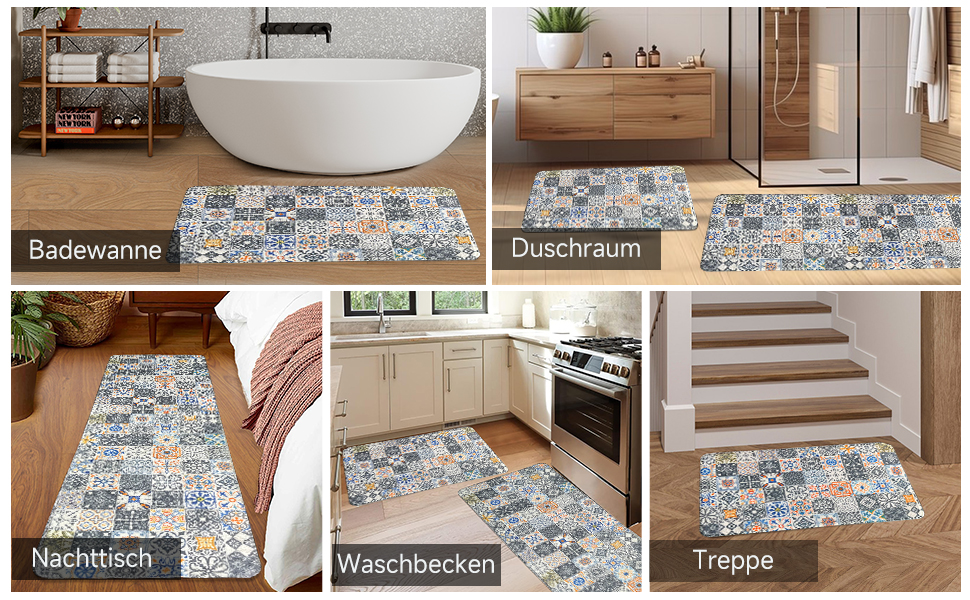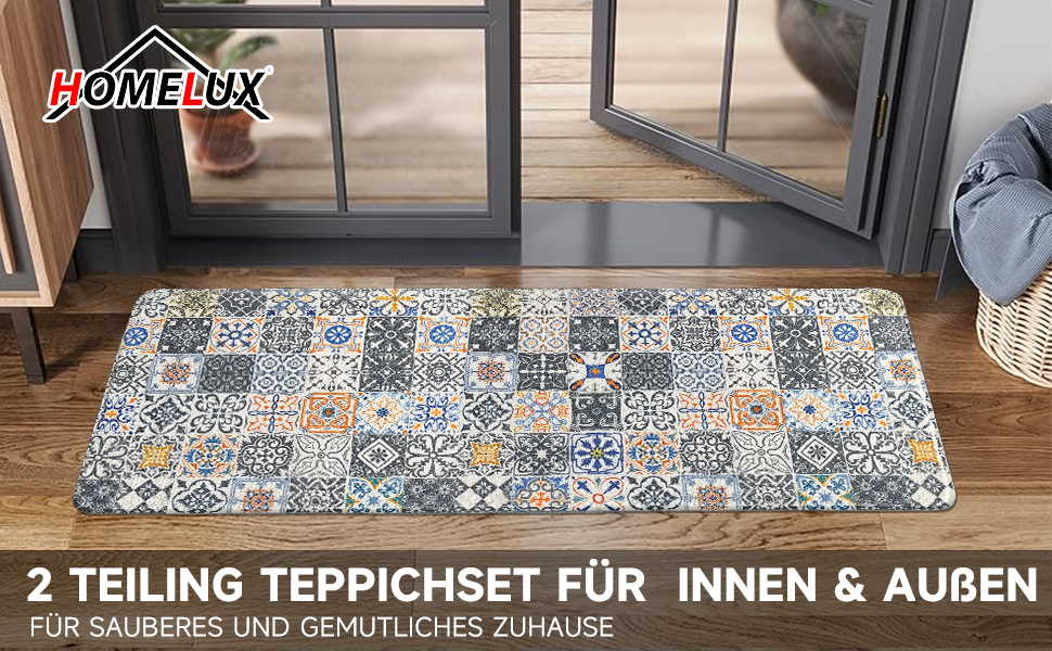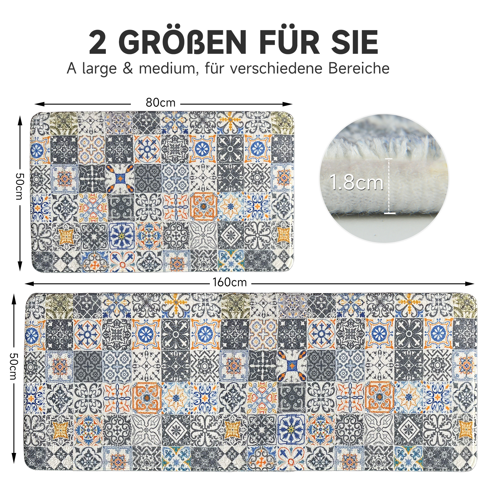 HOMELUX Teppich Wohnzimmer Innen 2er Küchenmatten 50×160 cm+50×80 cm Kurzflor Teppich Läufer Fußmatte Waschbar rutschfest Vintage Boho Badematte Für Outdoor Flur Küche Schlafzimmer Toilette Haustier, HL-2A2PPY