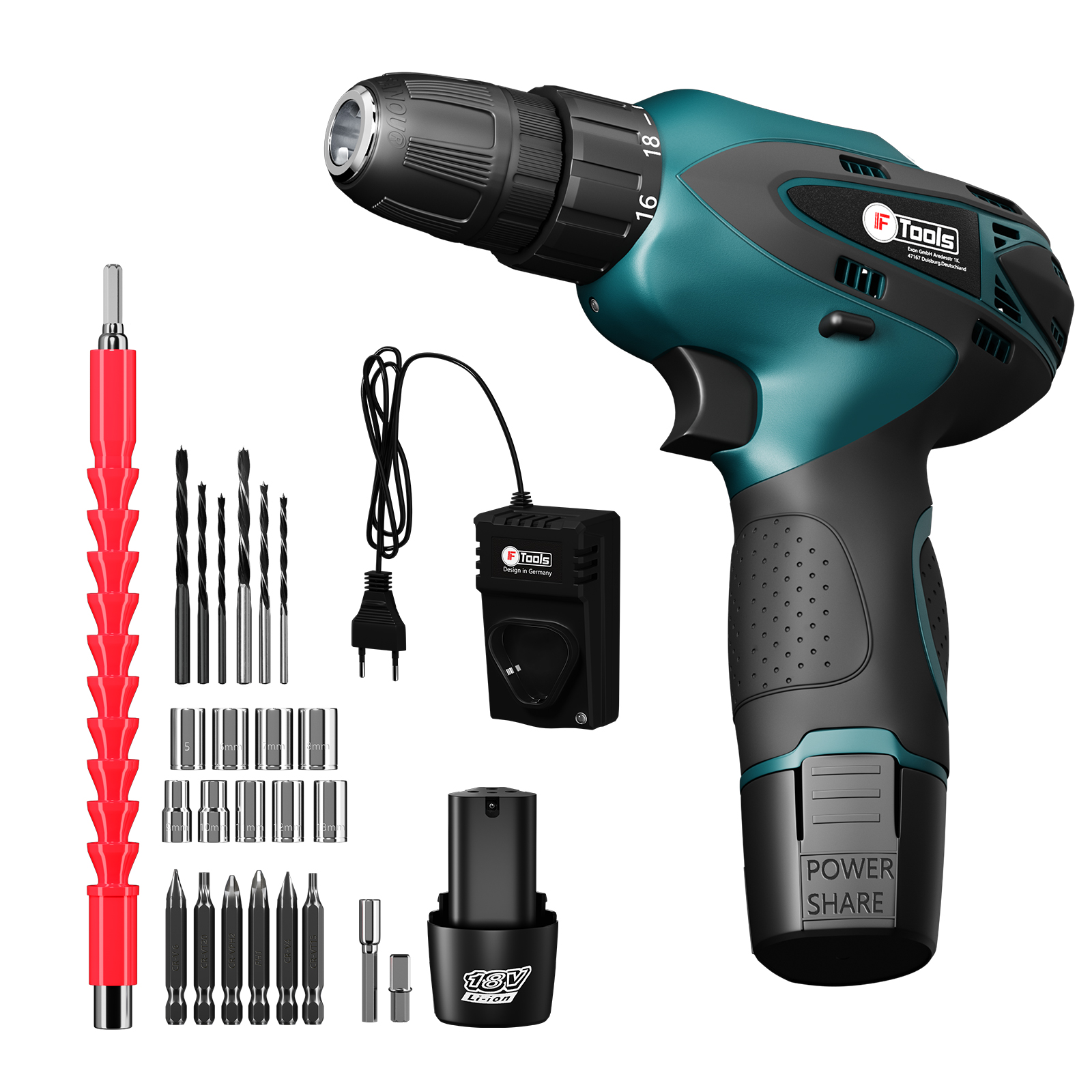 Das 12-V-Bohrerset von IF Tools verfügt über 18 verschiedene Drehmomenteinstellungen, um das Ein- und Ausdrehen der Antriebsschraube präzise zu steuern und gleichzeitig ein versehentliches Lösen zu verhindern 0-1350 U/min) und ein elektrisch einstellbares Drehmomentschraubendrehersystem zum Eintreiben und Entfernen verschiedener Befestigungselemente.