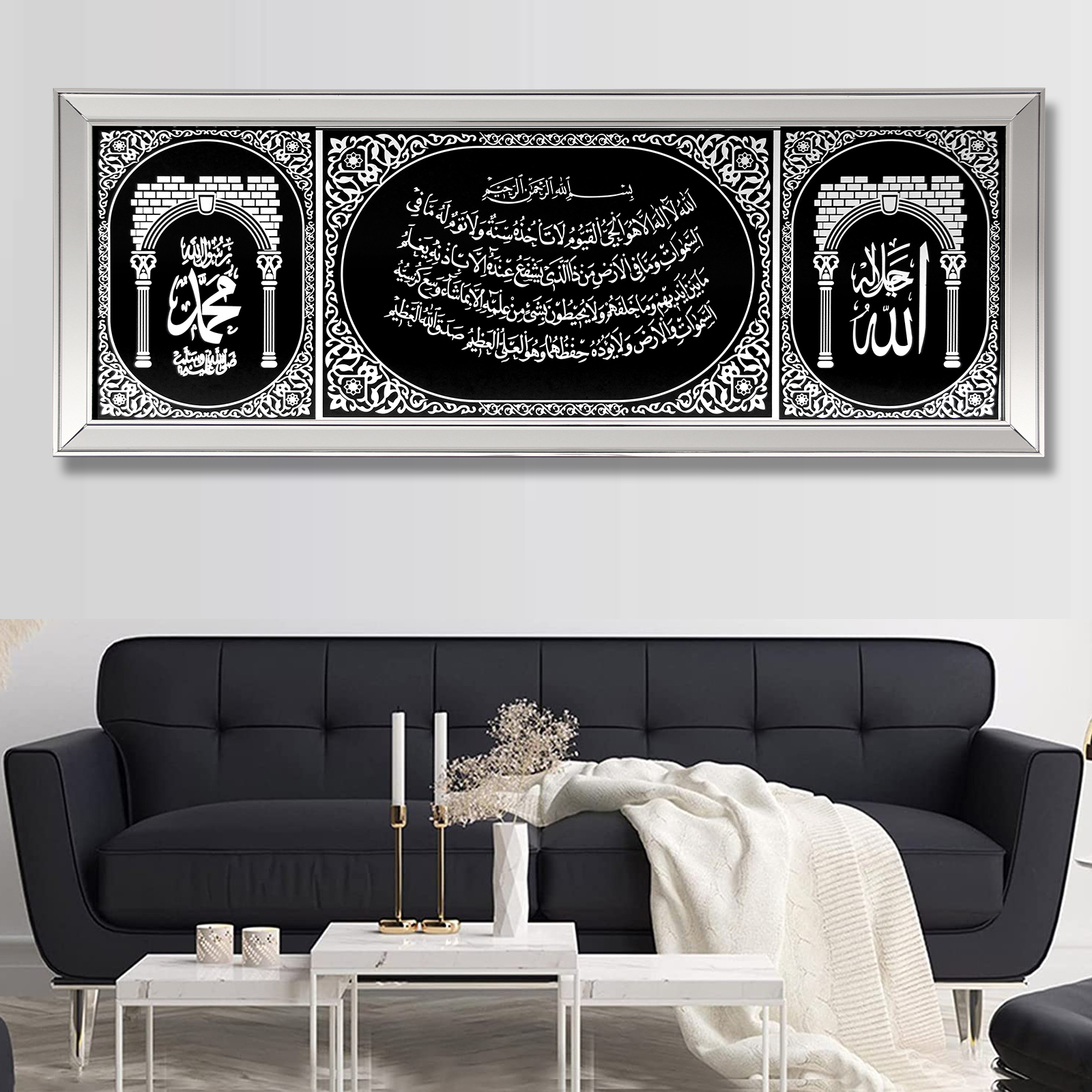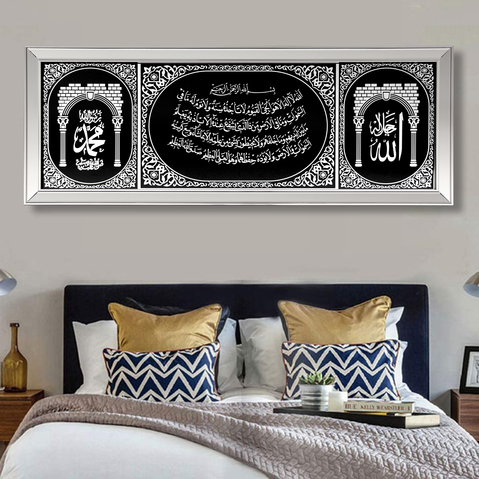 HOMELUX Islamische Bilder mit Rahmen Arabische Kalligraphie Wandbilder, Ramadan Islam Wand Deko, Koran Allah Islamische Zitate Wandbild Poster, Arabische Muslimische Wandkunst Druck Bilder, 49*129CM,H-PA0071