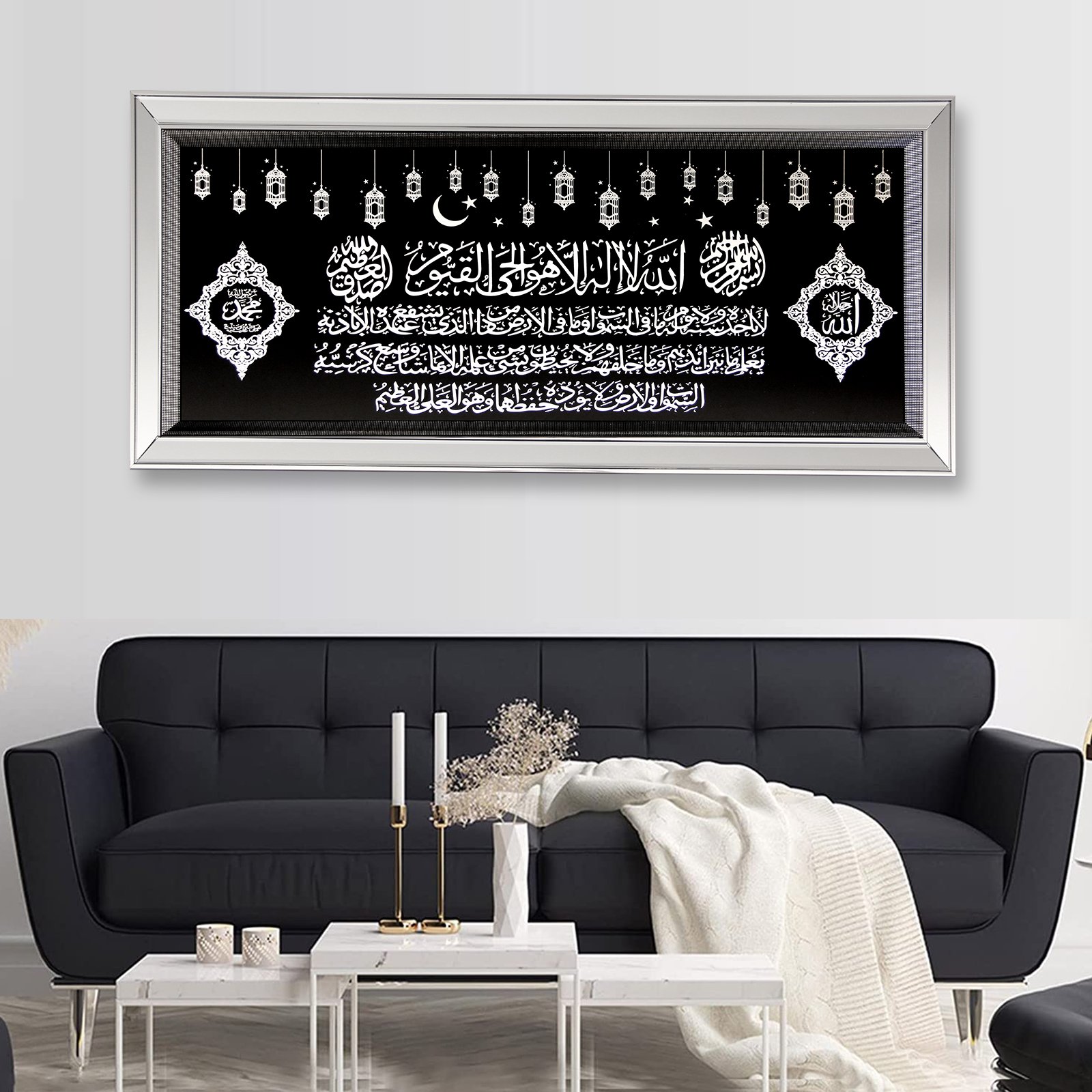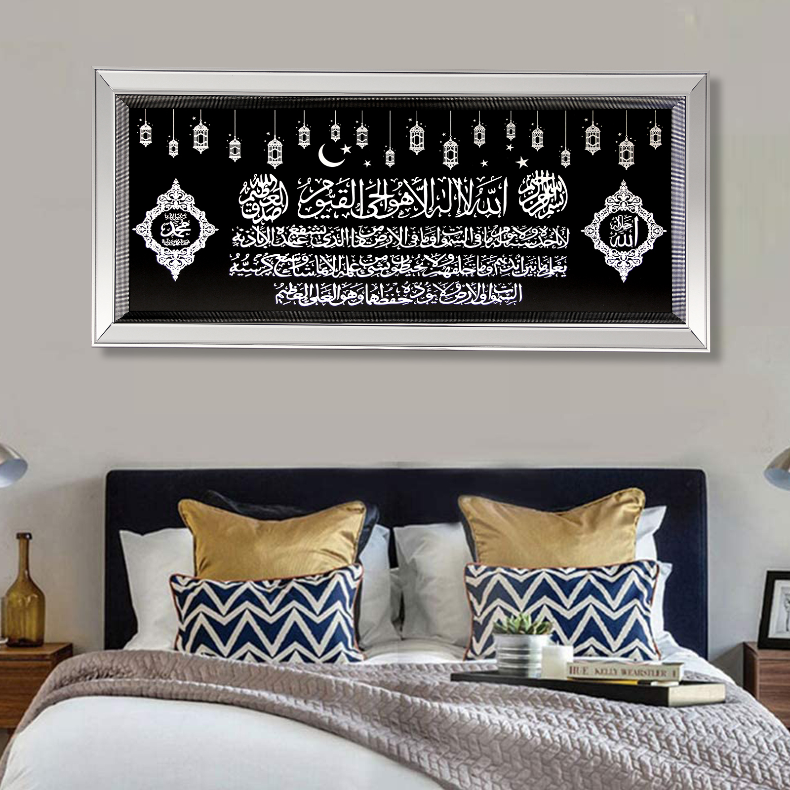 HOMELUX Islamische Bilder mit Rahmen Arabische Kalligraphie Wandbilder, Ramadan Islam Wand Deko, Koran Allah Islamische Zitate Wandbild Poster, Arabische Muslimische Wandkunst Druck Bilder, 49*110CM,H-PA0081