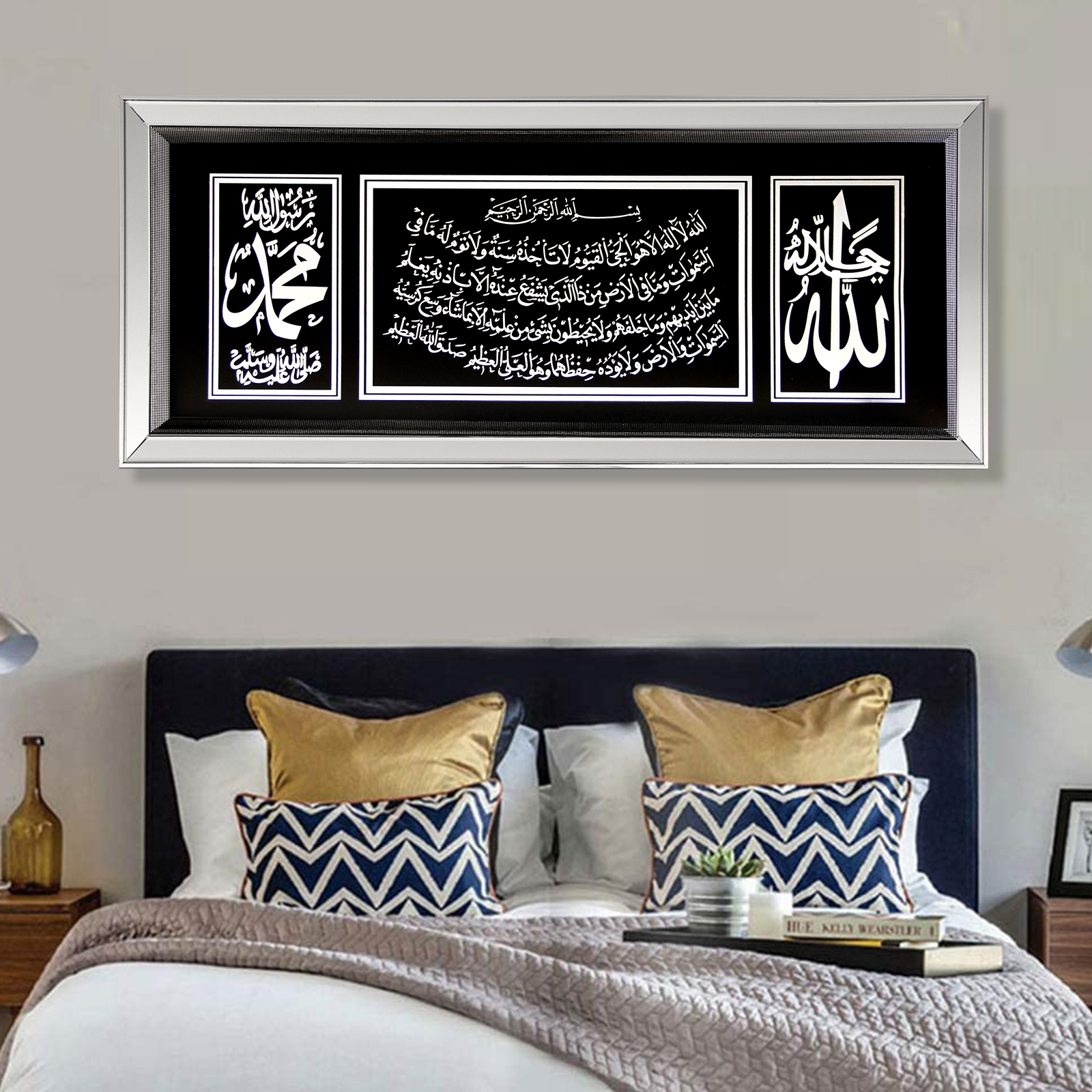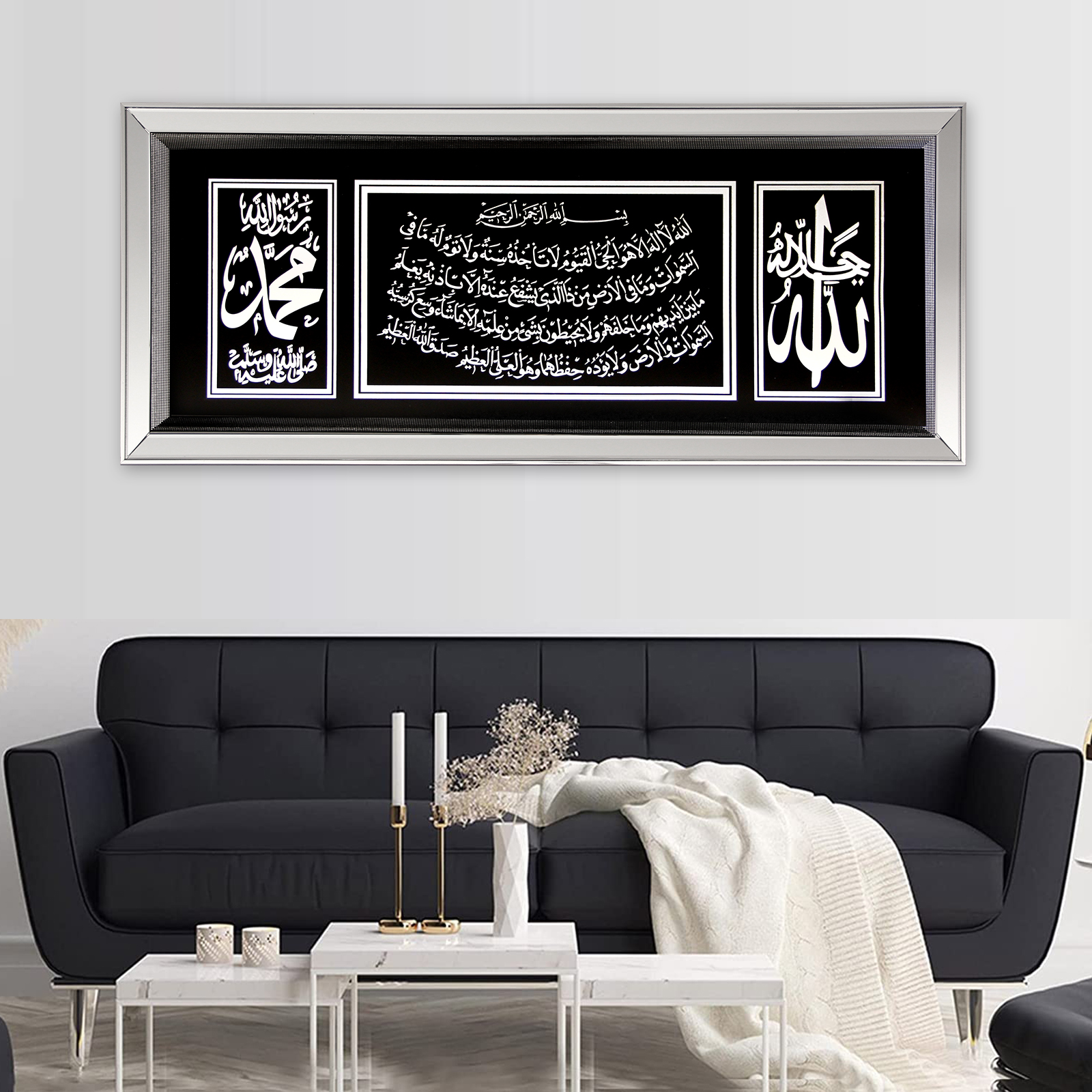HOMELUX Islamische Bilder mit Rahmen Arabische Kalligraphie Wandbilder, Ramadan Islam Wand Deko, Koran Allah Islamische Zitate Wandbild Poster, Arabische Muslimische Wandkunst Druck Bilder, 49*110CM,H-PA0083