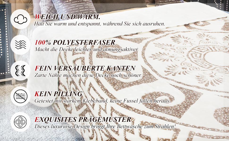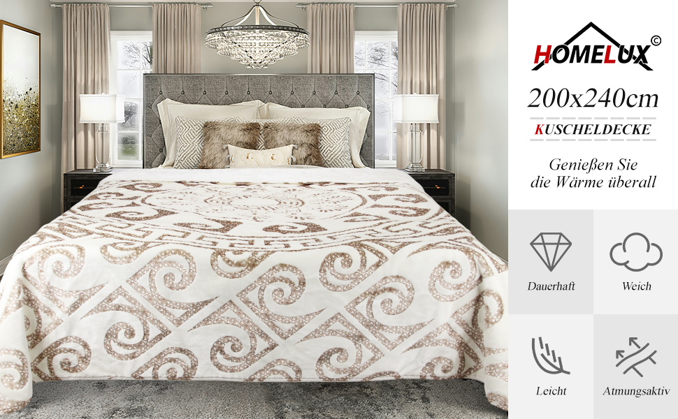 200x240cm Decke ist aus hochwertigem Material, leicht und weich, atmungsaktiv und hautfreundlich. Sie bietet Ihnen das ganze Jahr über maximalen Komfor.
