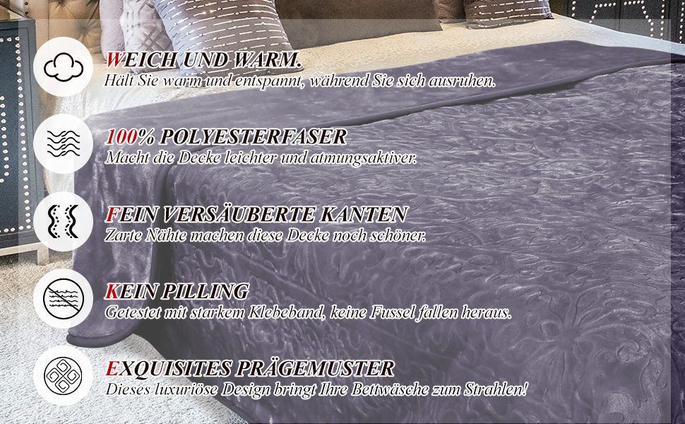 100%Polyester Decke 1Ply Raschel schöne Qualität solide geprägte Decke , Größe:200X240cm ,HL-B3SEGR