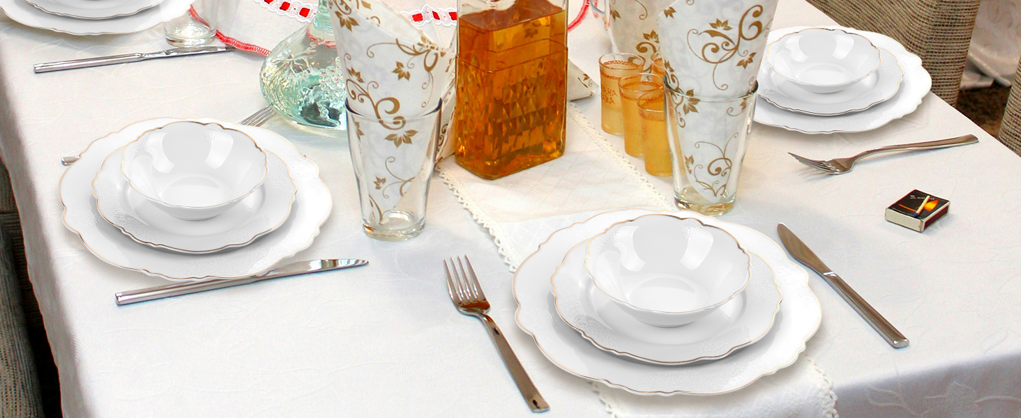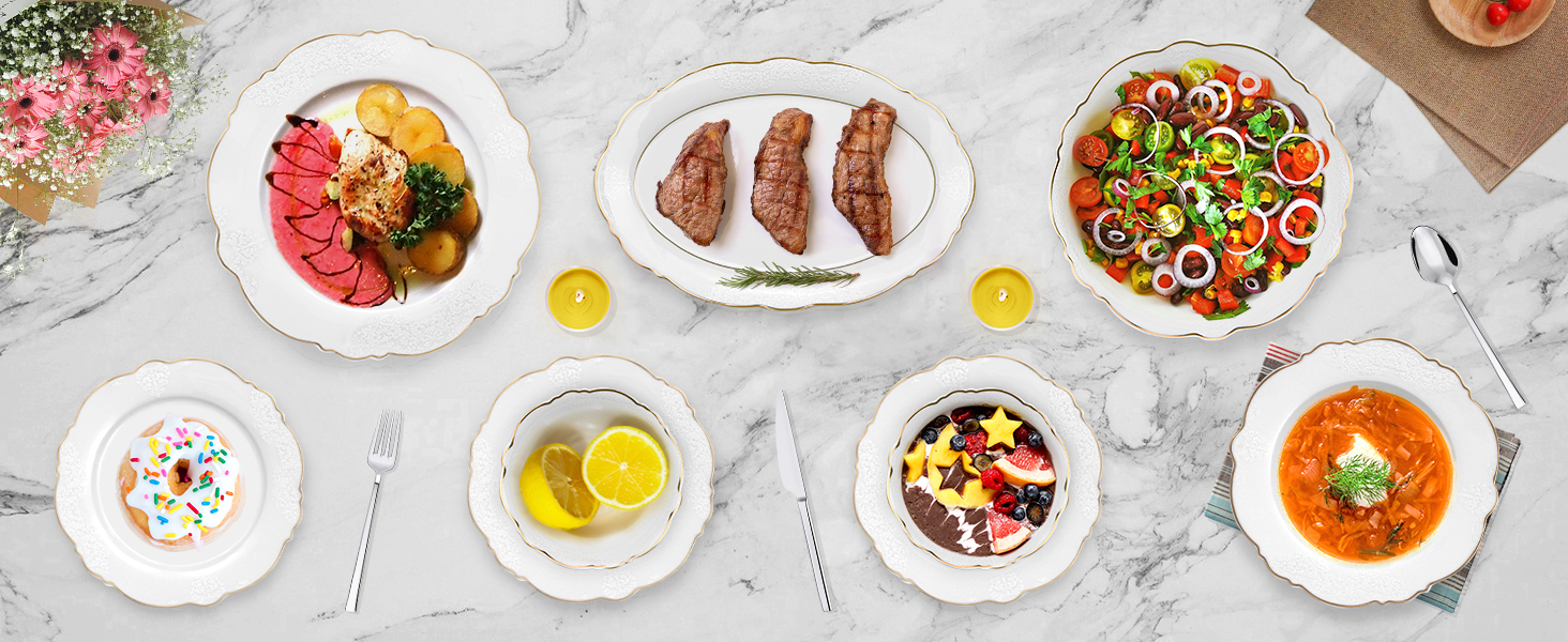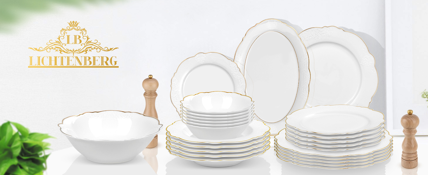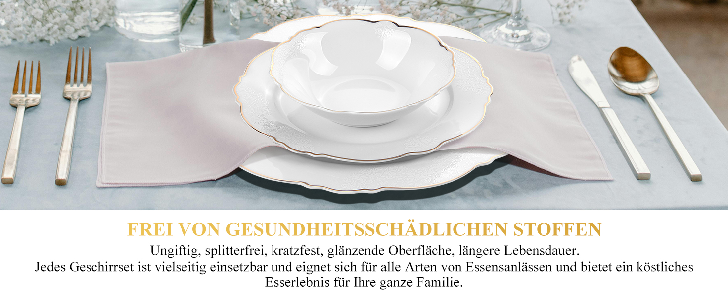 Lassen Sie sich von den großzügigen 6x Servierteller , 6x Suppenteller, 6x Kleine Schüsseln , 6x Dessertteller, 1x Großer ovaler Servierteller , 1x Salatschüssel ,zu einem einzigartigen Essvergnügen verführen. Unser Tafelservice Siena ist für 6 Personen Komplettes Set ausgelegt und eignet sich somit perfekt für Gesellschaften