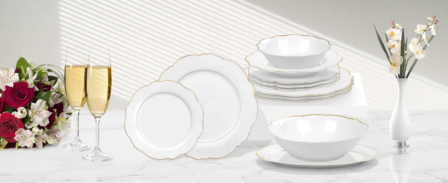 Ob beim festlichen Geburtstagsdinner, den alltäglichen Abendessen oder der Hochzeitsfeier, das Tafelservice Siena macht mit seinem zeitlosen Design überall guten Eindruck.