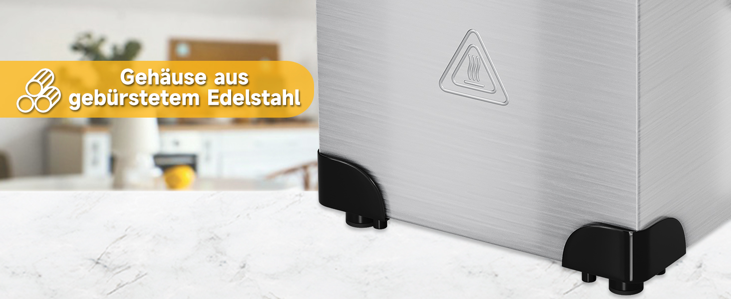 Elegantes Edelstahlgehäuse, rutschfeste Füße, zwei seitliche Griffe zum einfachen Bewegen, das 90 cm lange Netzkabel ist platzsparend in der Fritteuse untergebracht. Verschiedene Zulassungen: GS/CE(EMC,LVD), ROHS, DGCCRF, REACH