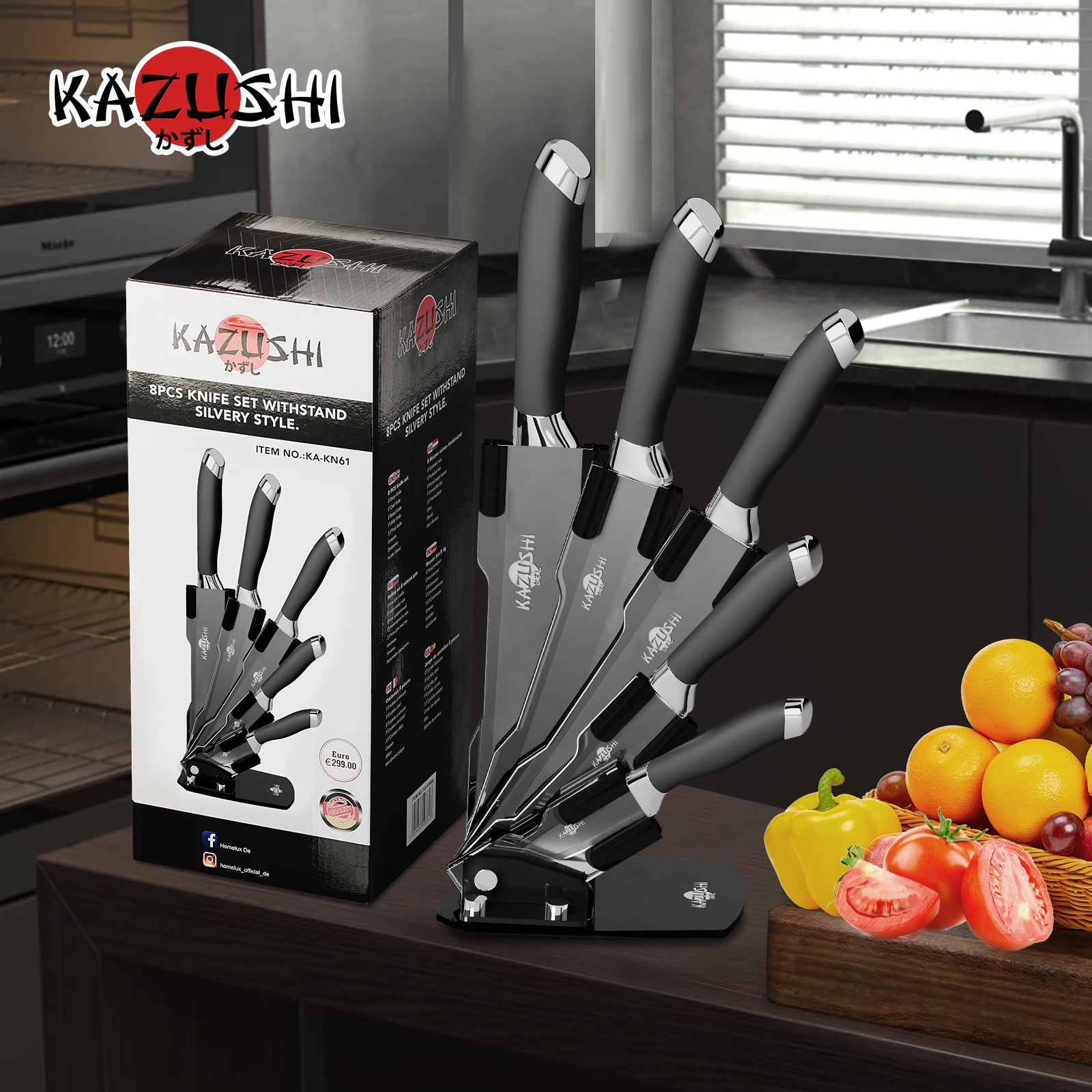 Dieses originelle 6-teilige Küchenmesser-Set mit block ist eine elegante Küchendekoration und eine gute Wahl als Geschenk. Bitte zögern Sie nicht, uns zu kontaktieren, wenn Sie Fragen zur Verwendung oder zu Qualitätsproblemen haben.