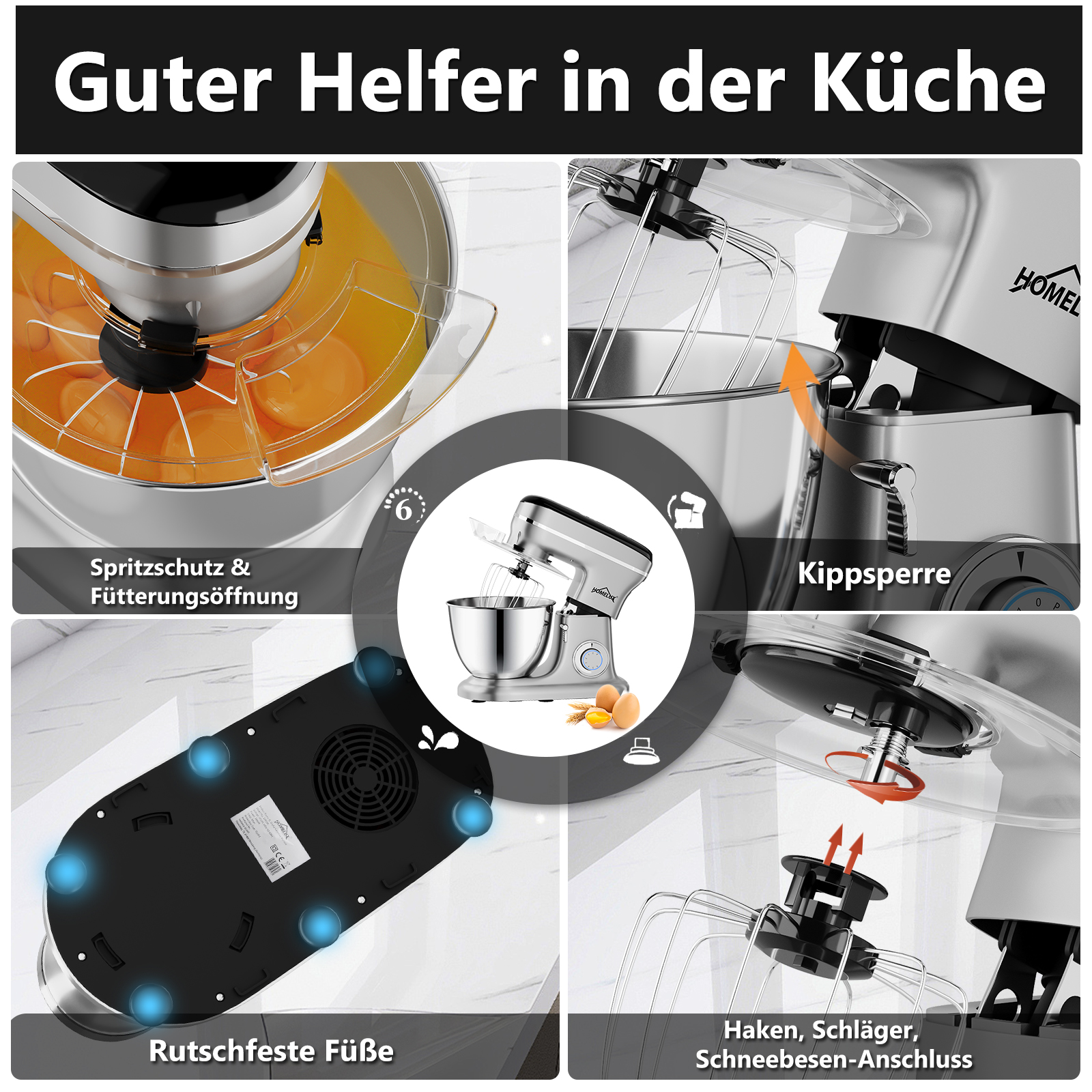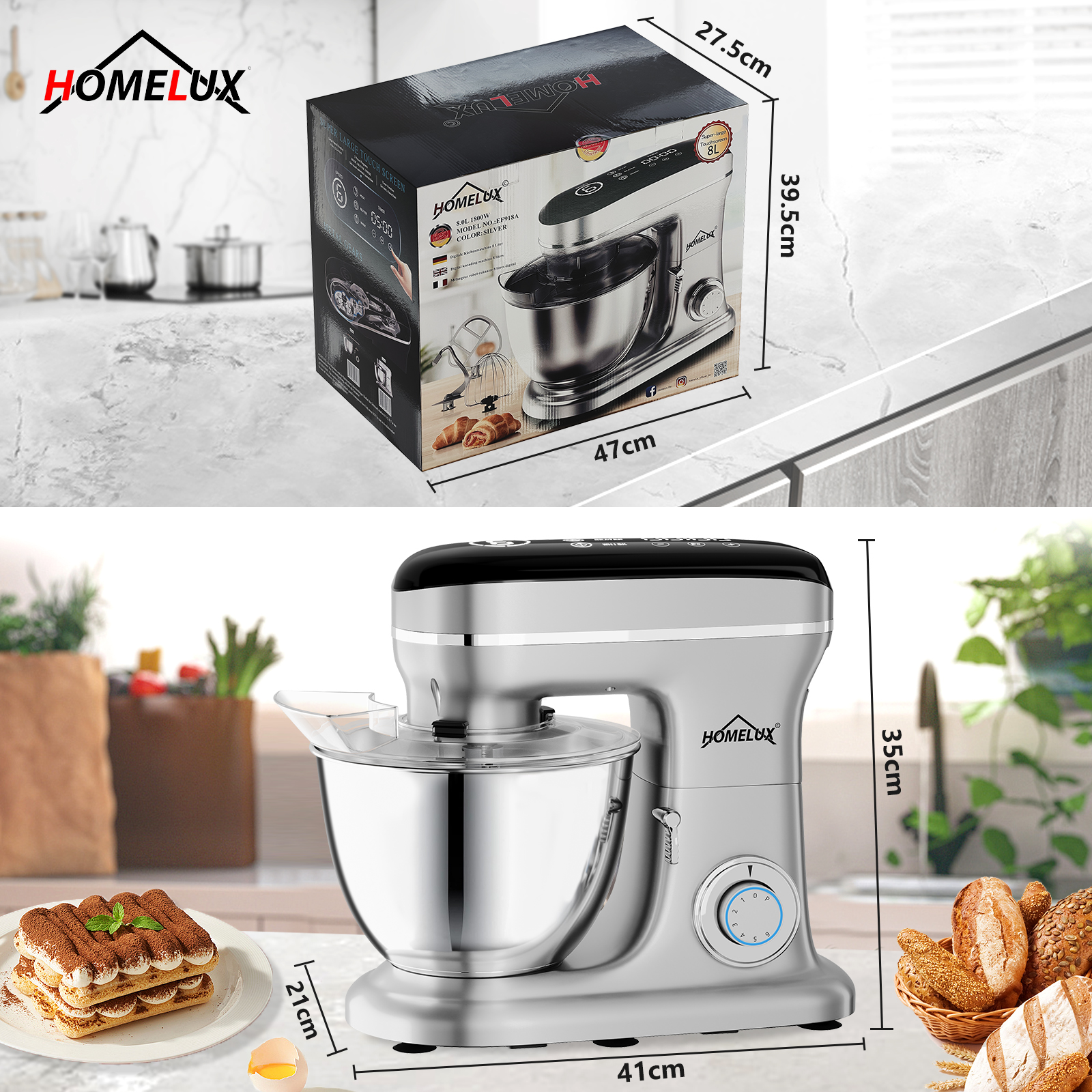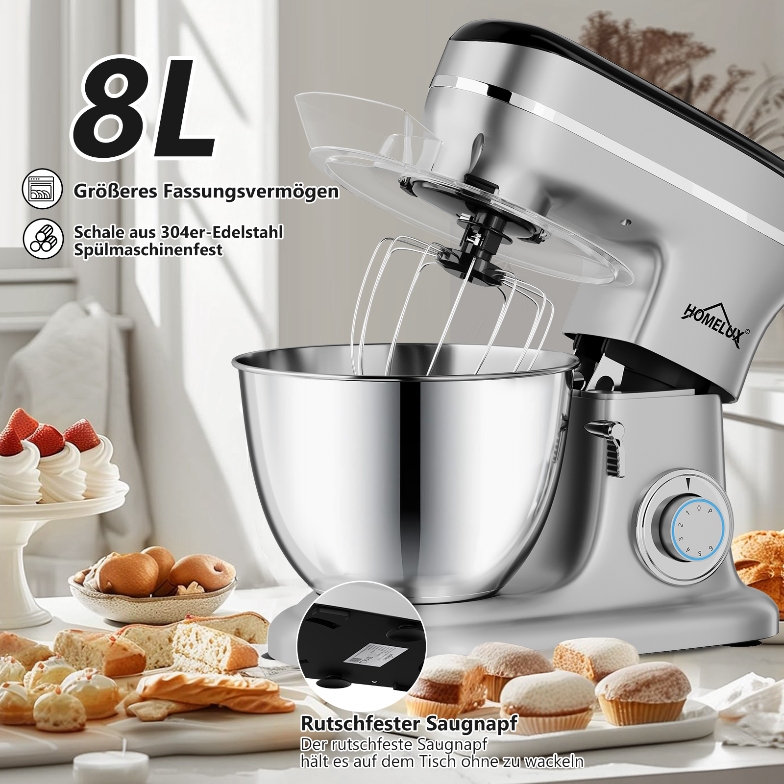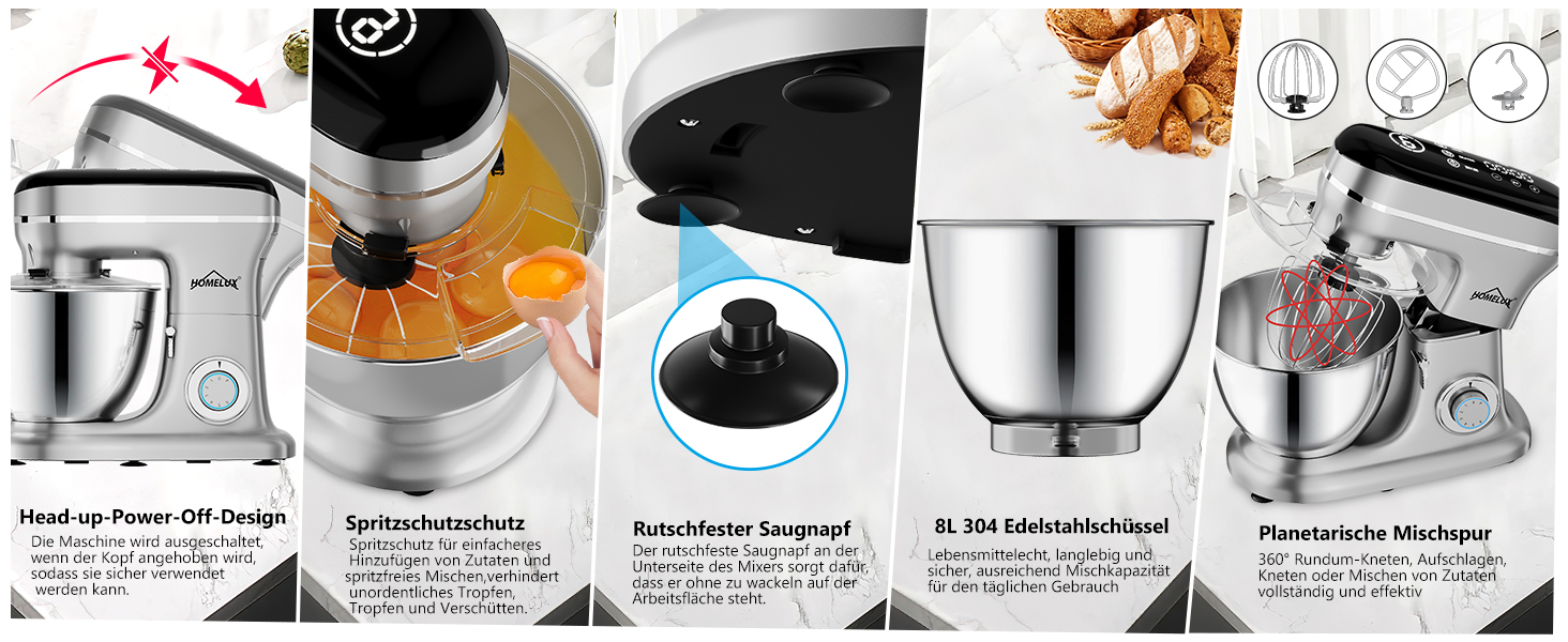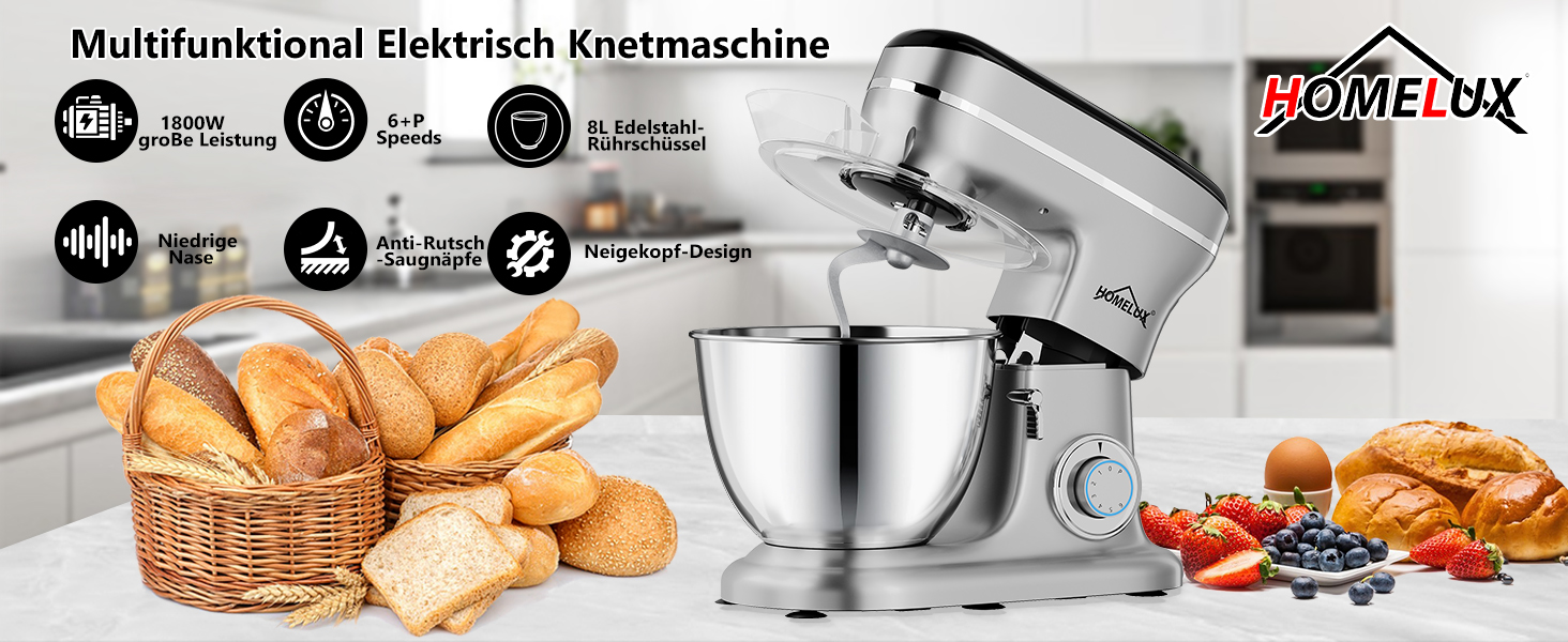 Homelux Küchenmaschine, Standmixer, SILBER, EF918A