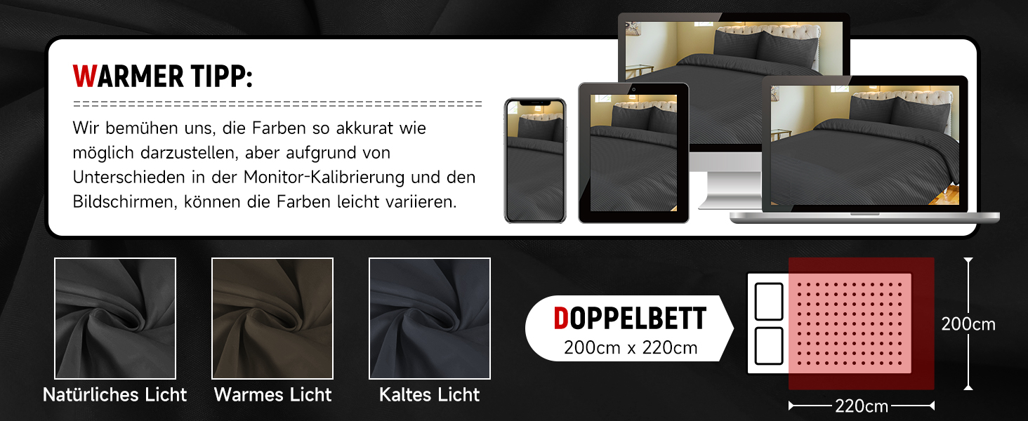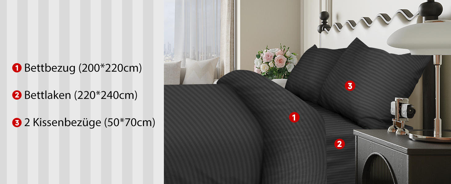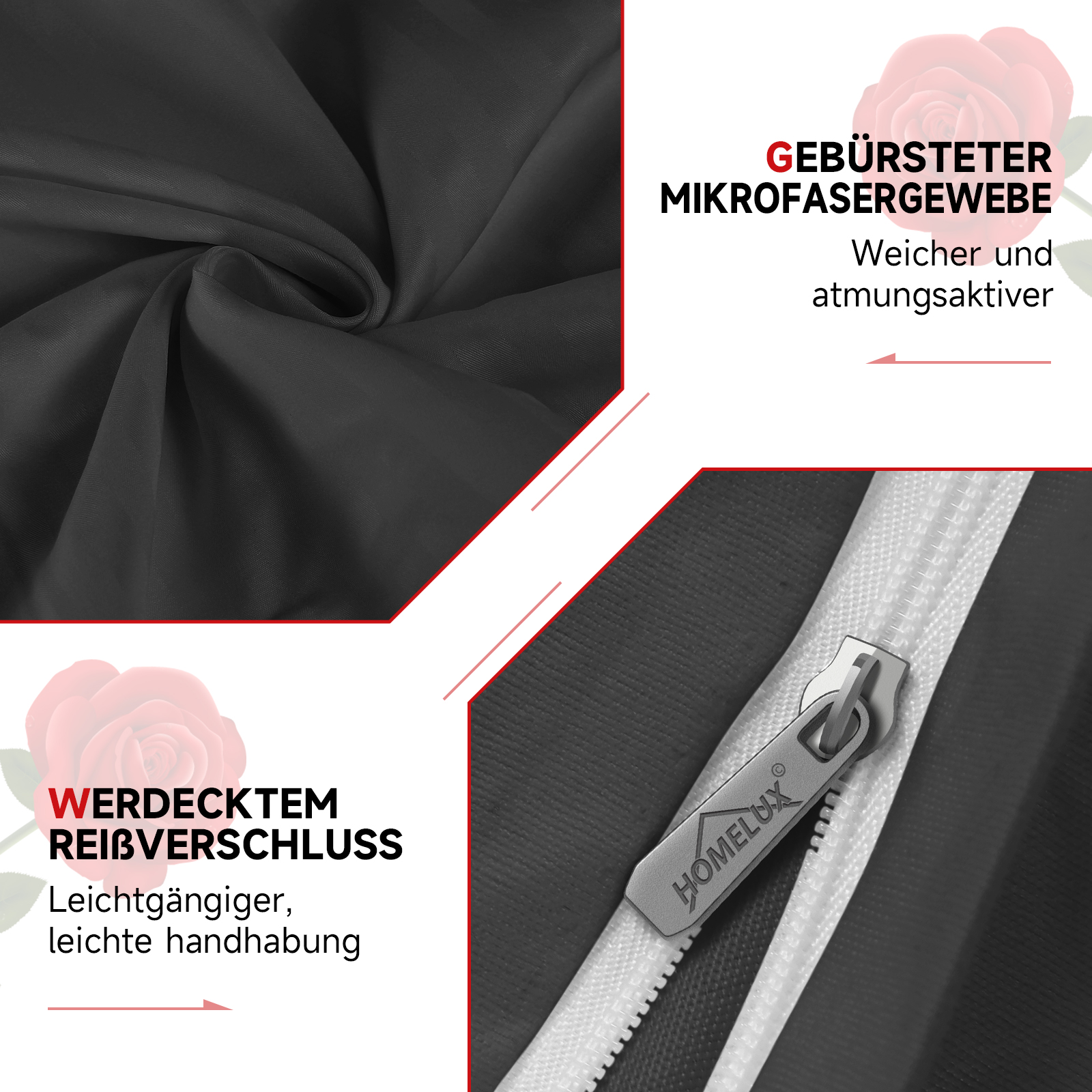 1 Bettwäsche 220x240cm+1 Bettbezug 200x220cm+2 Kissenbezüge 50x70cm) mit glatter Oberfläche und feiner Haptik wird aus Mikrofaser gefertigt und fühlt sich dadurch sehr angenehm auf der Haut an, da sie besonders weich und hautfreundlich ist, womit Sie eine erholsame Nachtruhe genießen können.
