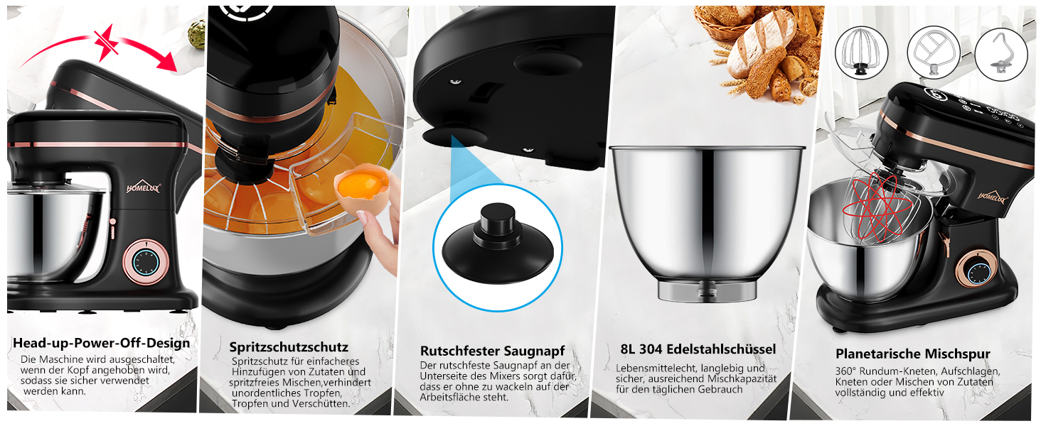 Homelux Küchenmaschine, Standmixer, BLACK, EF918A