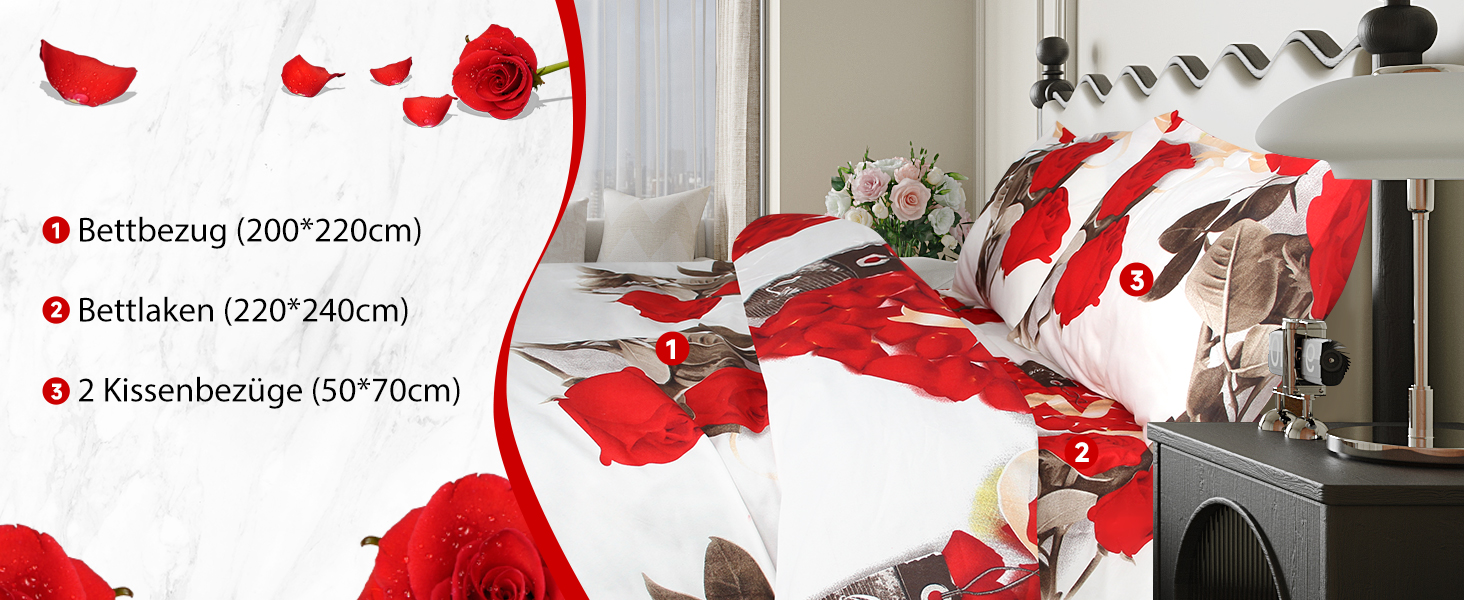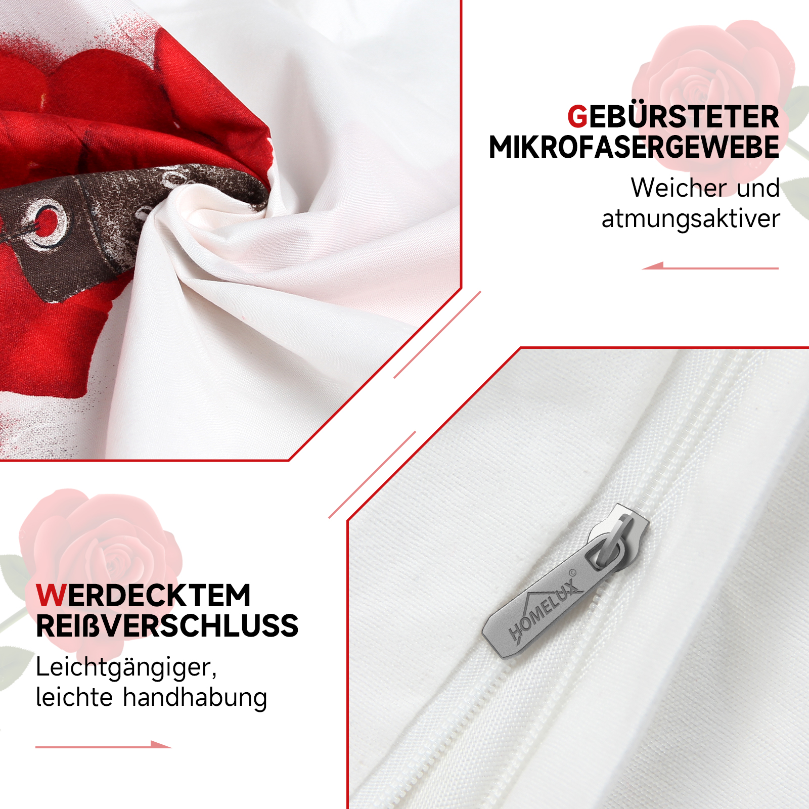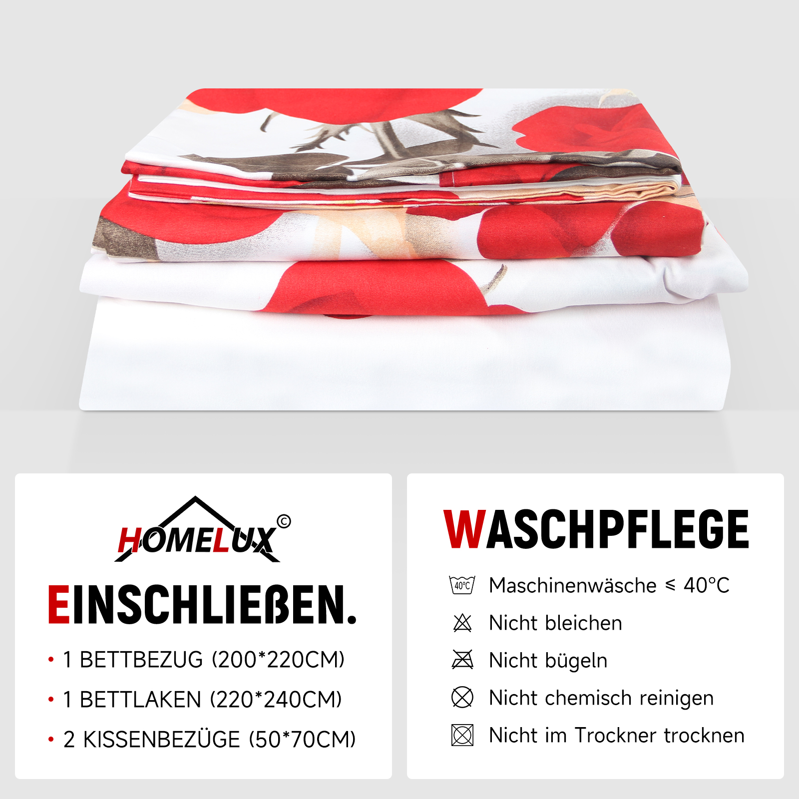 HOMELUX Bettwäsche 220x240 4teilig - Rose Flower2 200 x 220 1er Set mit 50x70 2er Kissenbezüge, Bettwäsche-Sets 220x240cm aus Mikrofaser
