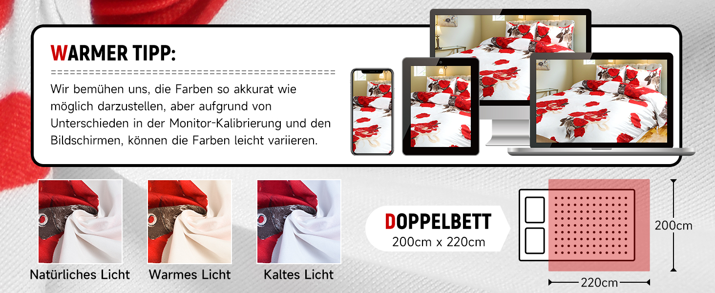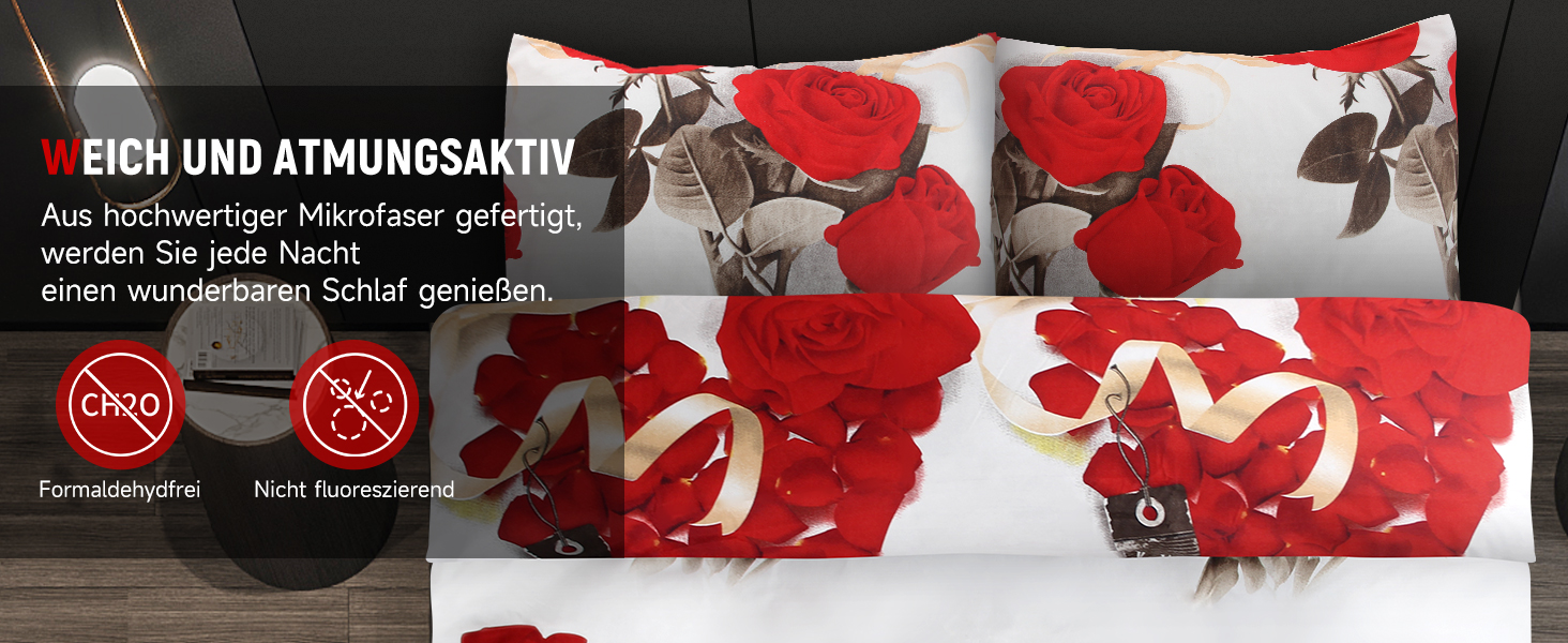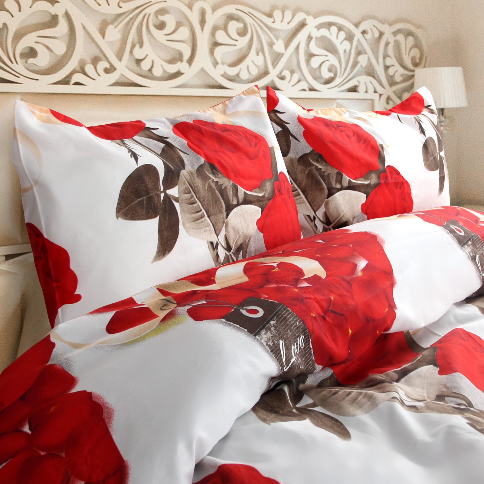HOMELUX Bettwäsche 220x240 4teilig - Rose Flower2 200 x 220 1er Set mit 50x70 2er Kissenbezüge, Bettwäsche-Sets 220x240cm aus Mikrofaser